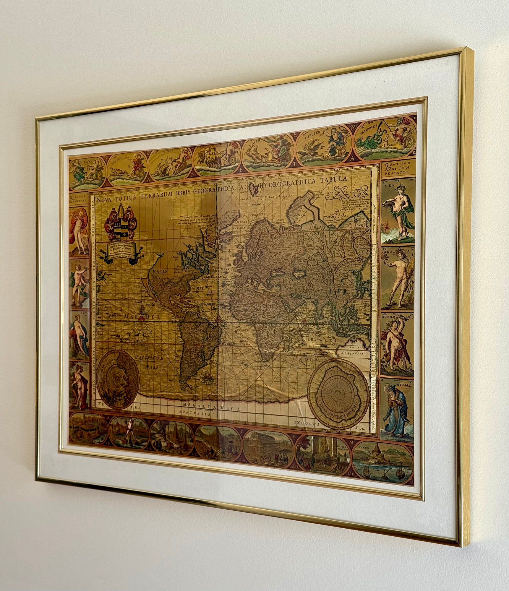 Framed Gold-Foiled World Map