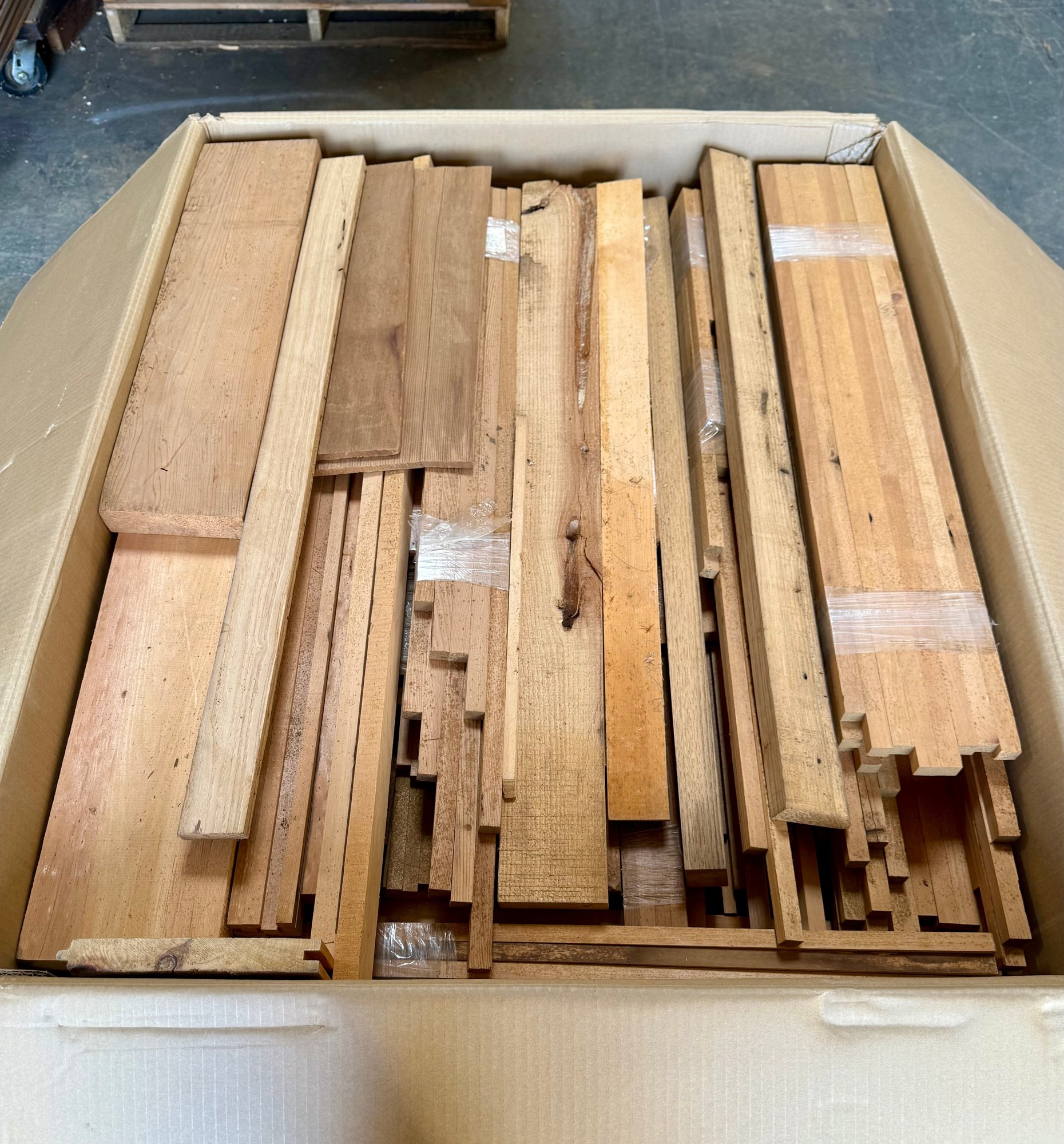Large Box of 250-300 Year Old Resawn Chestnut & White Pine Kit Wood
