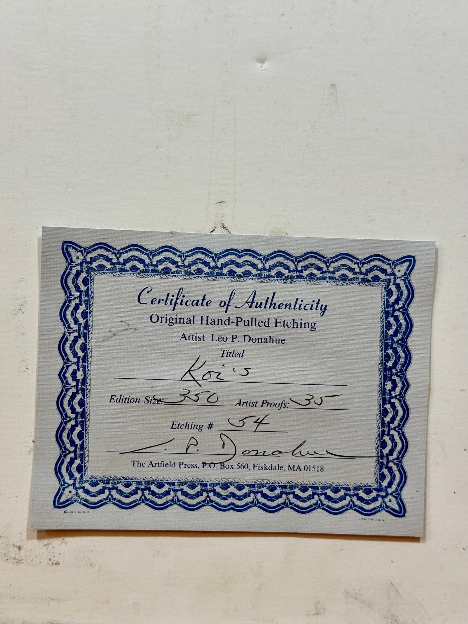 Leo P. Donahue Pencil Signed Artist Proof Etching
