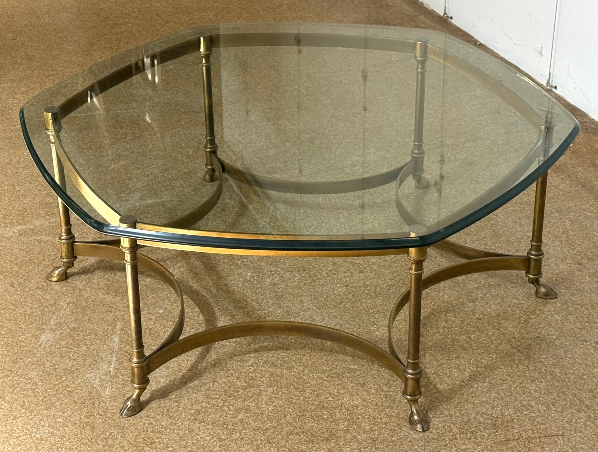 Mid-Century Glass Top Brass Coffee Table