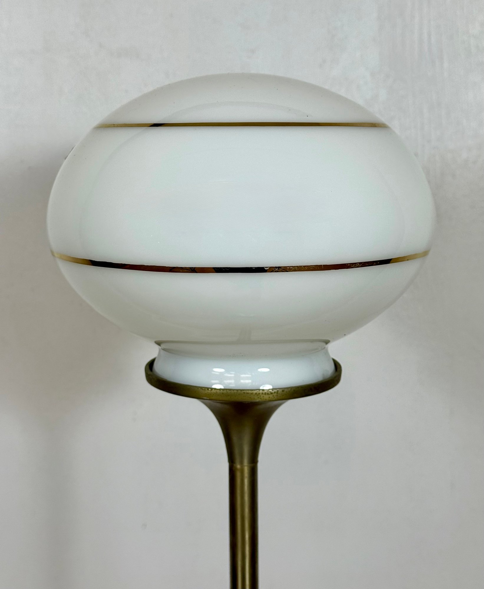 Globe shade sits a bit uneven and has chip to rim, please see photos