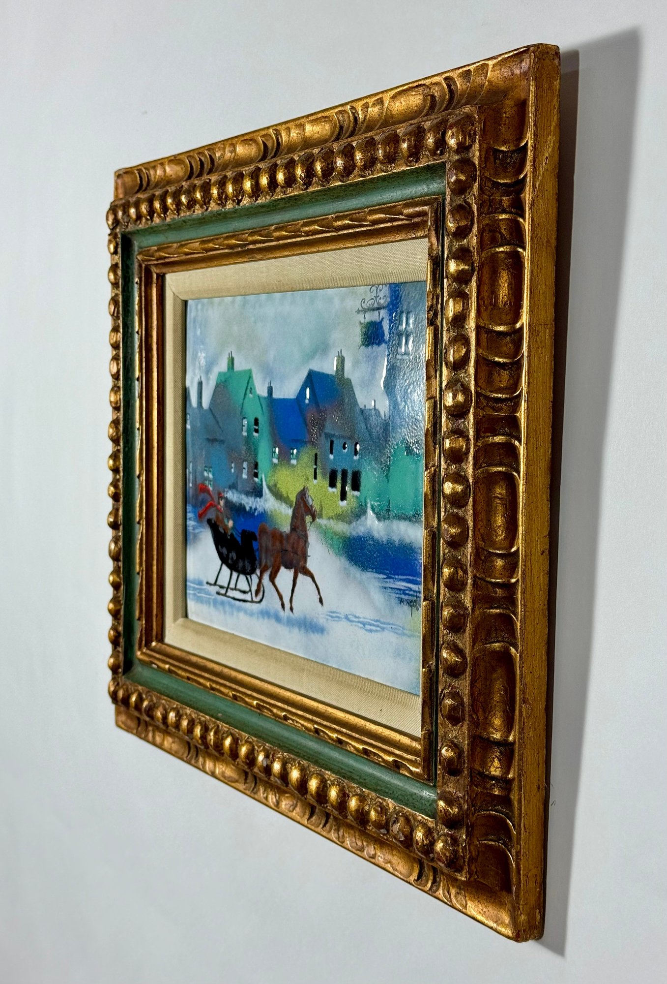 Original Enamel On Copper Framed Artwork - Winter Scene