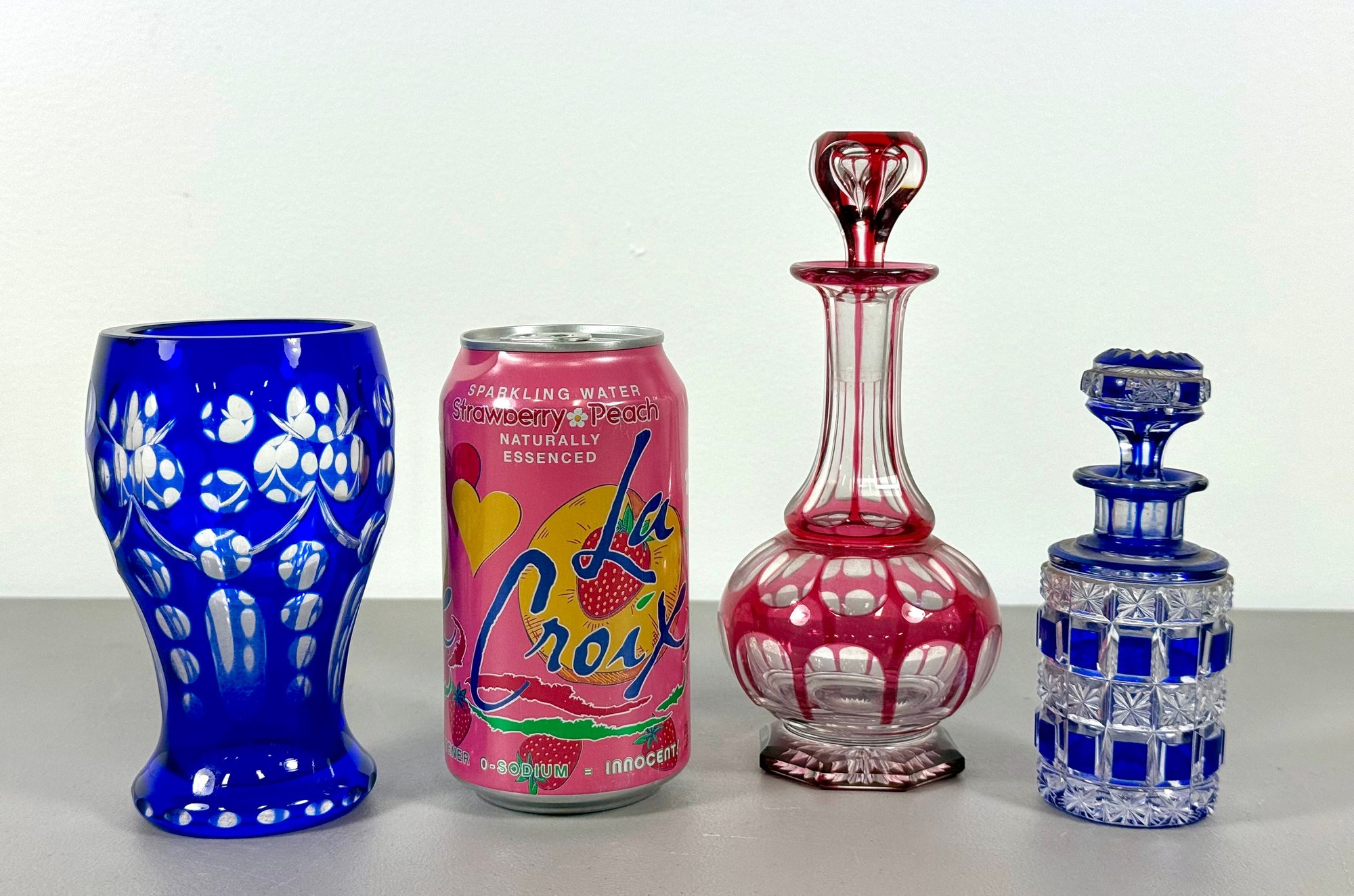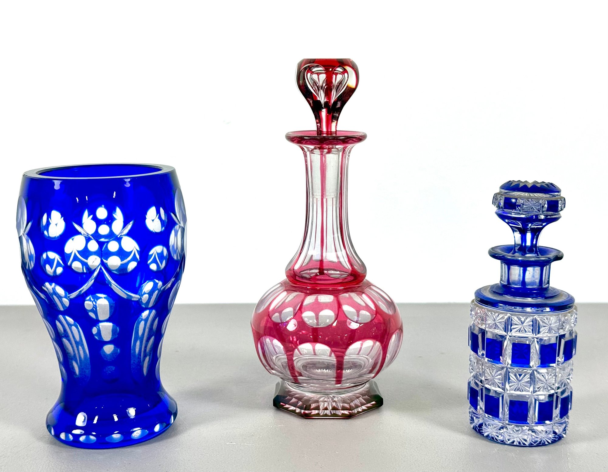 Grouping of 19th C. Cut-To-Clear Perfume Bottle, Decanter & Vase