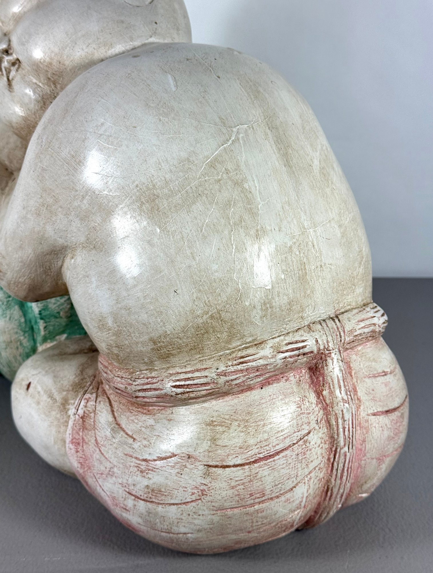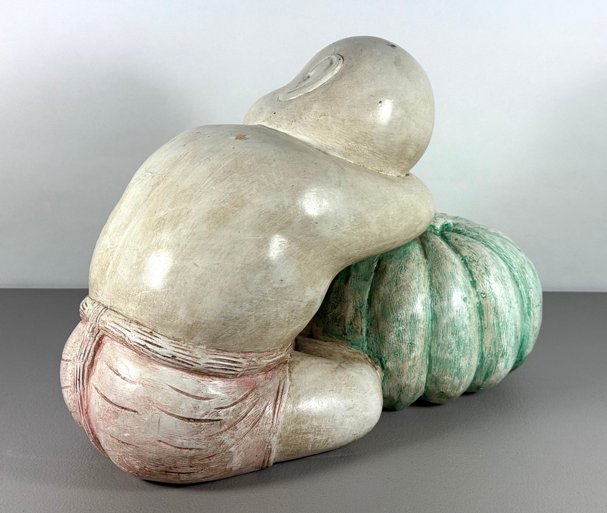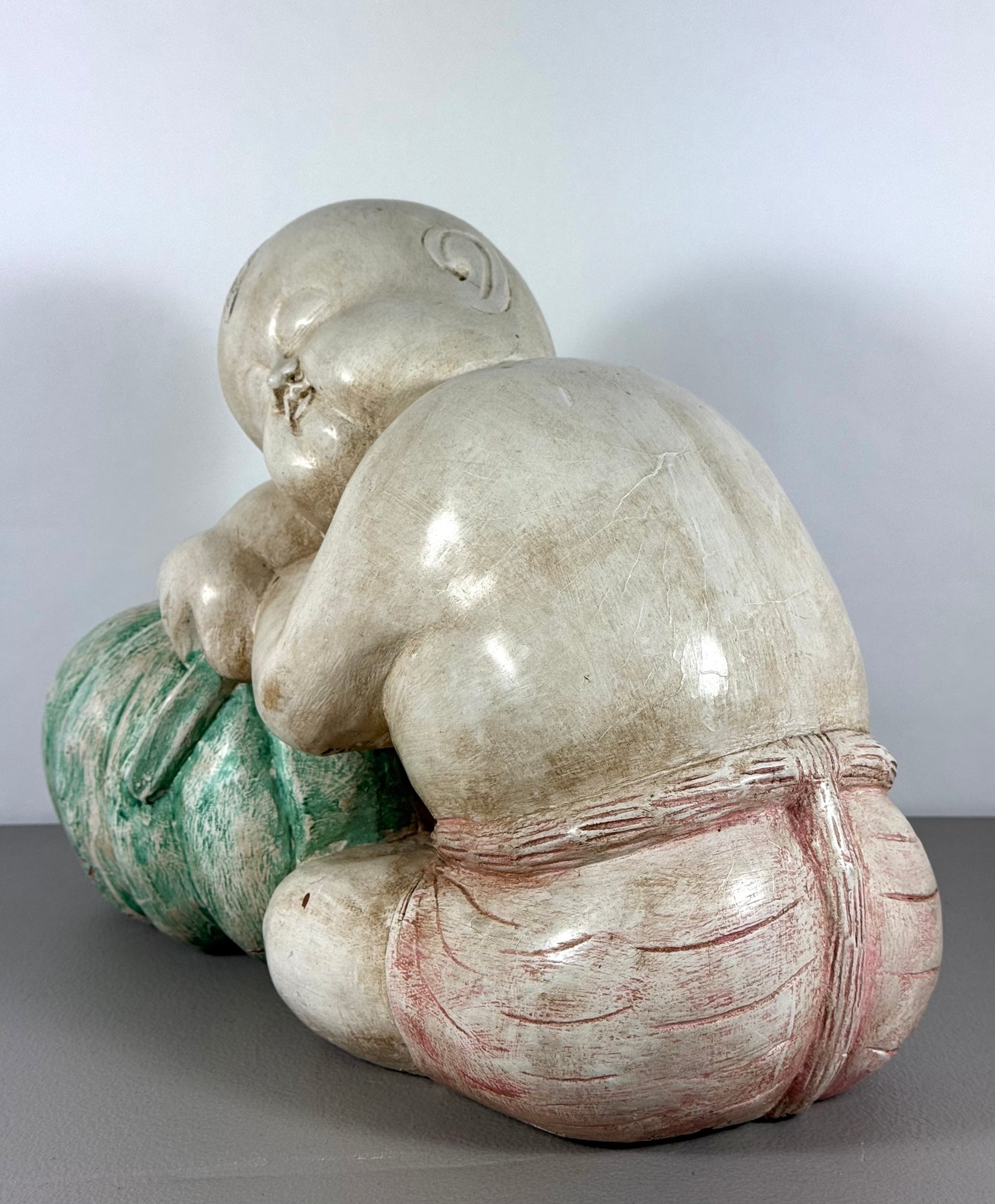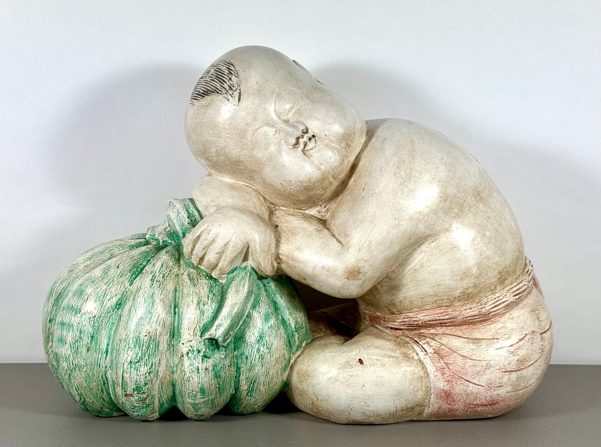 Solid Carved Wood & Painted Chinese Sculpture