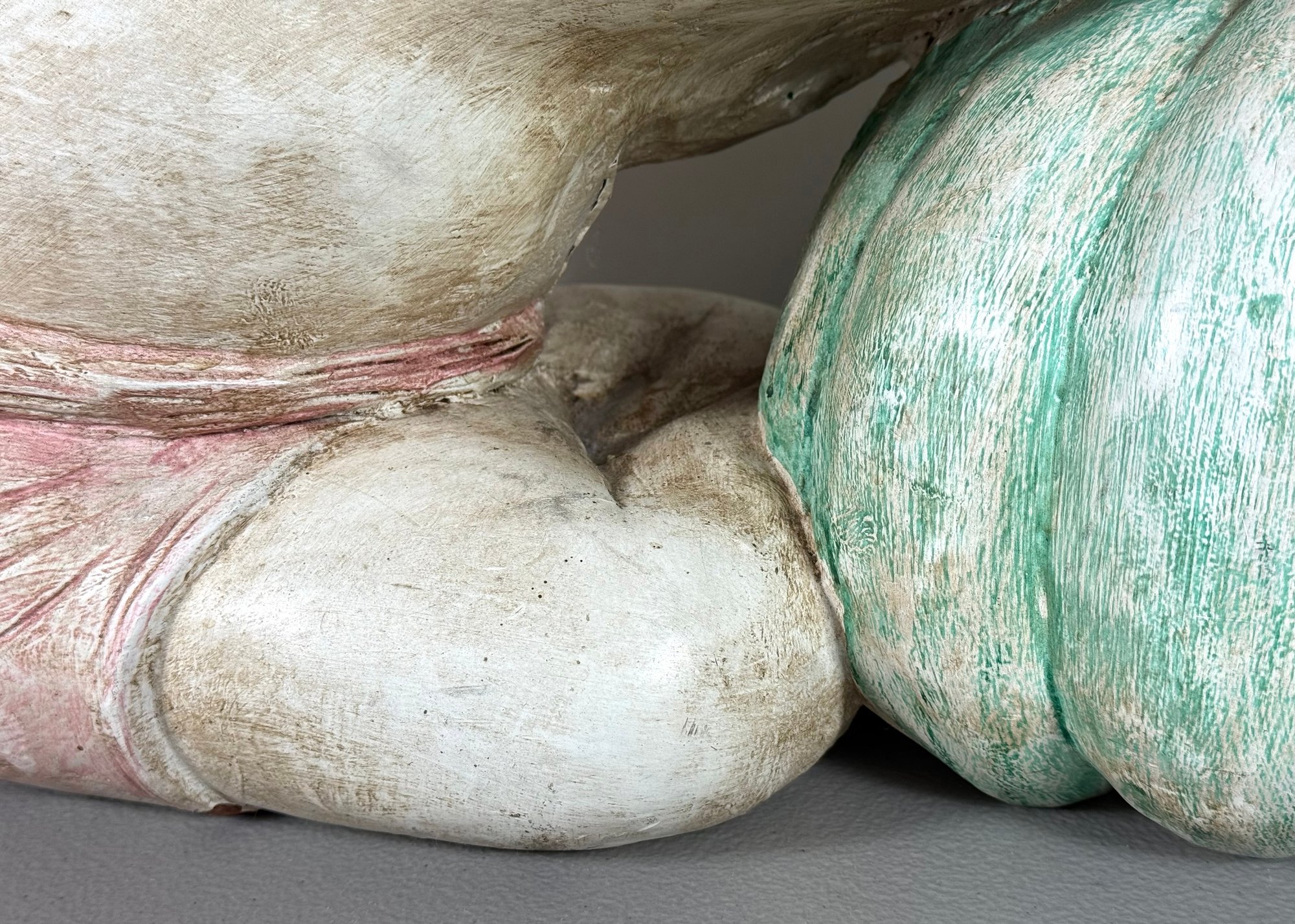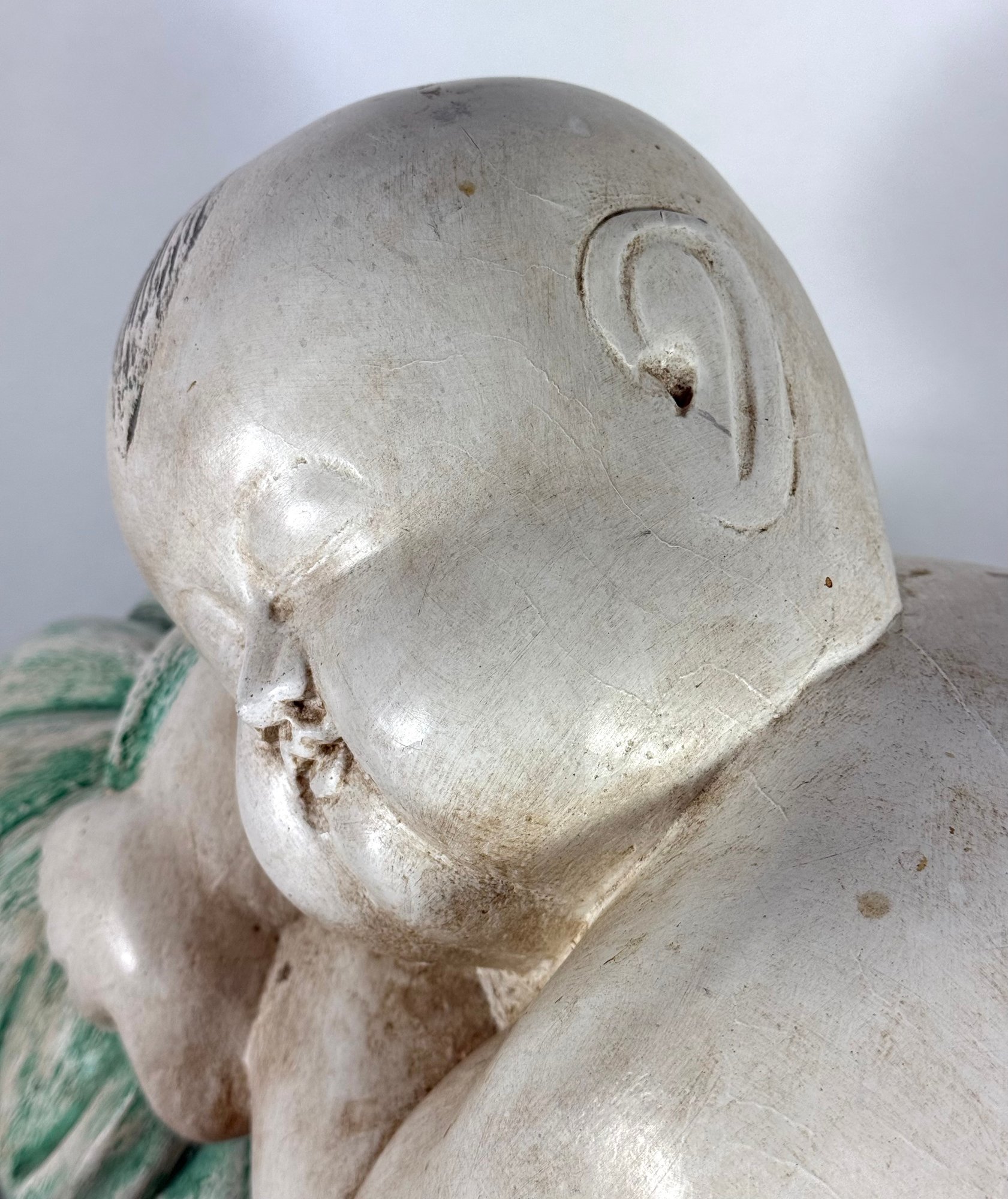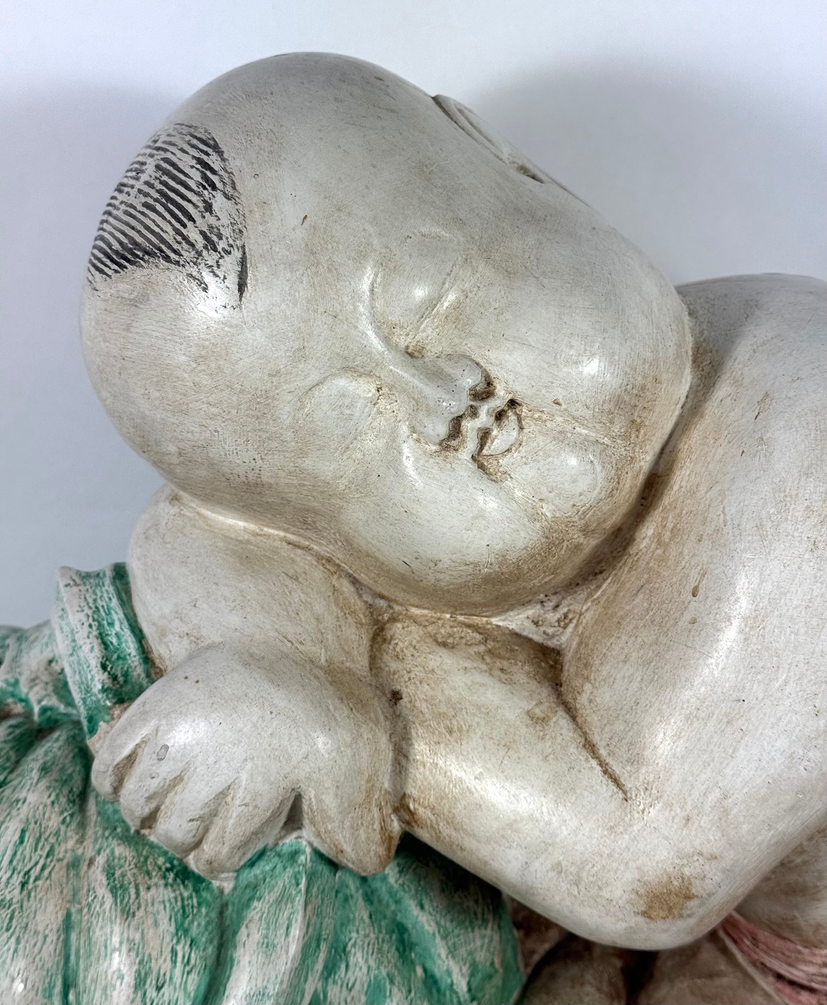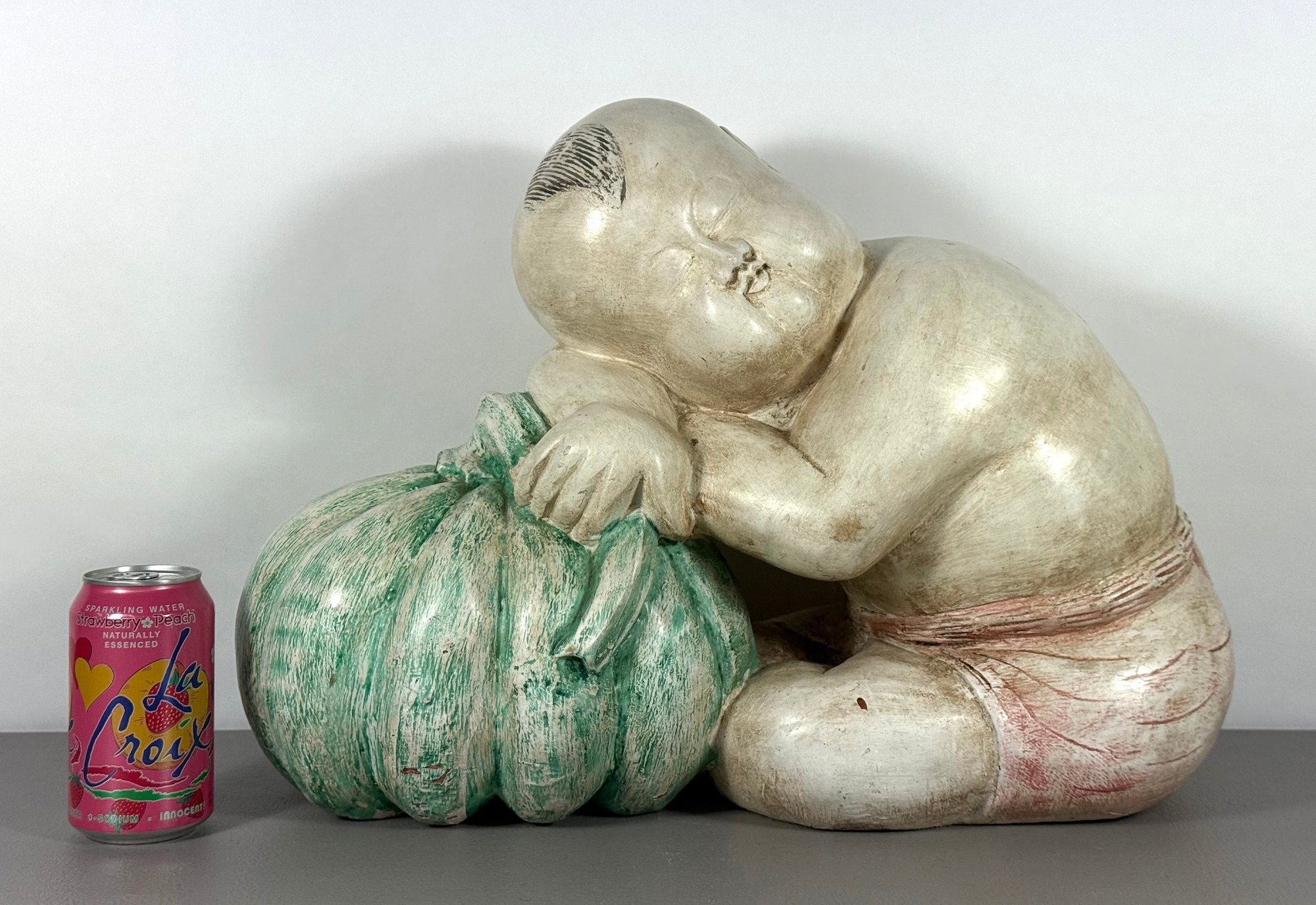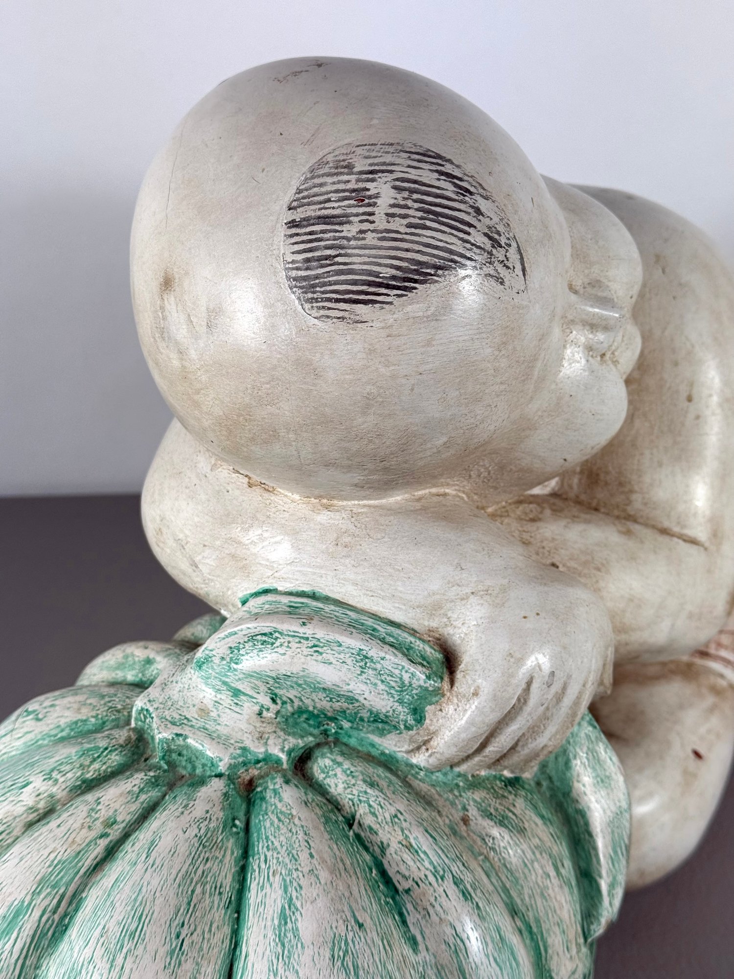 Solid Carved Wood & Painted Chinese Sculpture