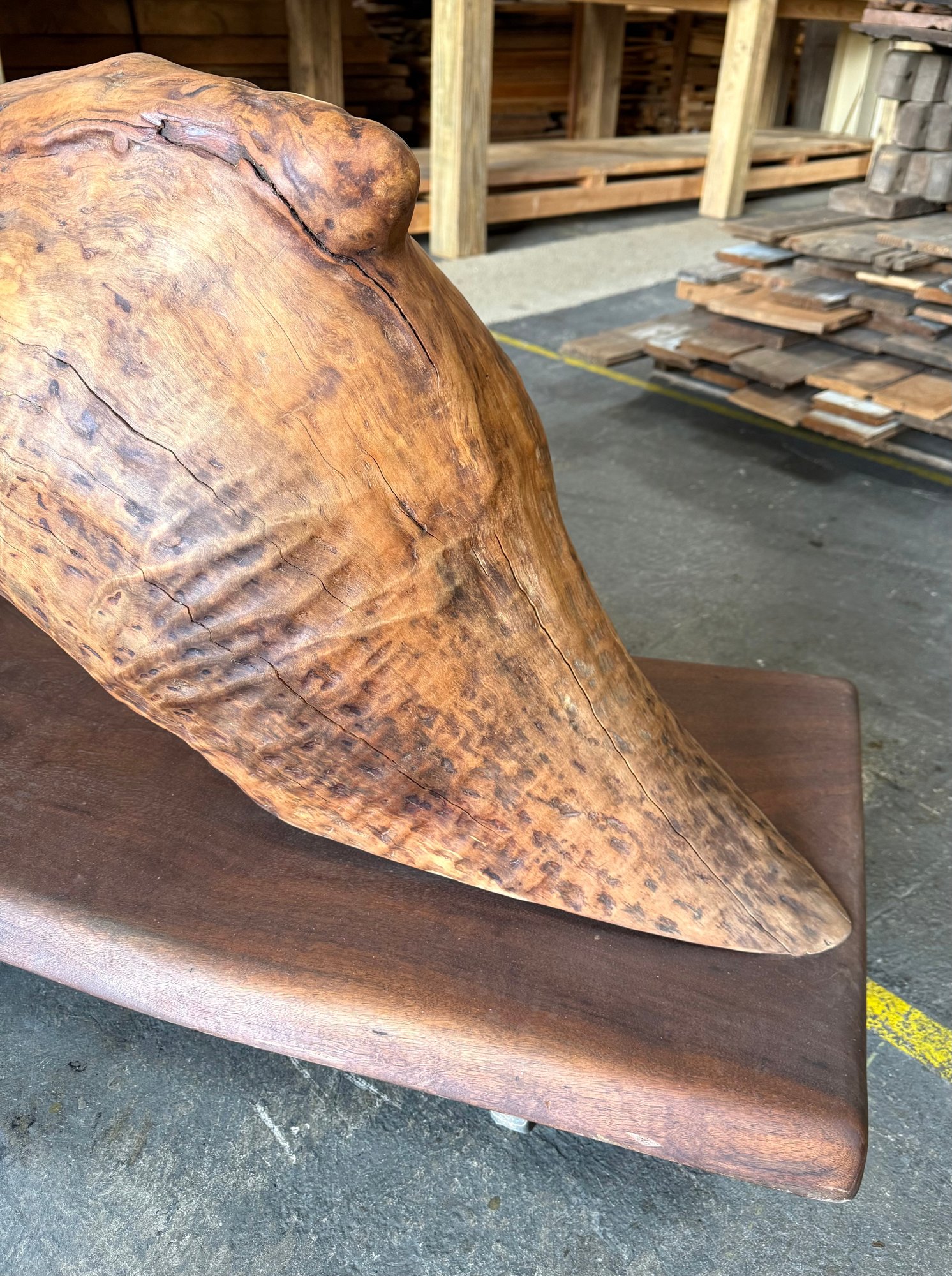 Solid Cherry Abstract Sculpture on Black Walnut Base "Fish/Serpent"