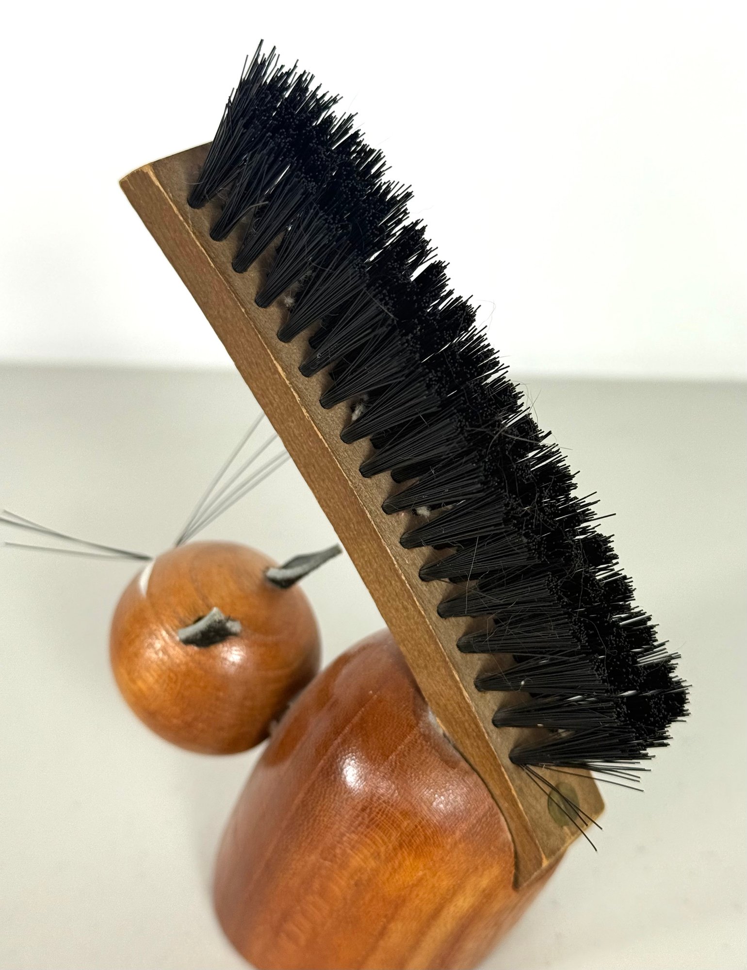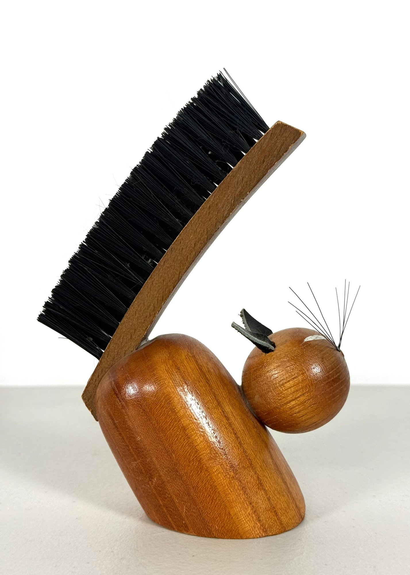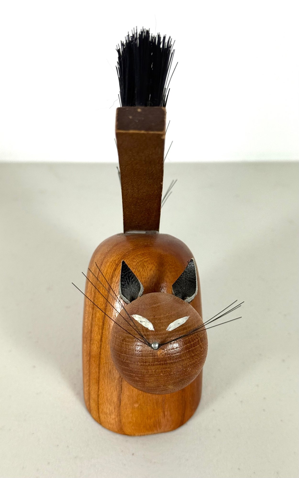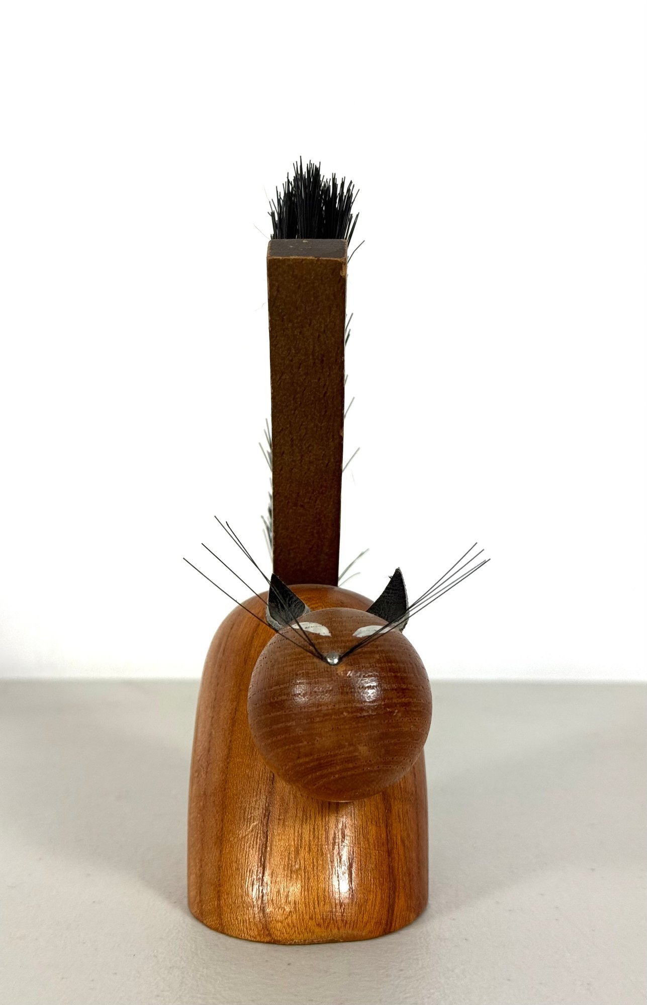 Solid Teak Cat Figurine MCM "Viking" Clothes Brush