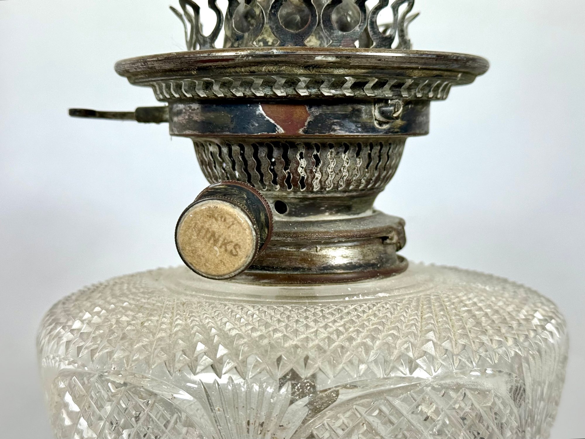 Stunning 1850s English Sterling Silver Cut Glass Banquet Lamp