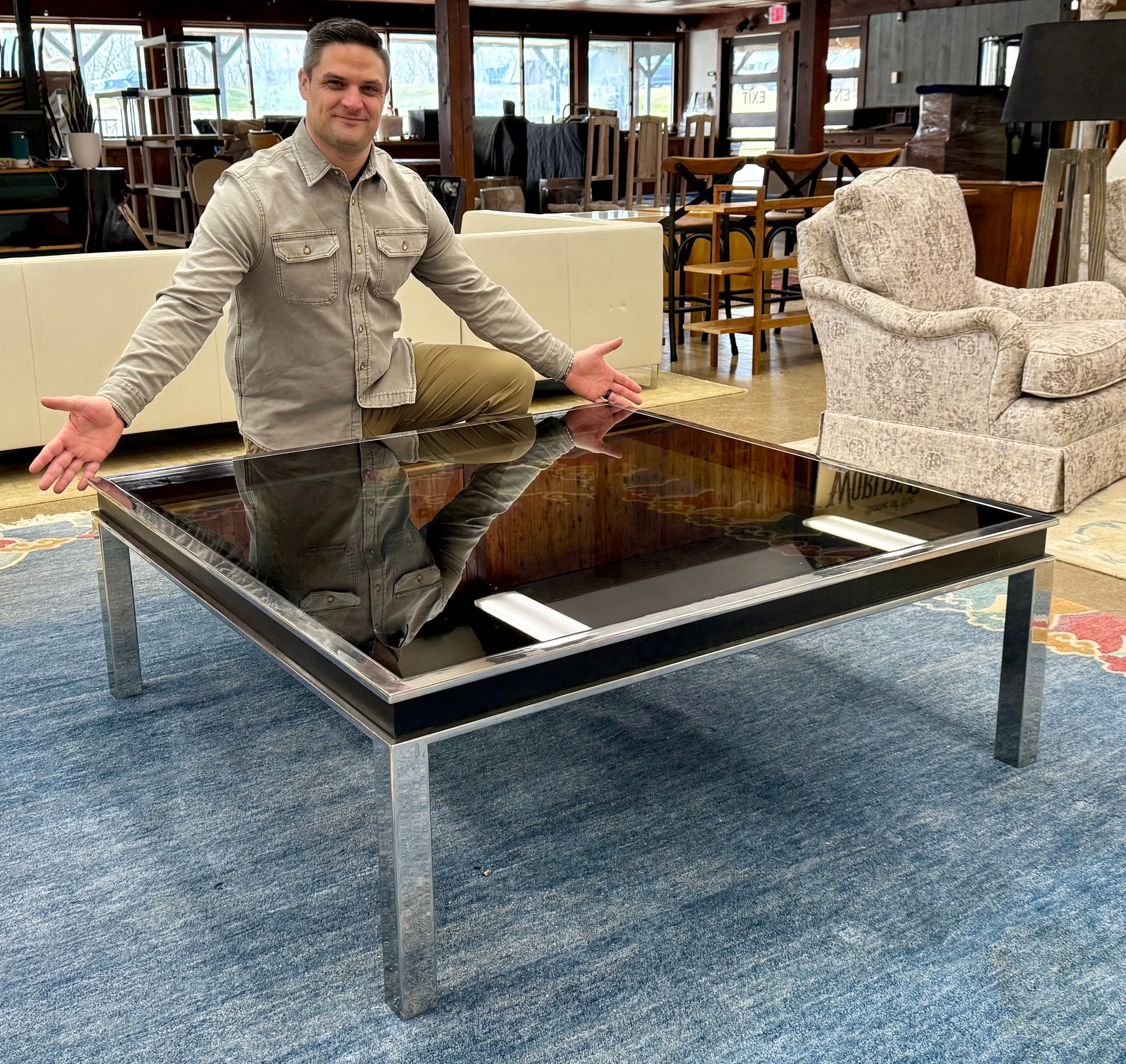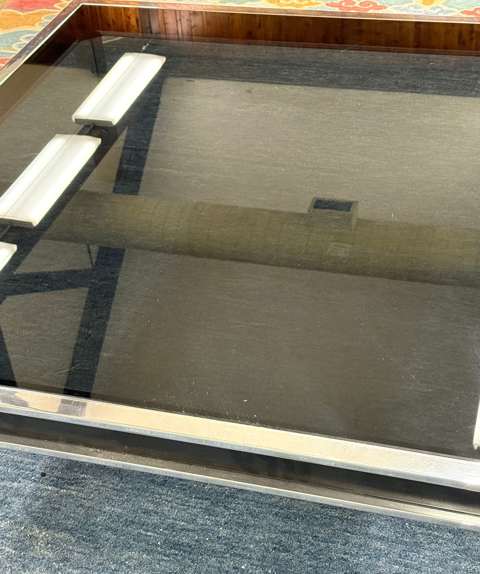 Very Large Smoked Glass & Chrome Coffee Table