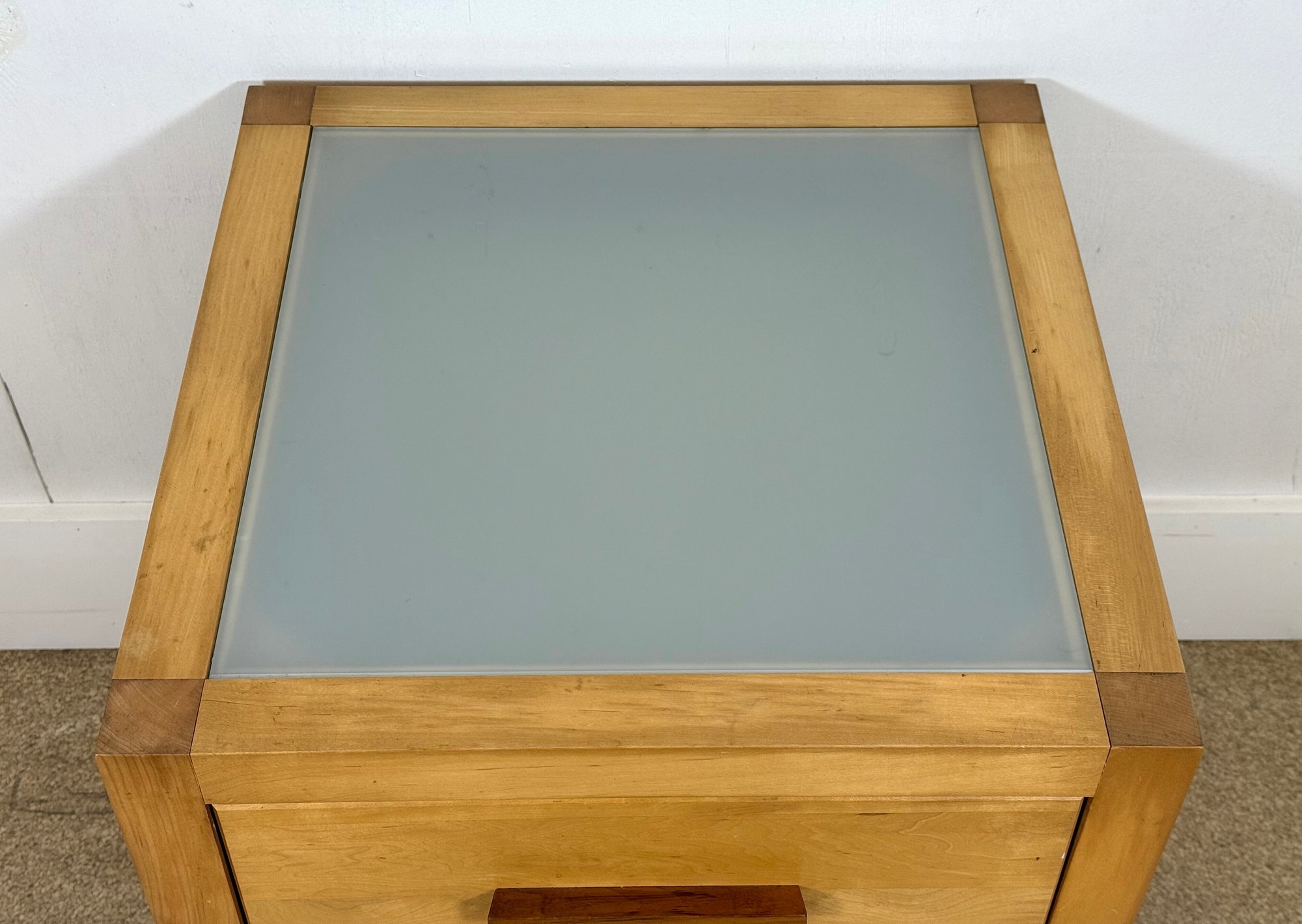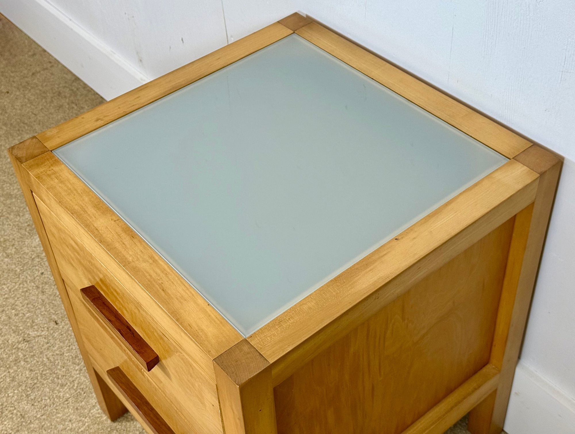 Black Walnut Pulls on Drawers & Removable Glass Top.