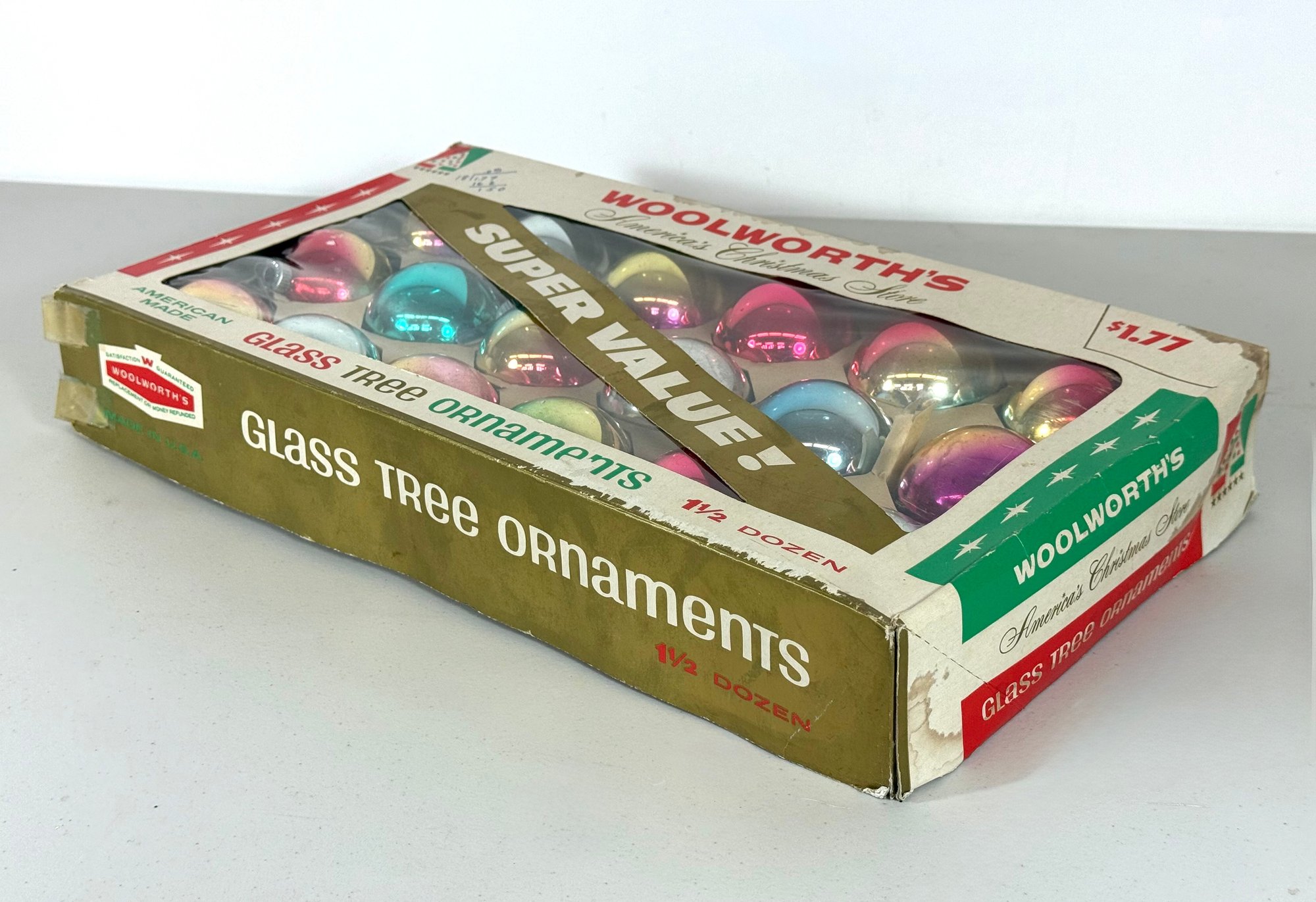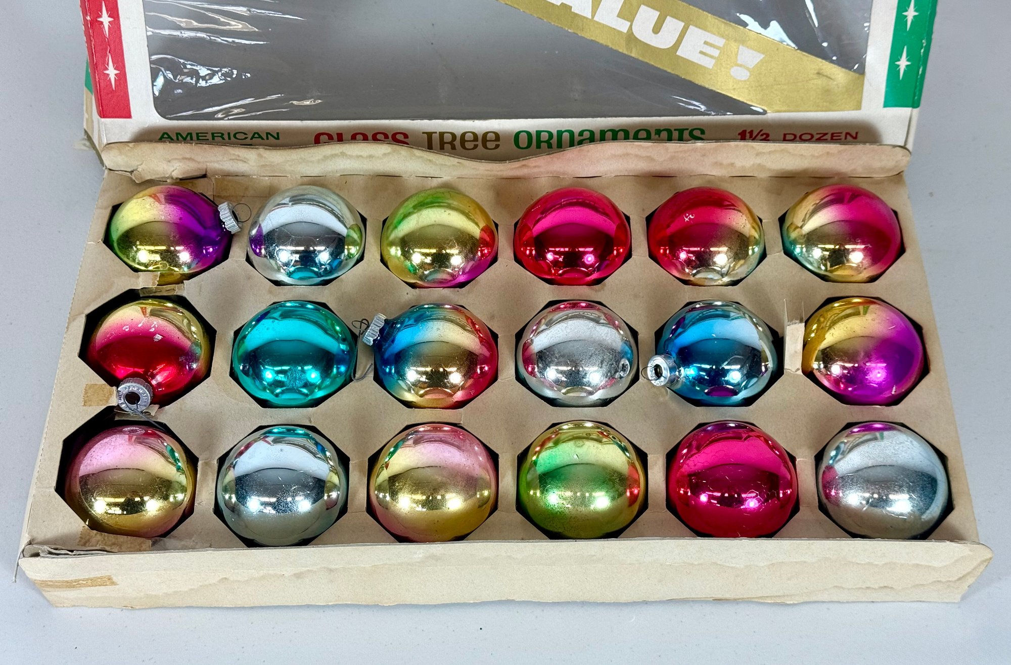 Vintage Box of Mid-Century Christmas Tree Ornaments