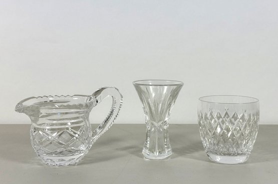 Waterford Signed Crystal Creamer, Bud Vase & Whiskey Glass