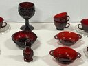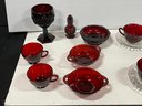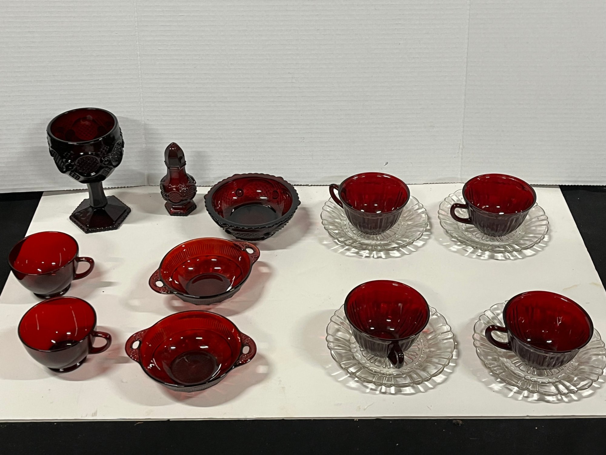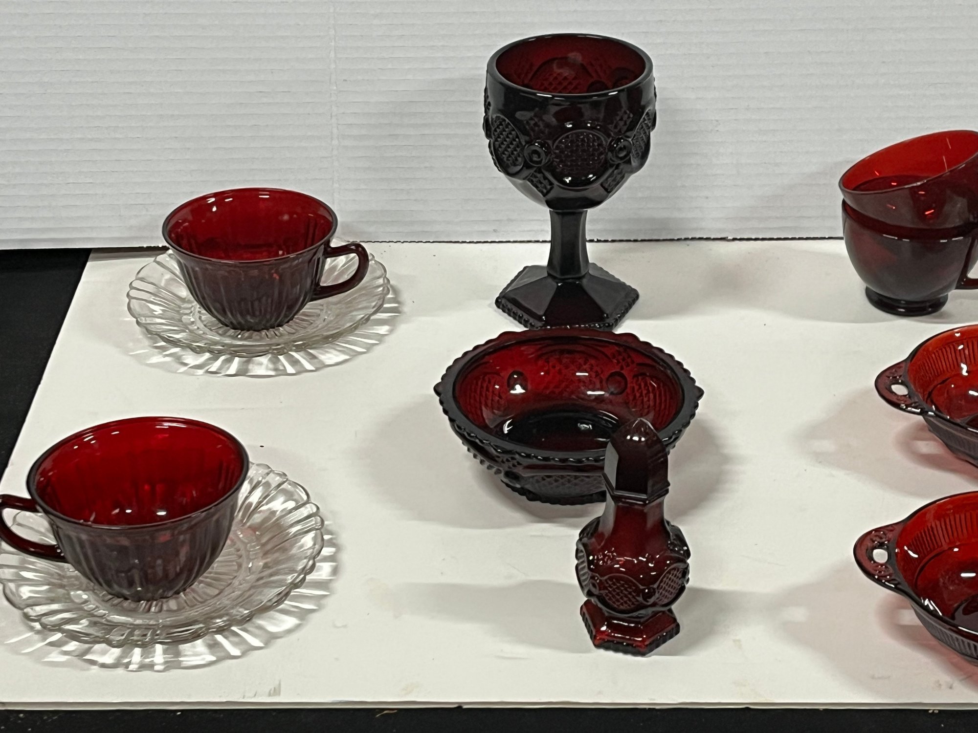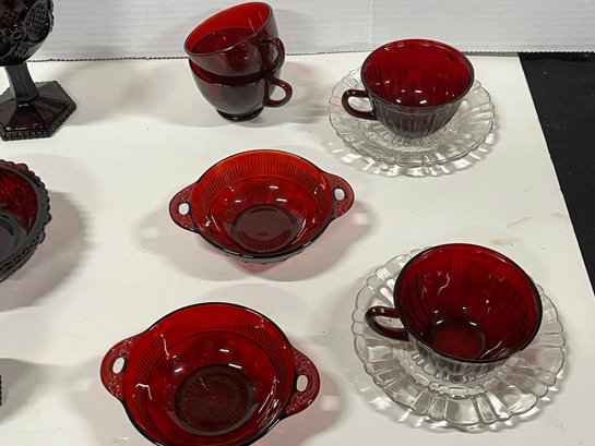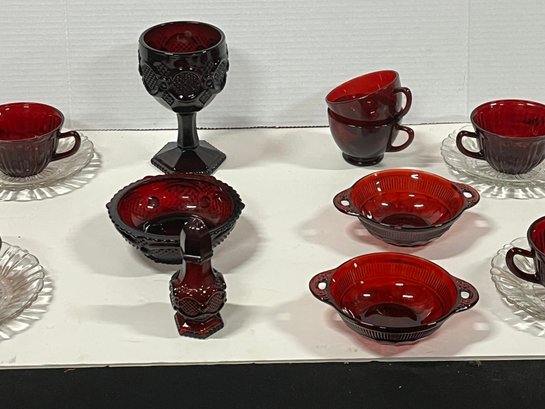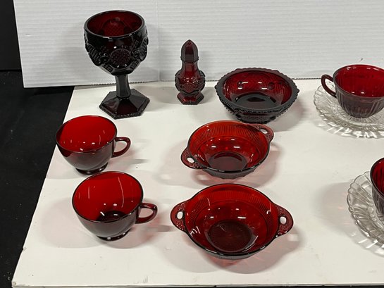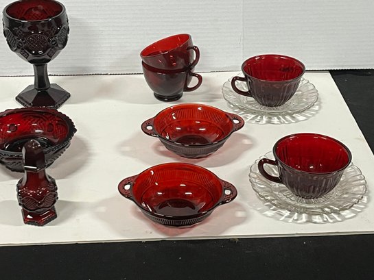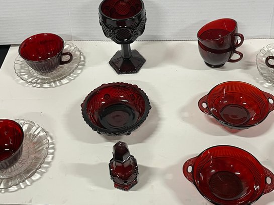 Assortment Of Ruby Depression Glass And 2 Pcs Of Ruby Avon Cape Cod