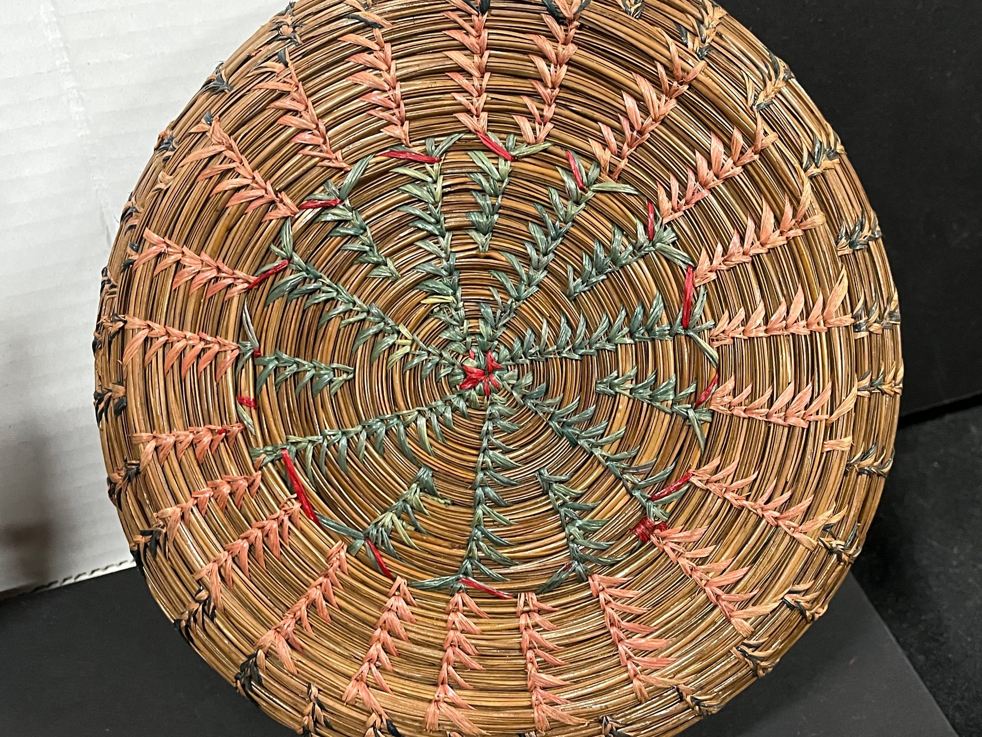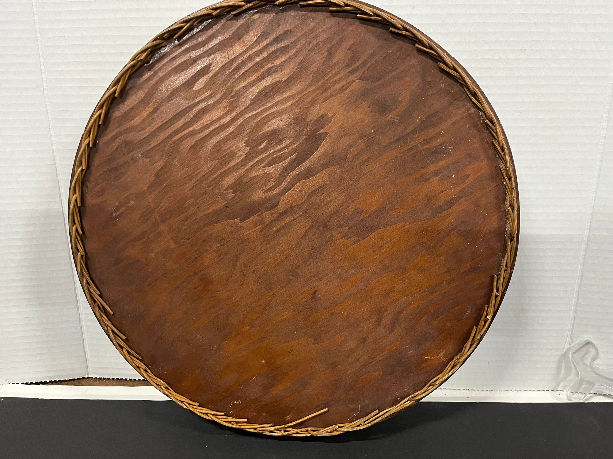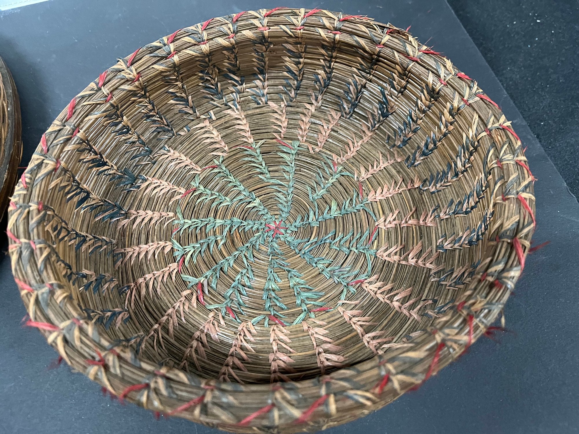 Asst Of Basketry Ware Pieces Incl Round Glass Top Tray With Material Floral Design
