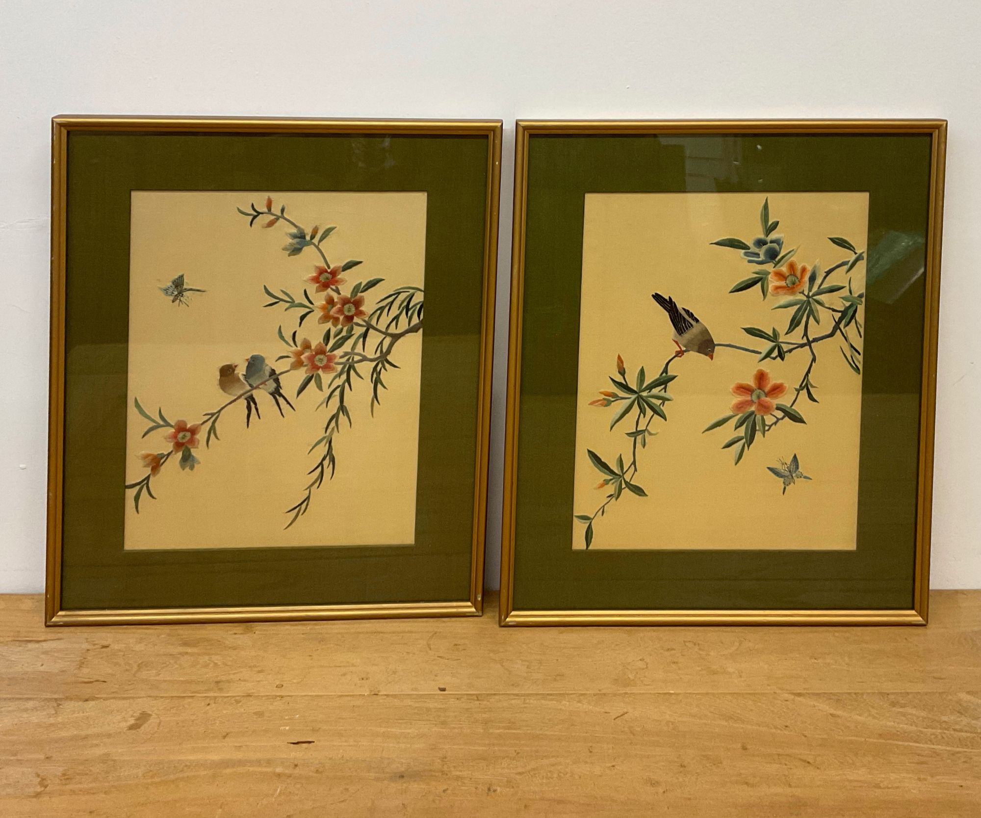Beautiful Matted Stitched Asian Artwork On Satin/silk