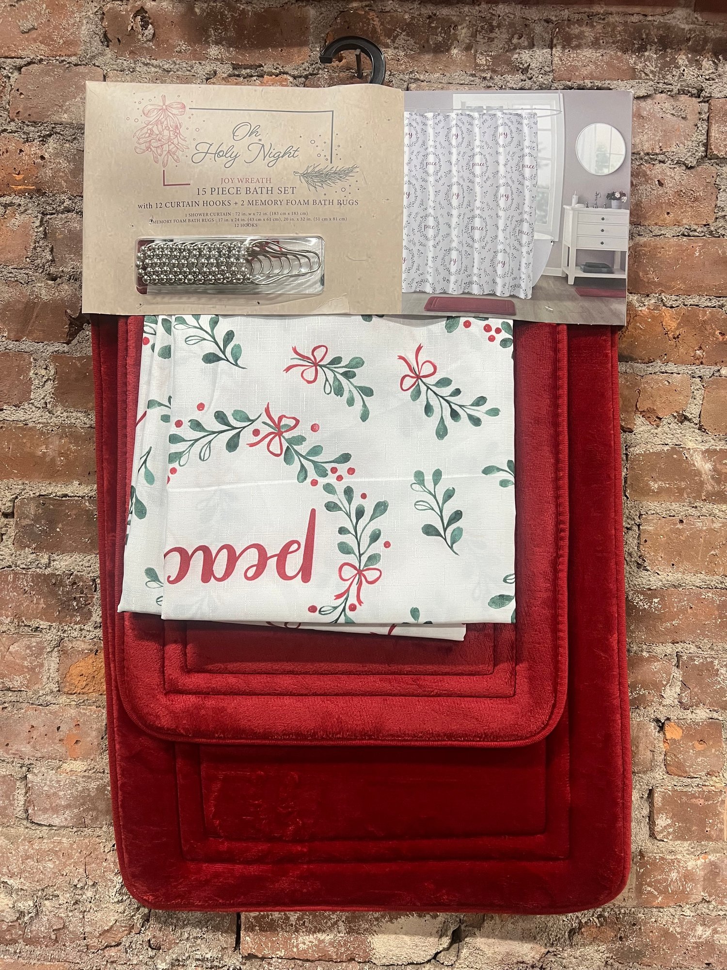Christmas Bathroom Decorations -Shower Curtain Hooks And Bathmats - NEW 1 Of 2