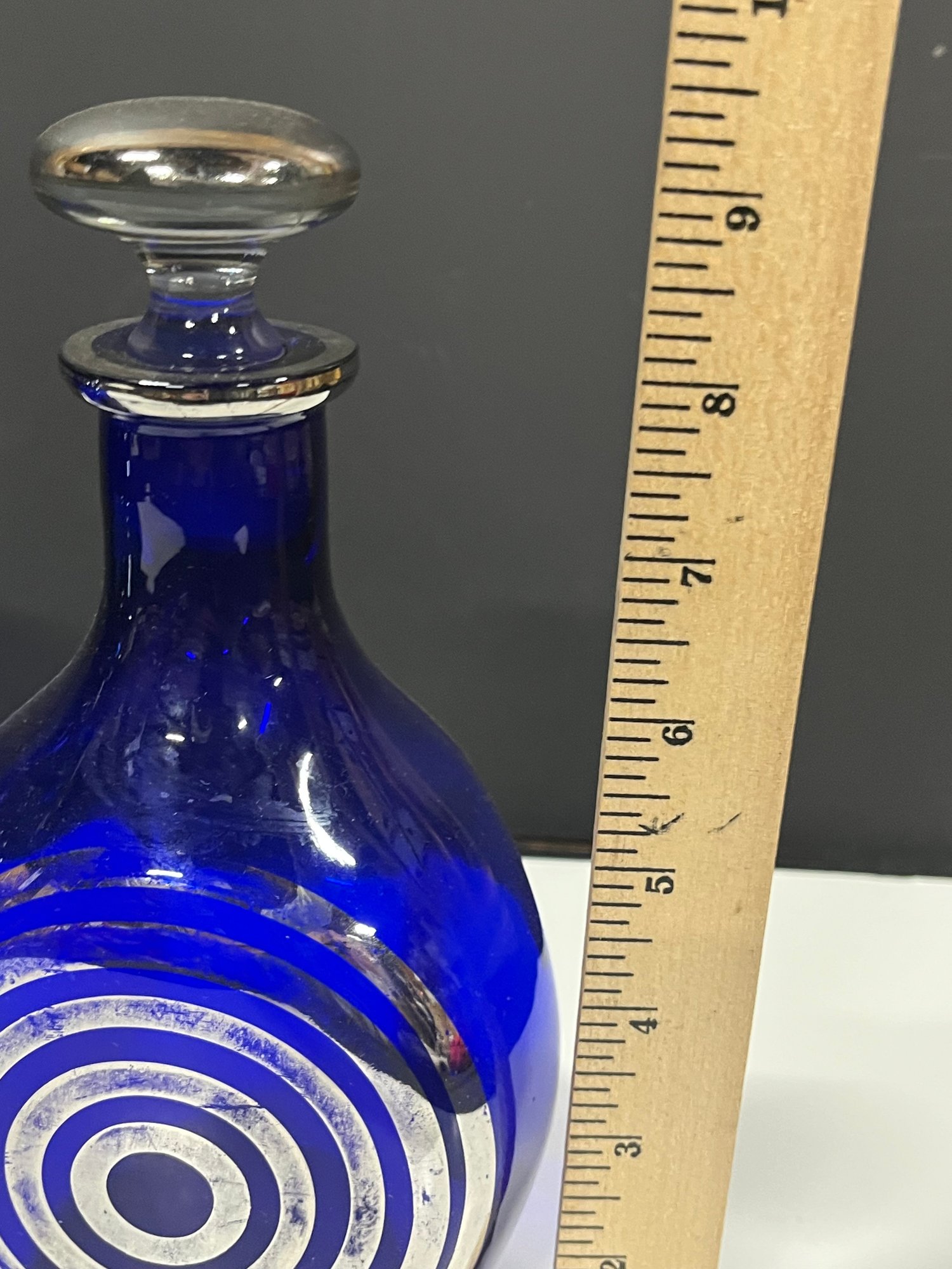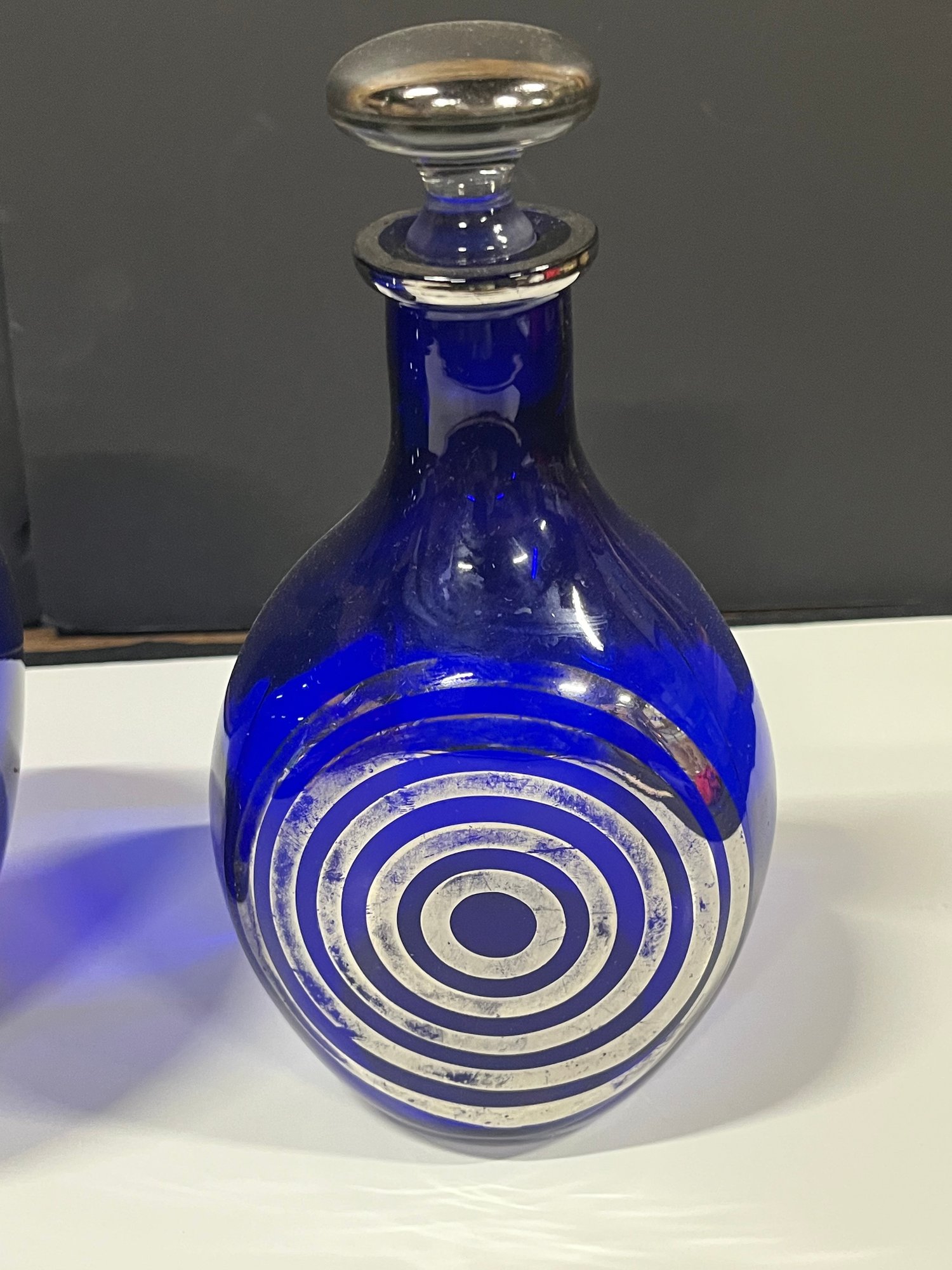 Notes: Some wear to silver overlay on Decanter