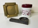 Pipe And Tobacco Holder, Brass Change Holder And Marble Ashtray