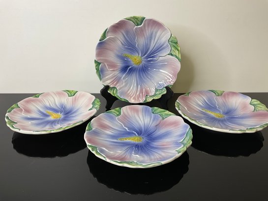 Four Pink And Blue Floral Dishes