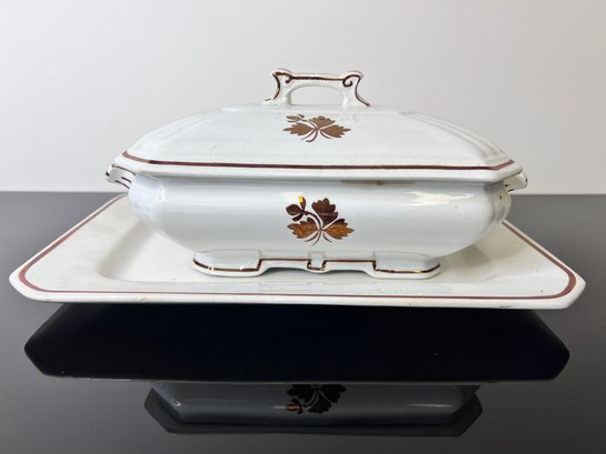 Royal Ironstone Tea Leaf Lustre Covered Casserole Dish With Underplate