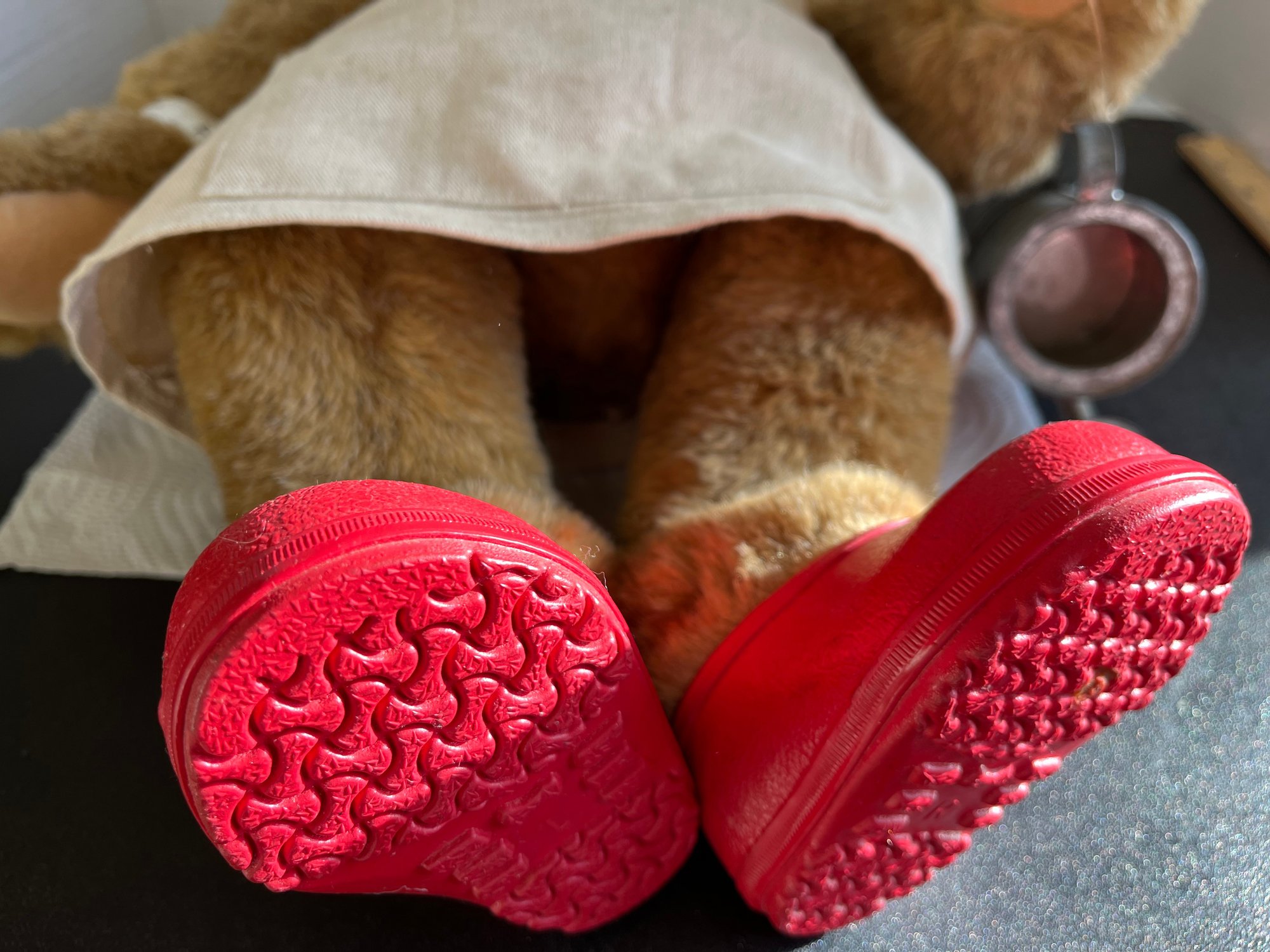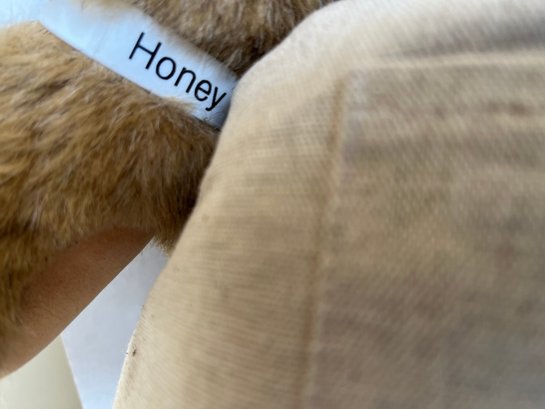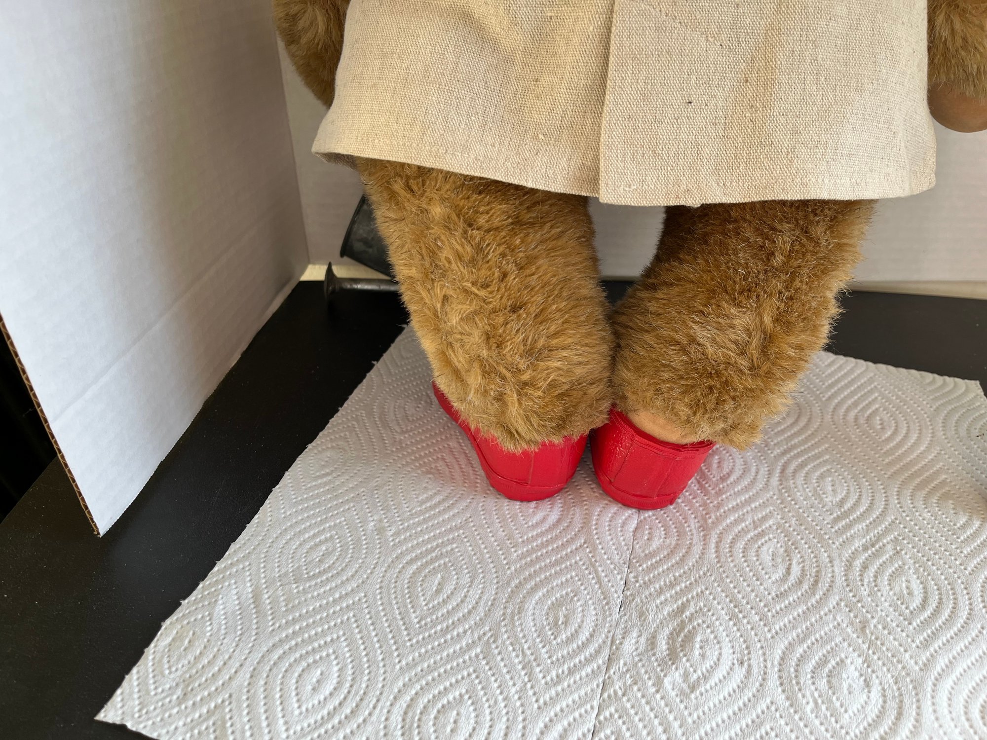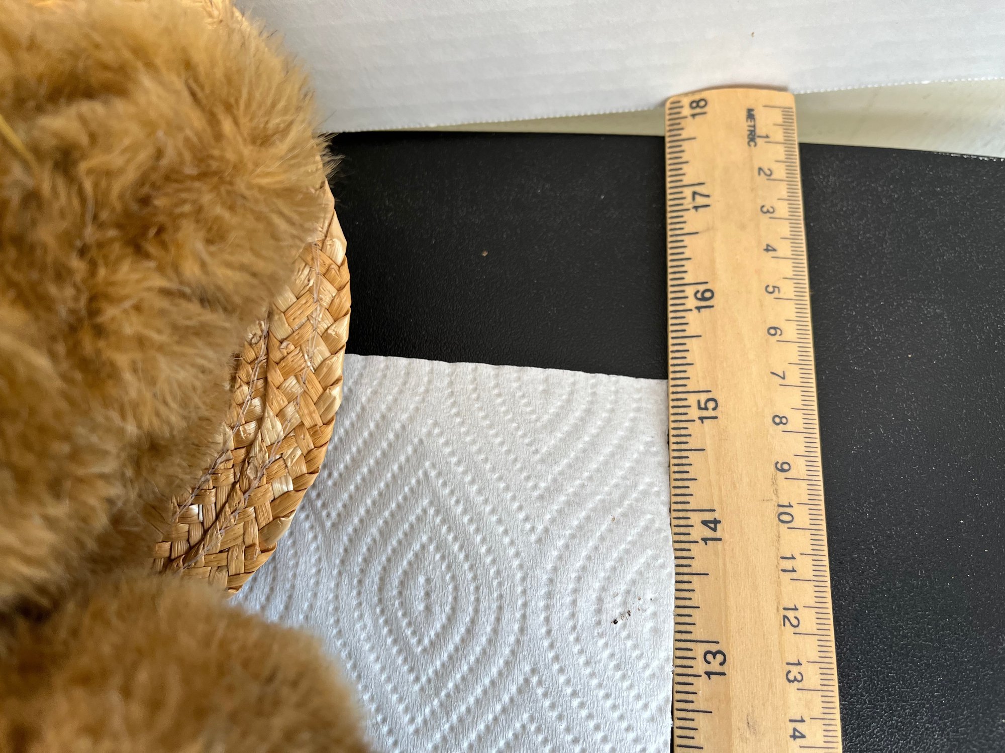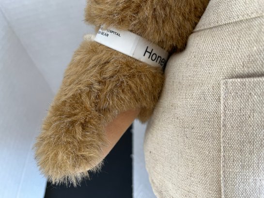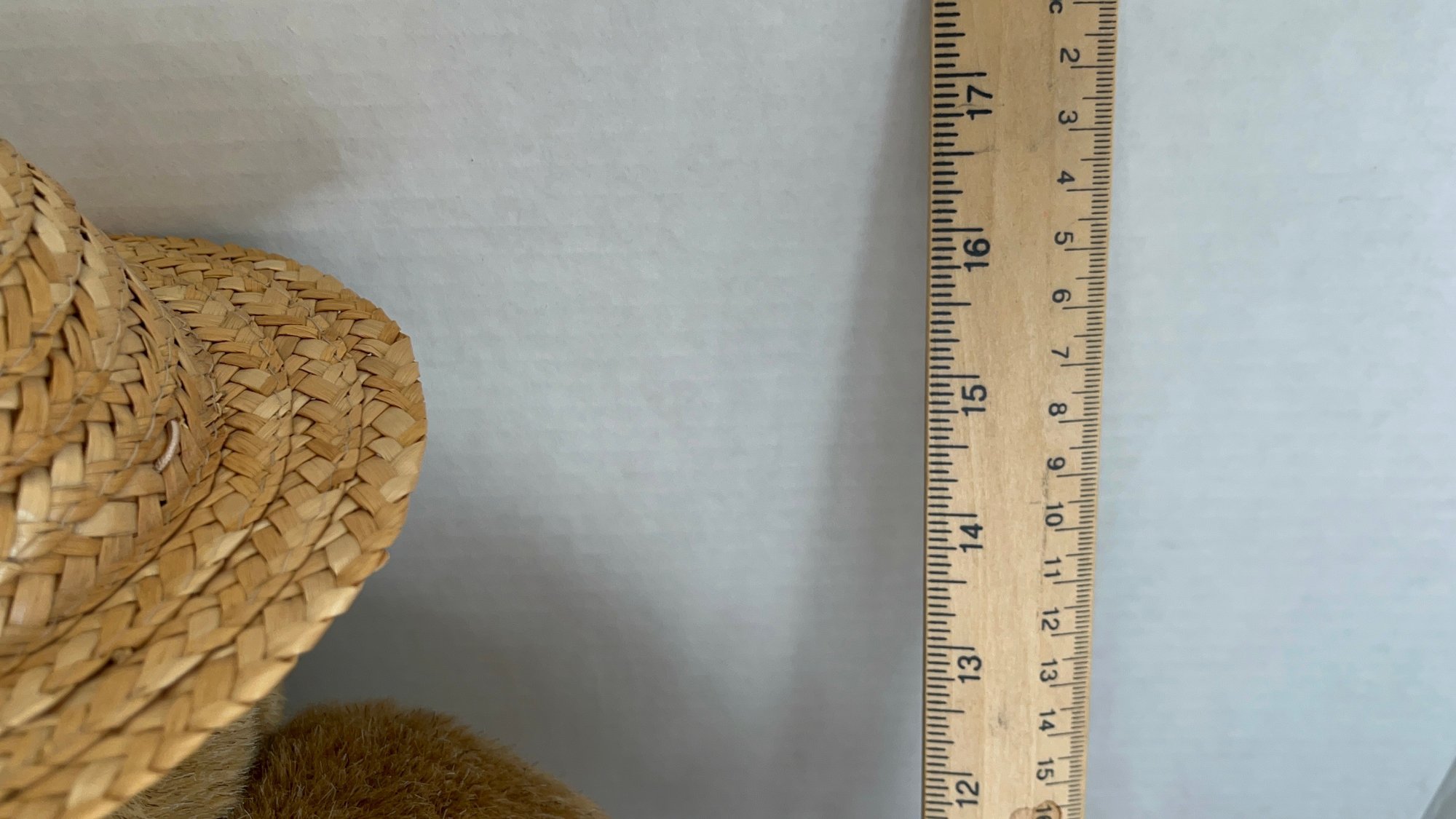 Complete with straw hat / eyeglasses / canvas gardening apron/ watering can / red work shoes and Vermont Teddy Bear hospital wrist tag