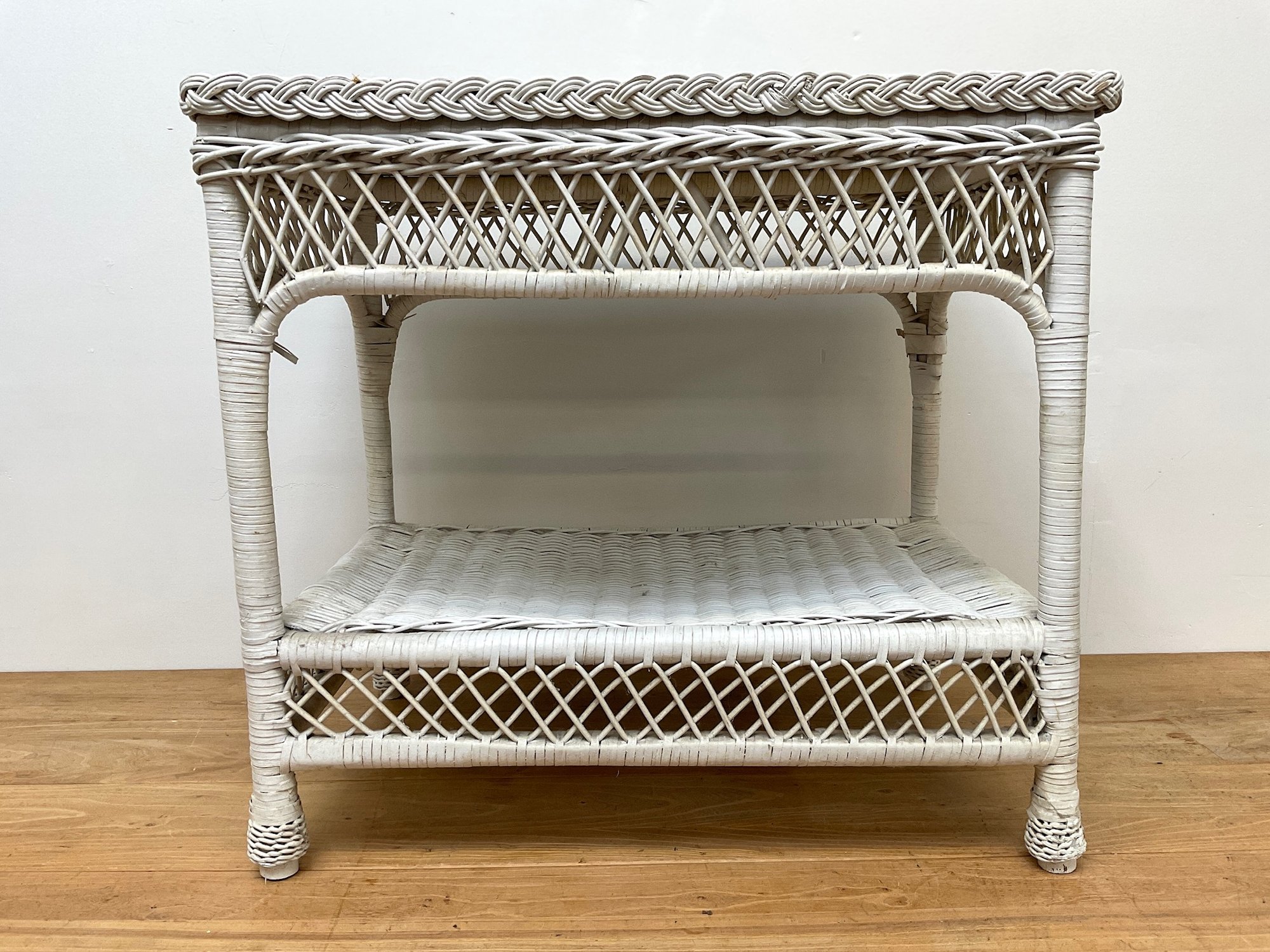 Vintage White Wicker Table - 23" H X 25" W X 16" D