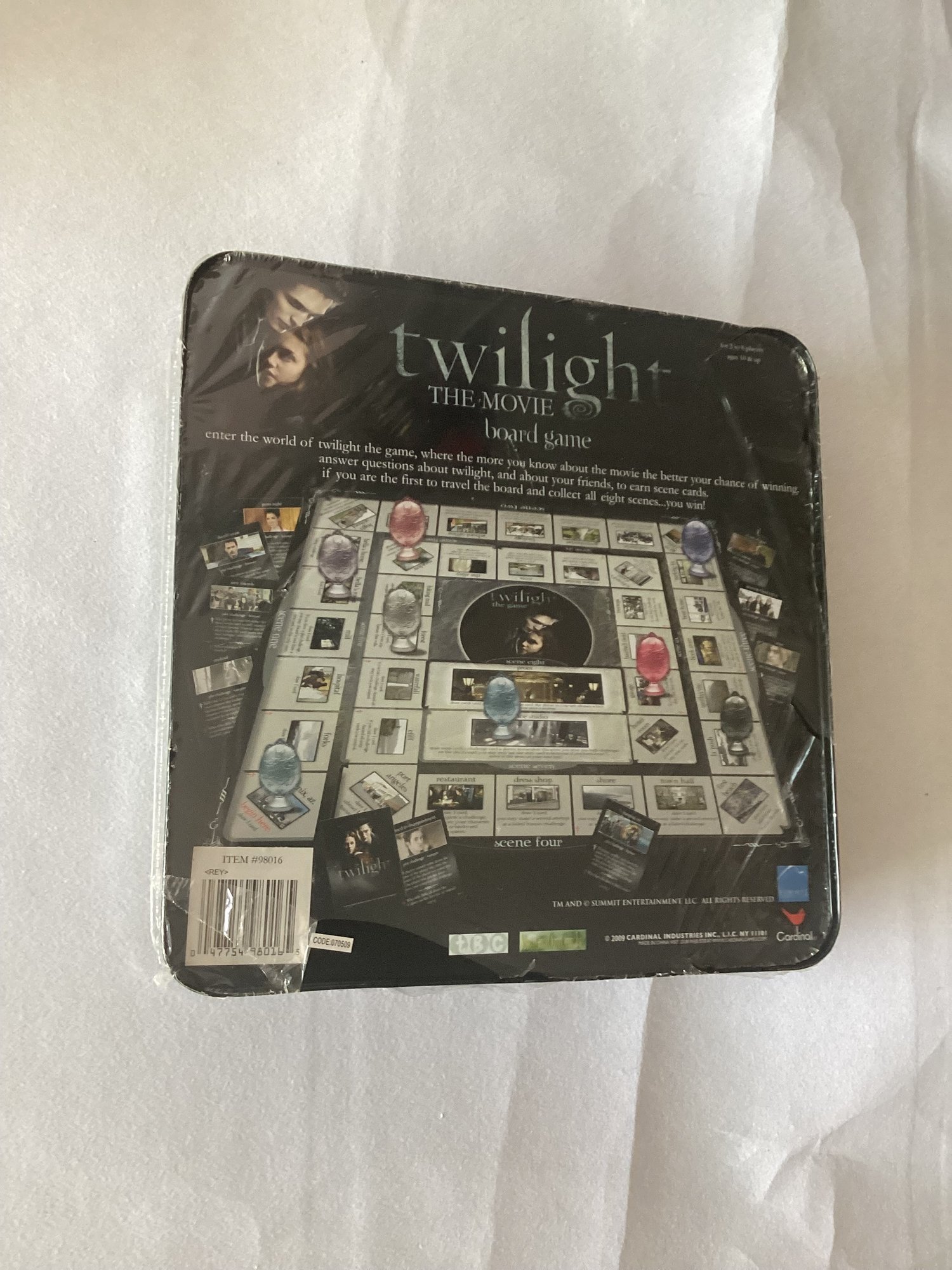 Twilight The Movie Board Game - plastic seal torn, tin box has some dents but appears unopened