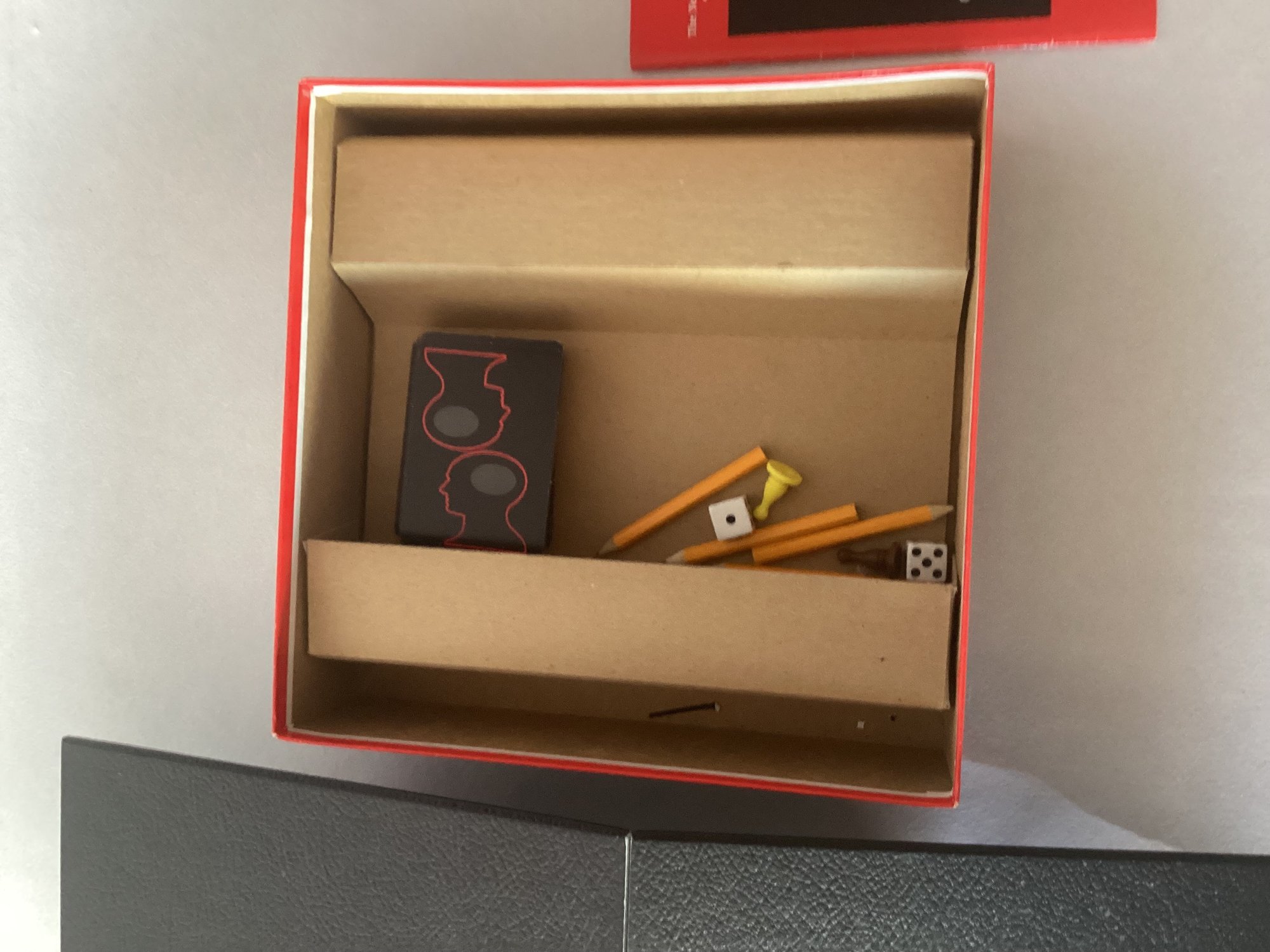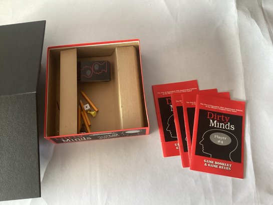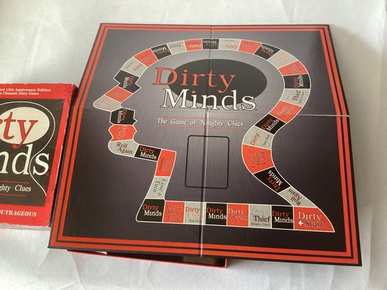 Dirty Minds - The Game of Naughty Clues - as found, box shows wear, may be missing pieces