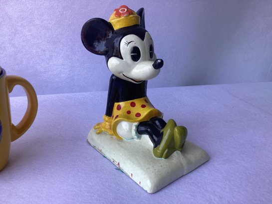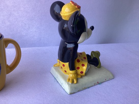 Vintage Minnie Mouse Bookend - Hand Made in Japan - shows signs of age, chips, and wear