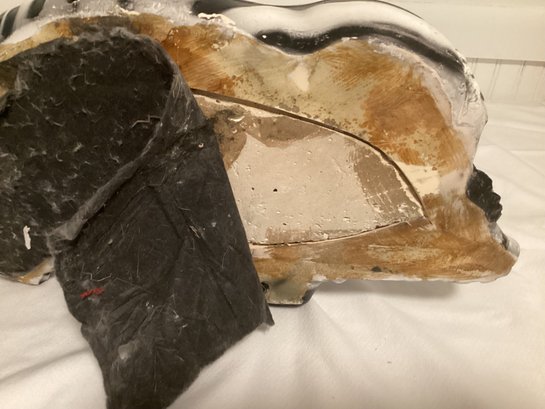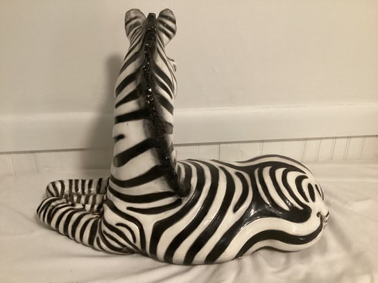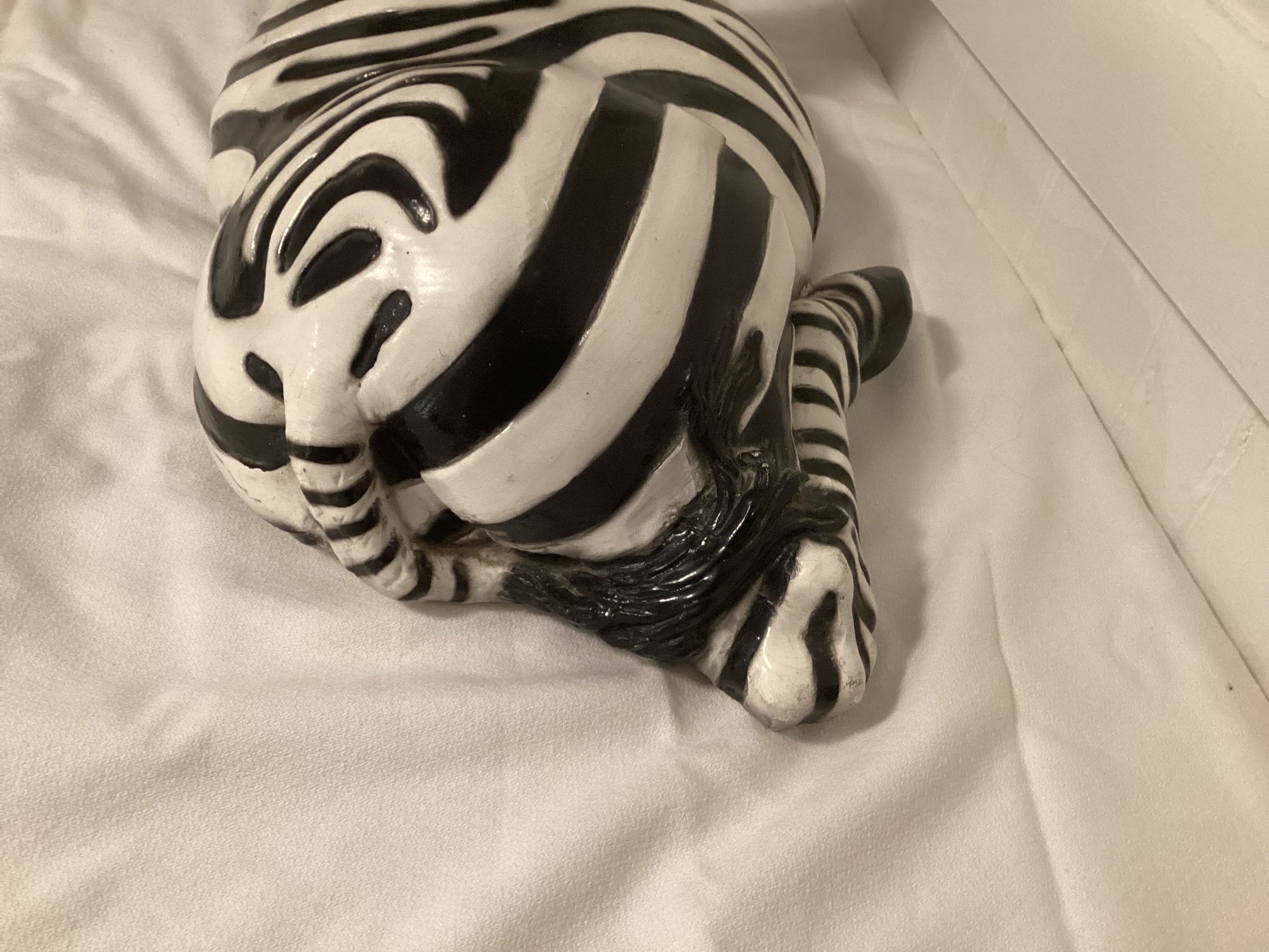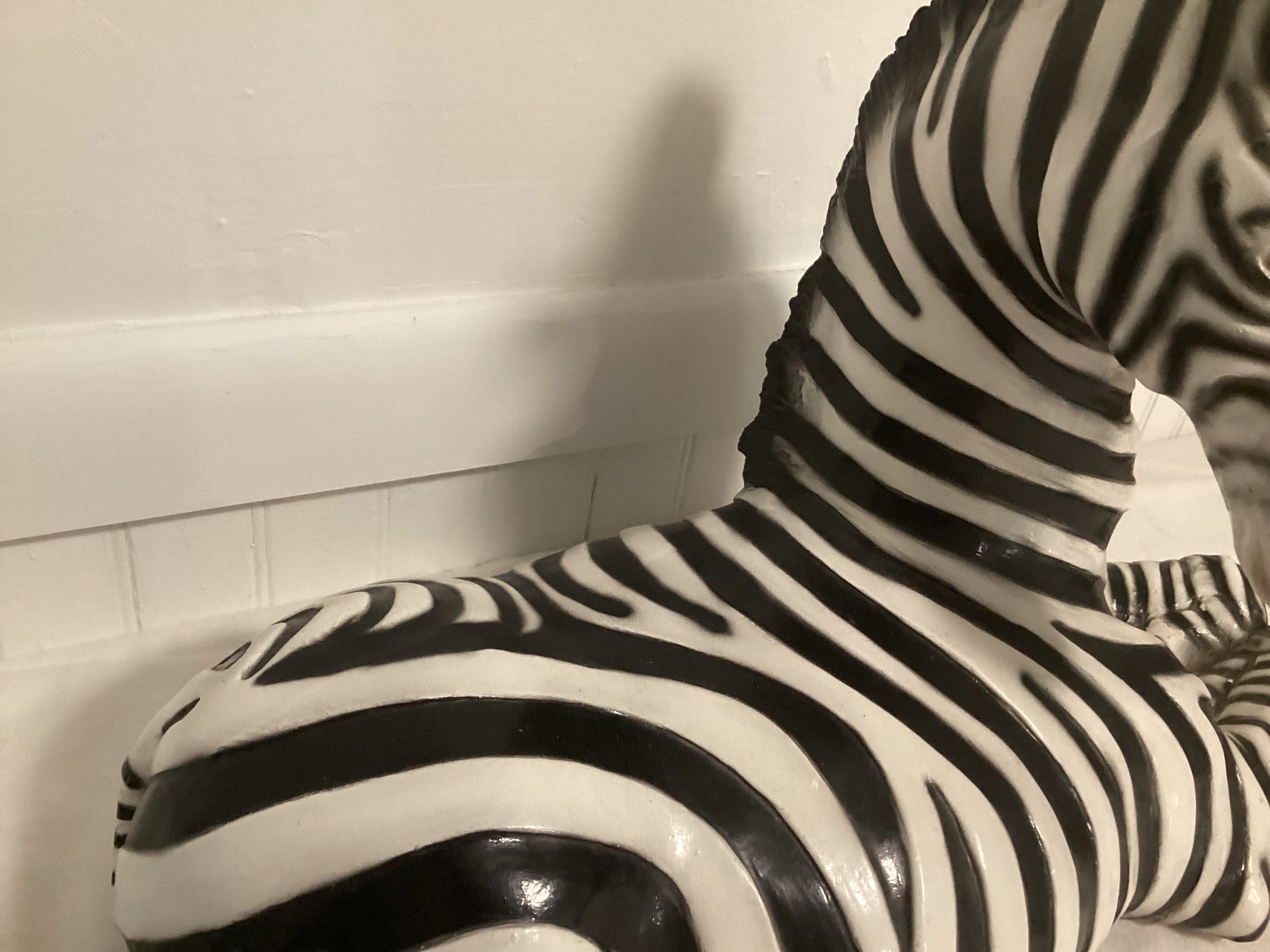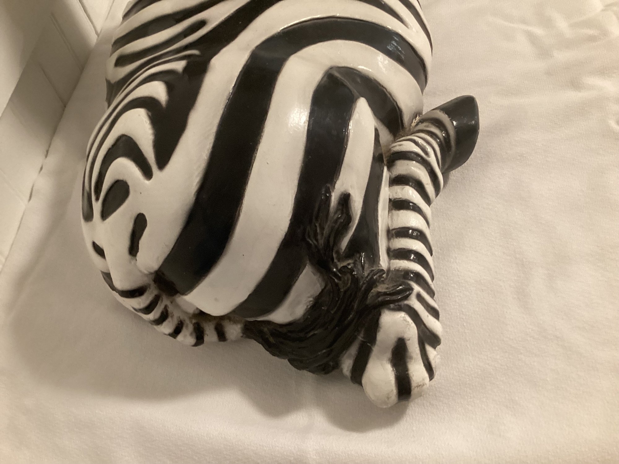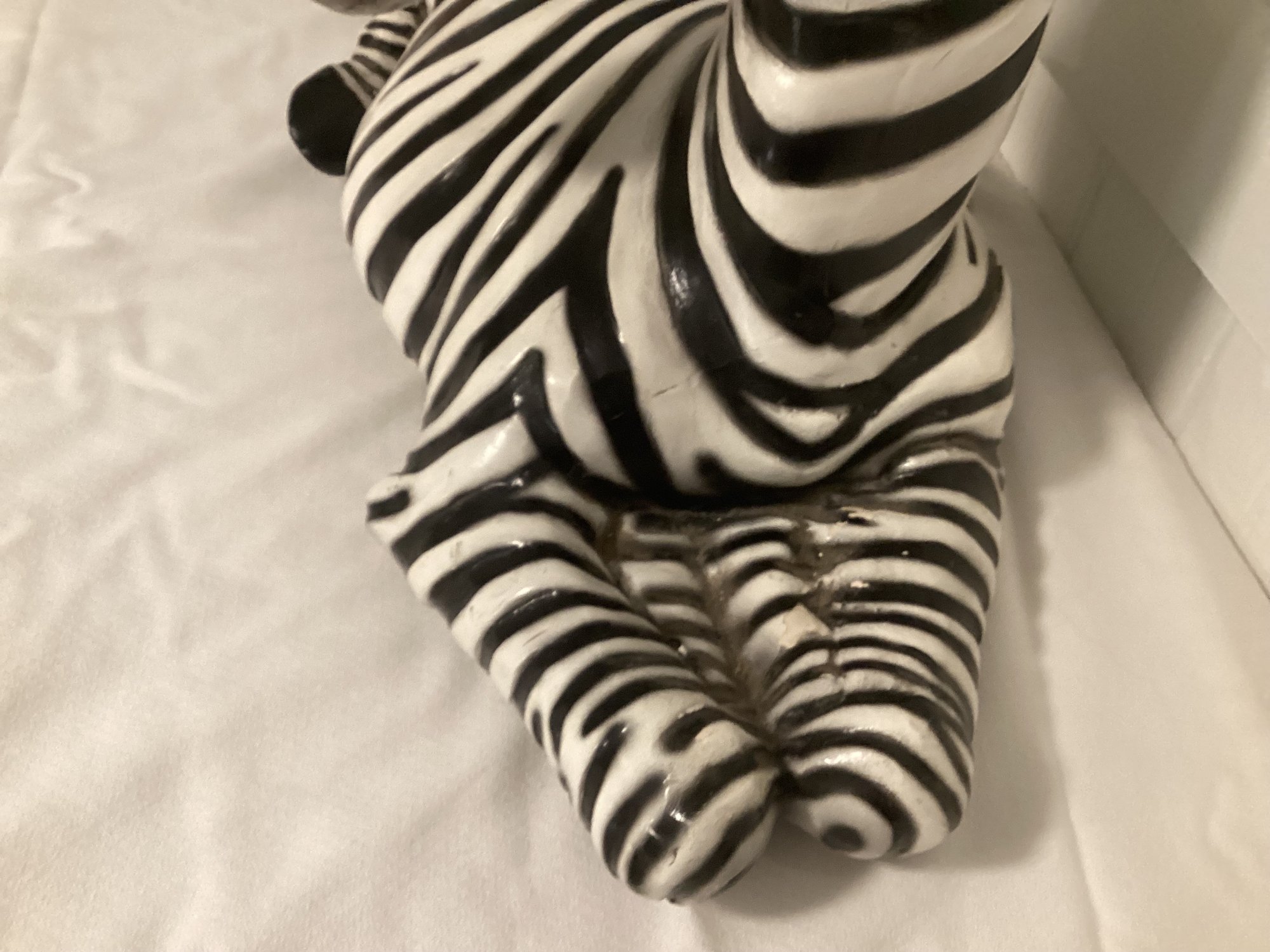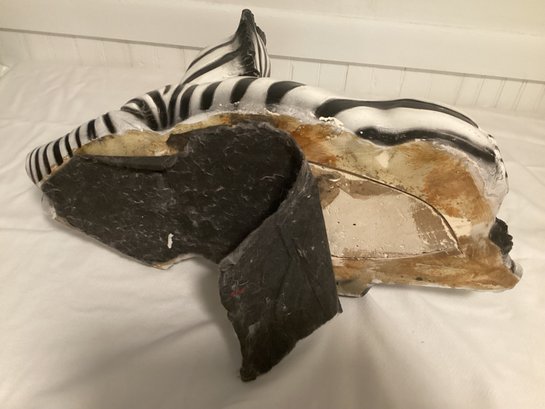 Zebra Figure Home Decor - there are some chips, damage, and felt is coming detached from the bottom. As found, please see pictures for condition.