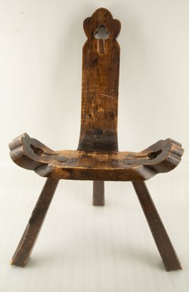 Vintage Three Legs Wooden Chair Of Wabi-Sabi Style