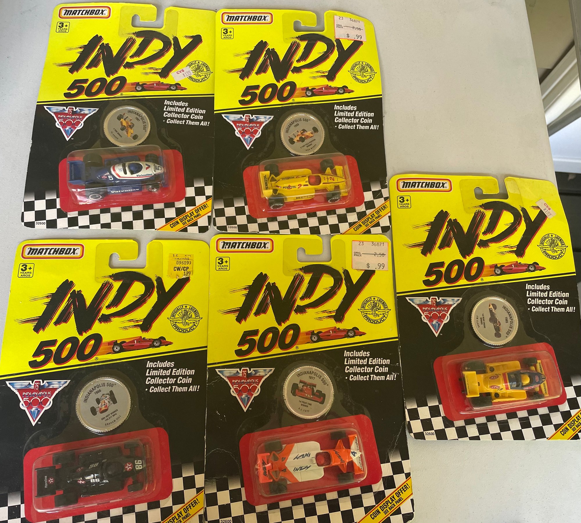 1992 Matchbox Indy 500 diecast cars mint on card. Cards show some wear.