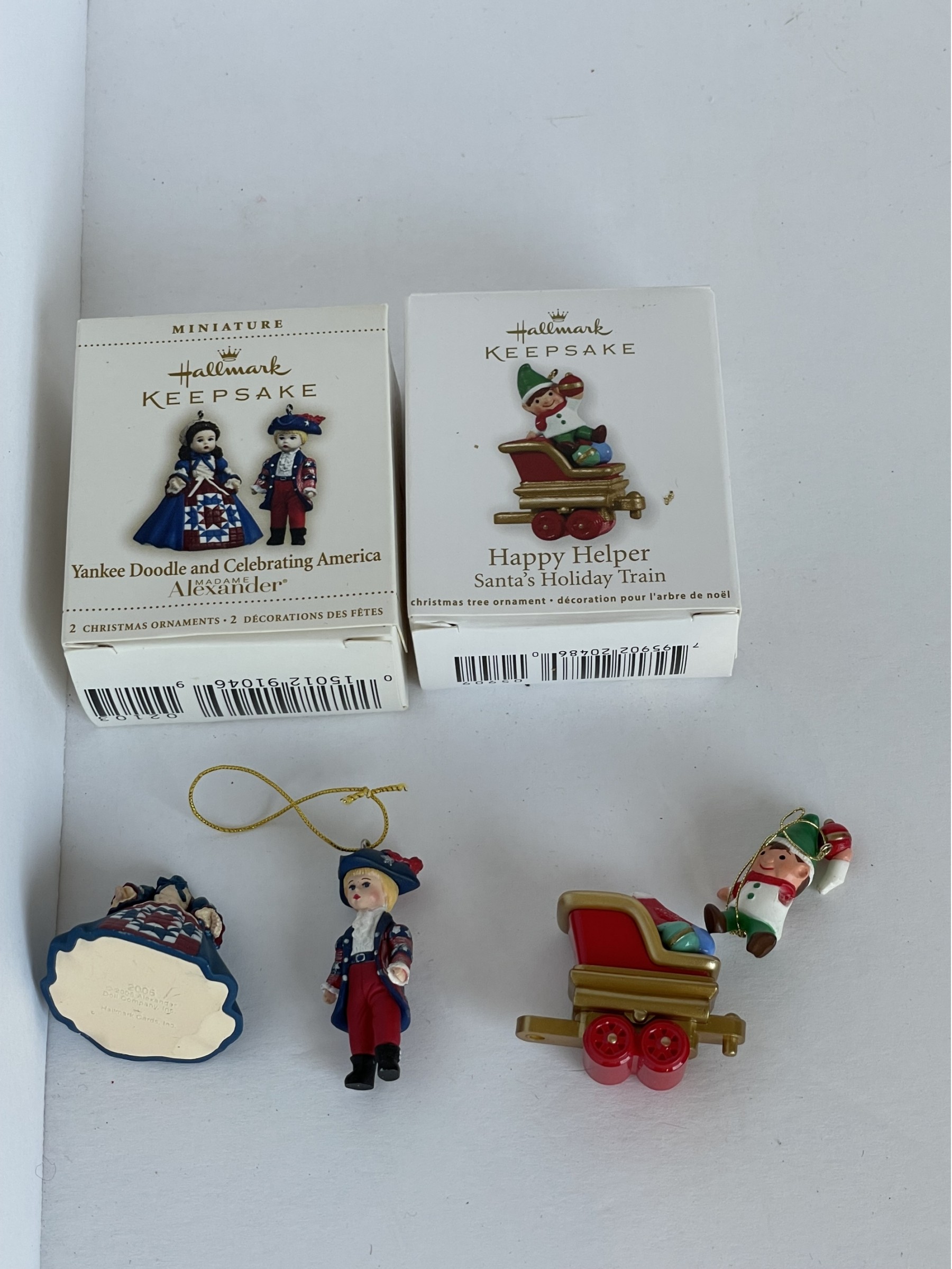 Madame Alexander figures and elf figure. The Madame Alexander girl lost her head. The elf has a few breaks. You still get boxes and the unbroken male doll figure.