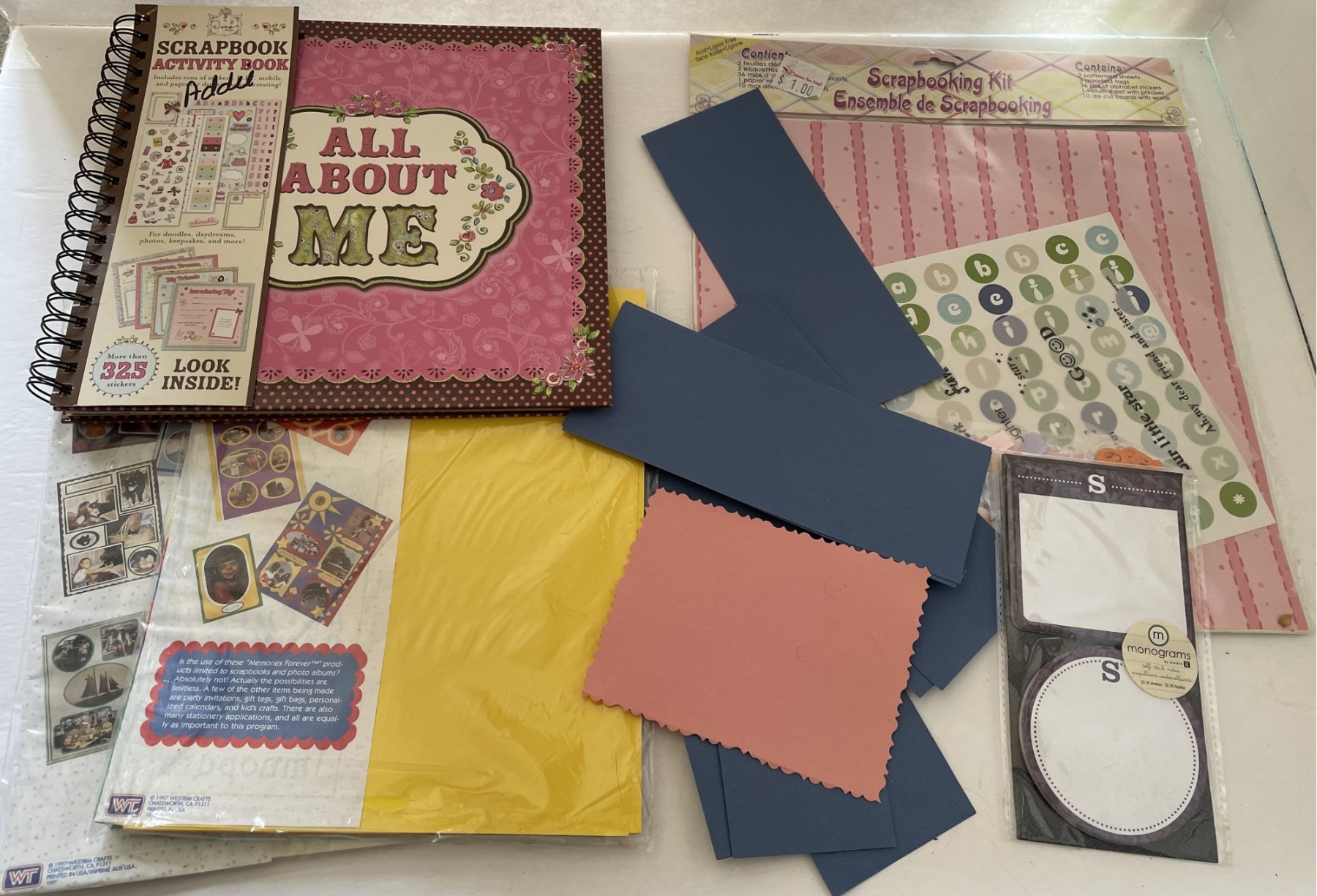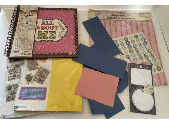 Assorted lot of scrapbooking items, including unused album.
