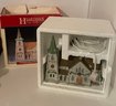 Nice 1992 Hearthside Village ceramic church with plugged light to insert for Christmas decor. Light is working. Comes in original box, but box is clearly torn up.