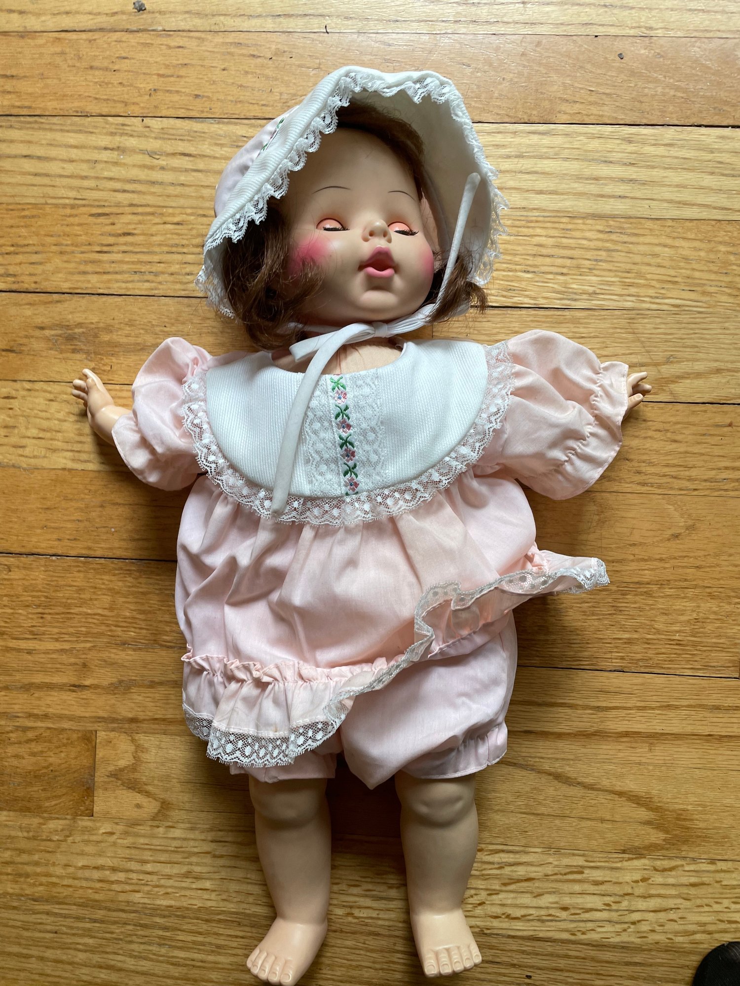 Horseman 1974 doll. Pink lace dress and bonnet.