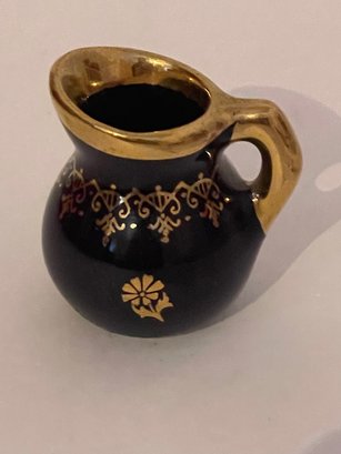 Tiny porcelain Limoges blue and gold pitcher.