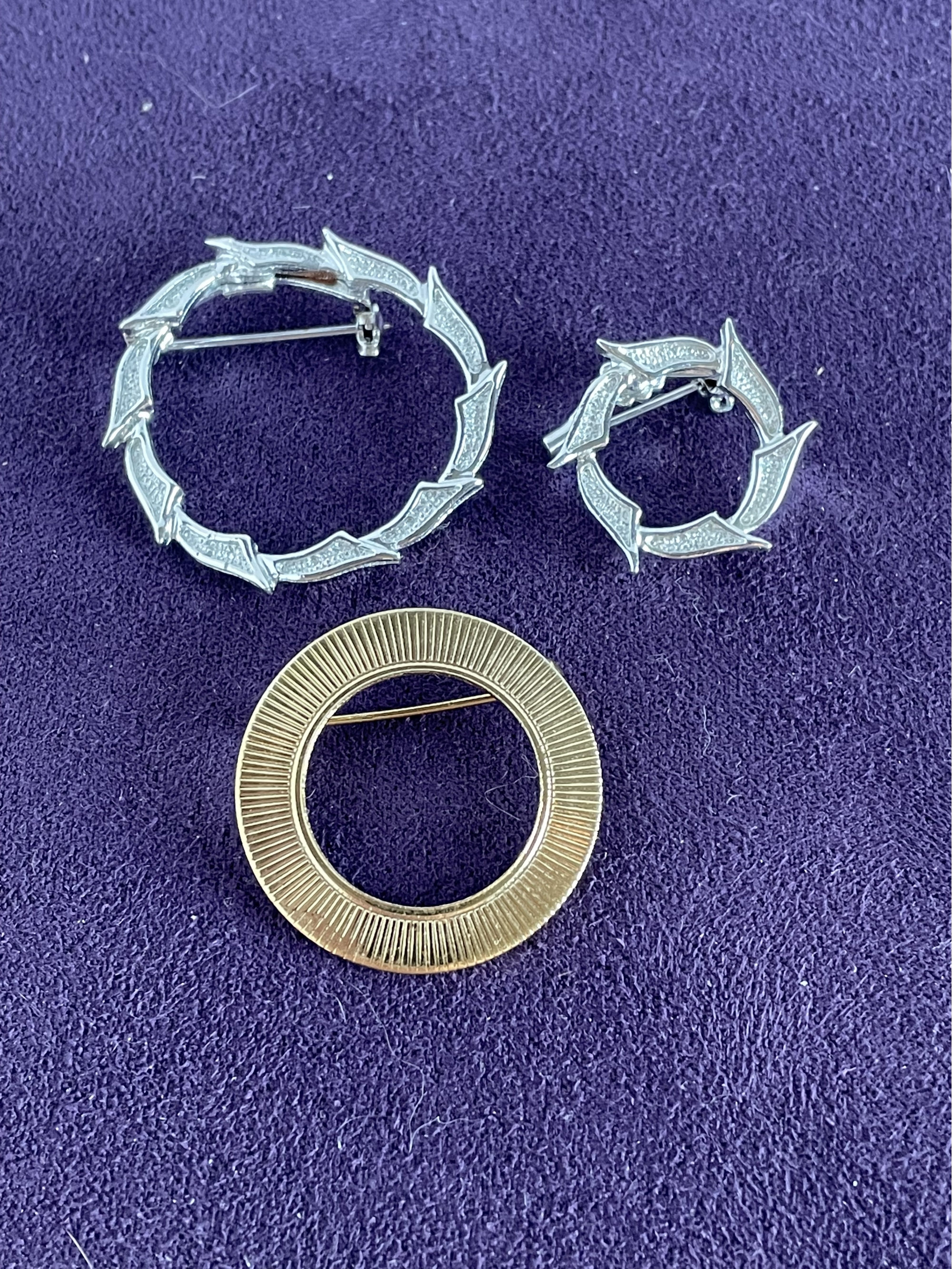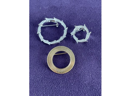 Unsigned circle brooches / pins.