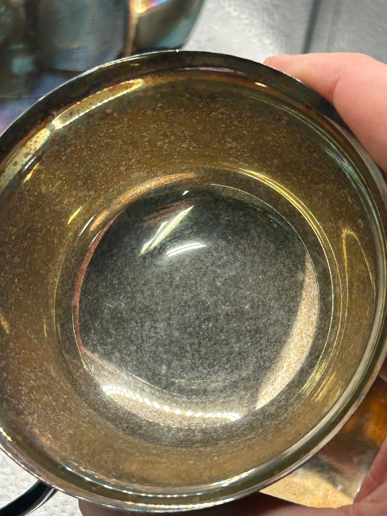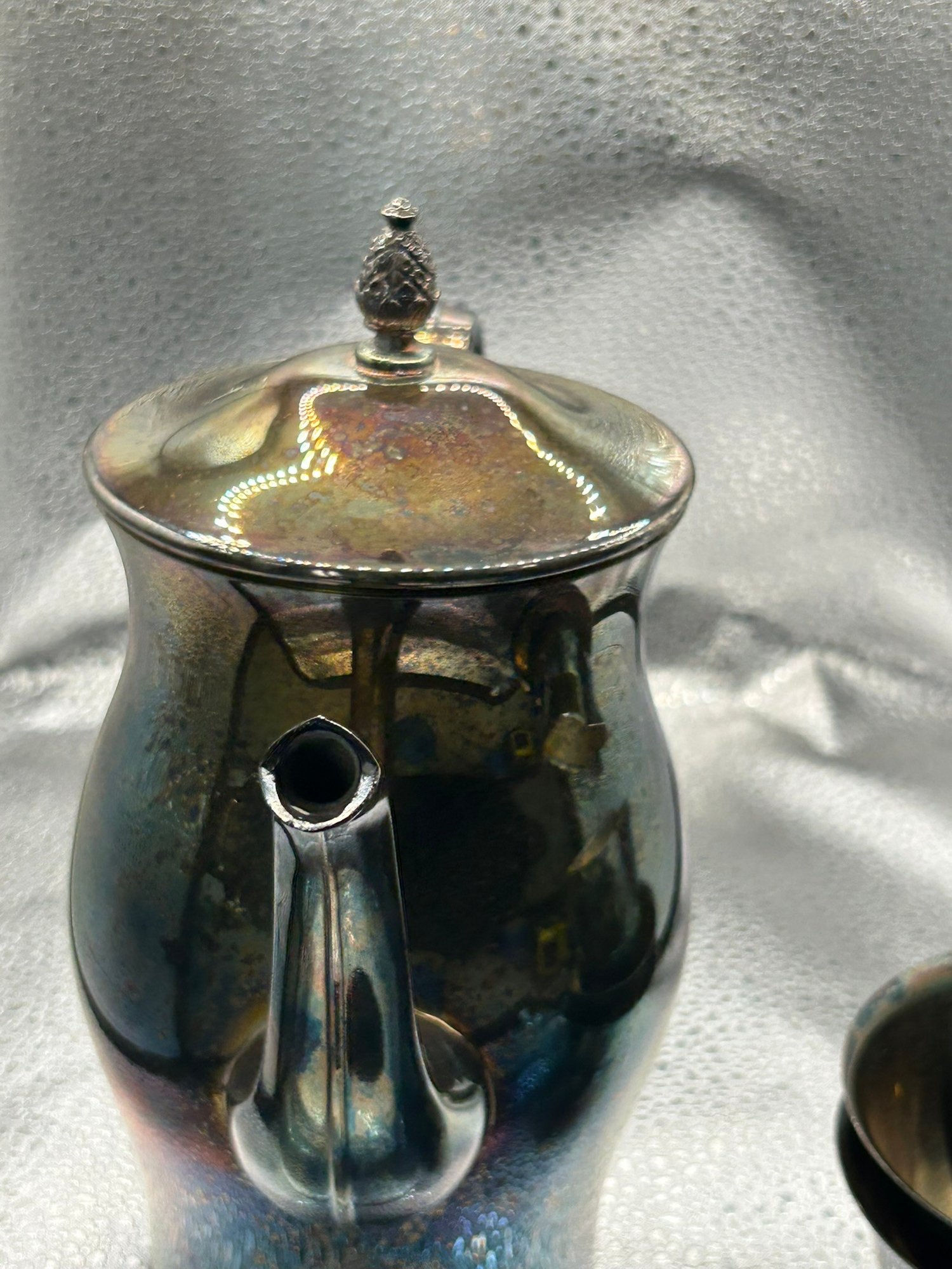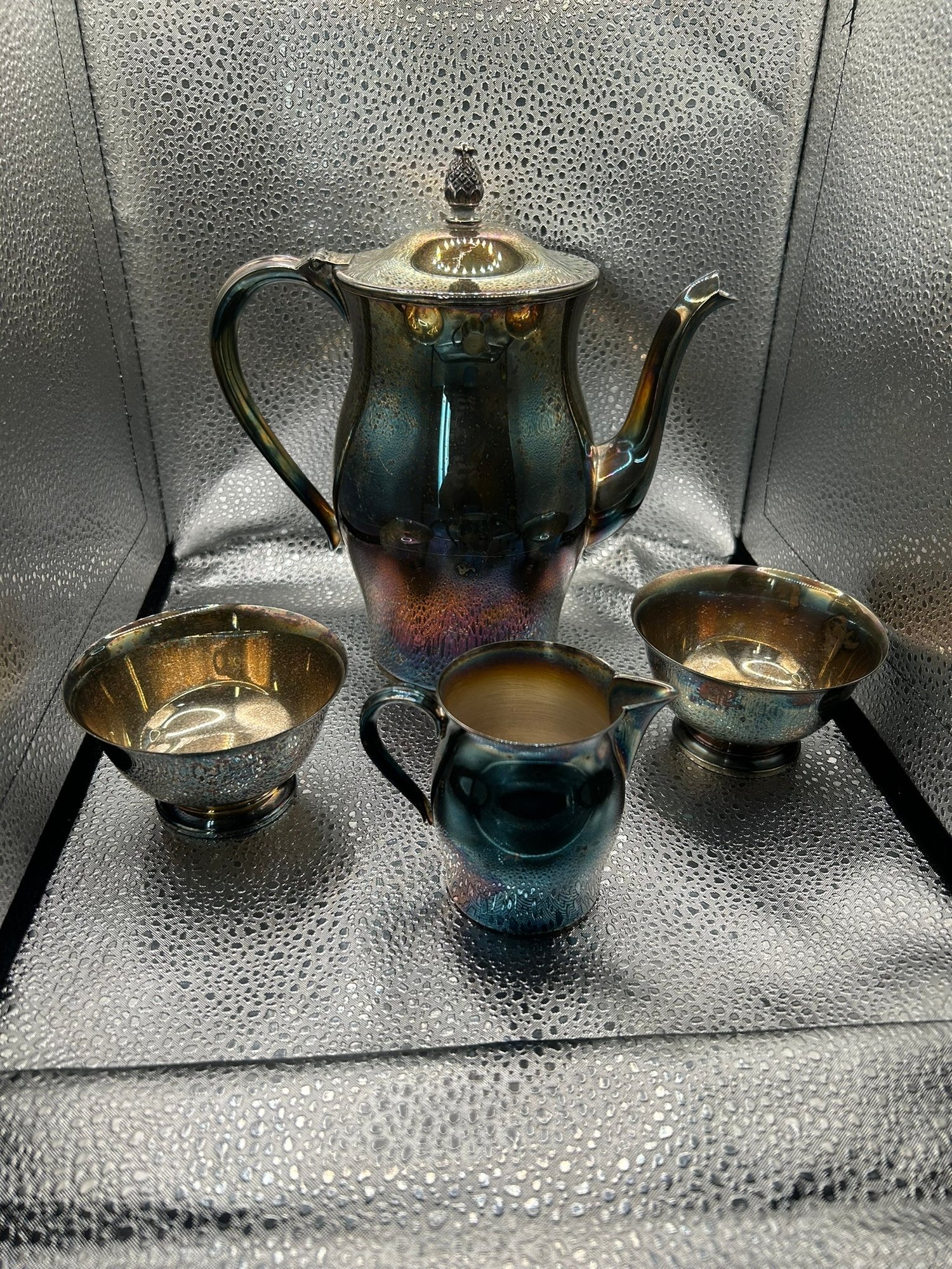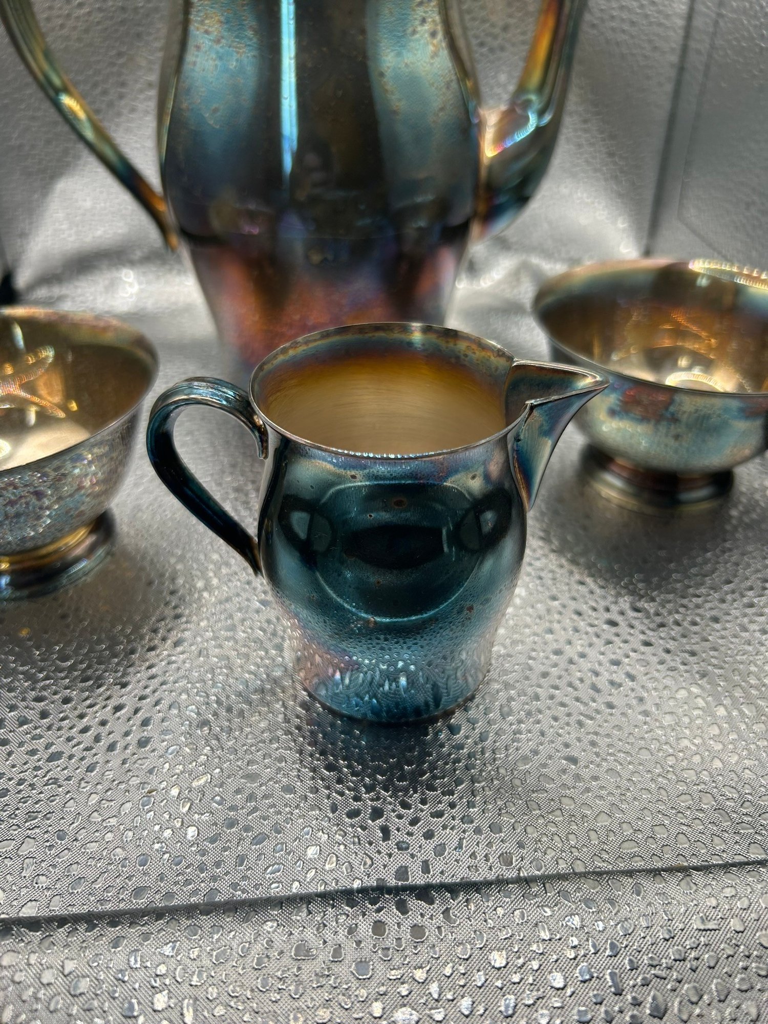 4 Paul Revere reproduction silver plate items. Coffee pot, 2 bowls and creamer. . Condition is good, but multi item lot so condition varies by item. Please see pics to evaluate each item. All items sold as is.