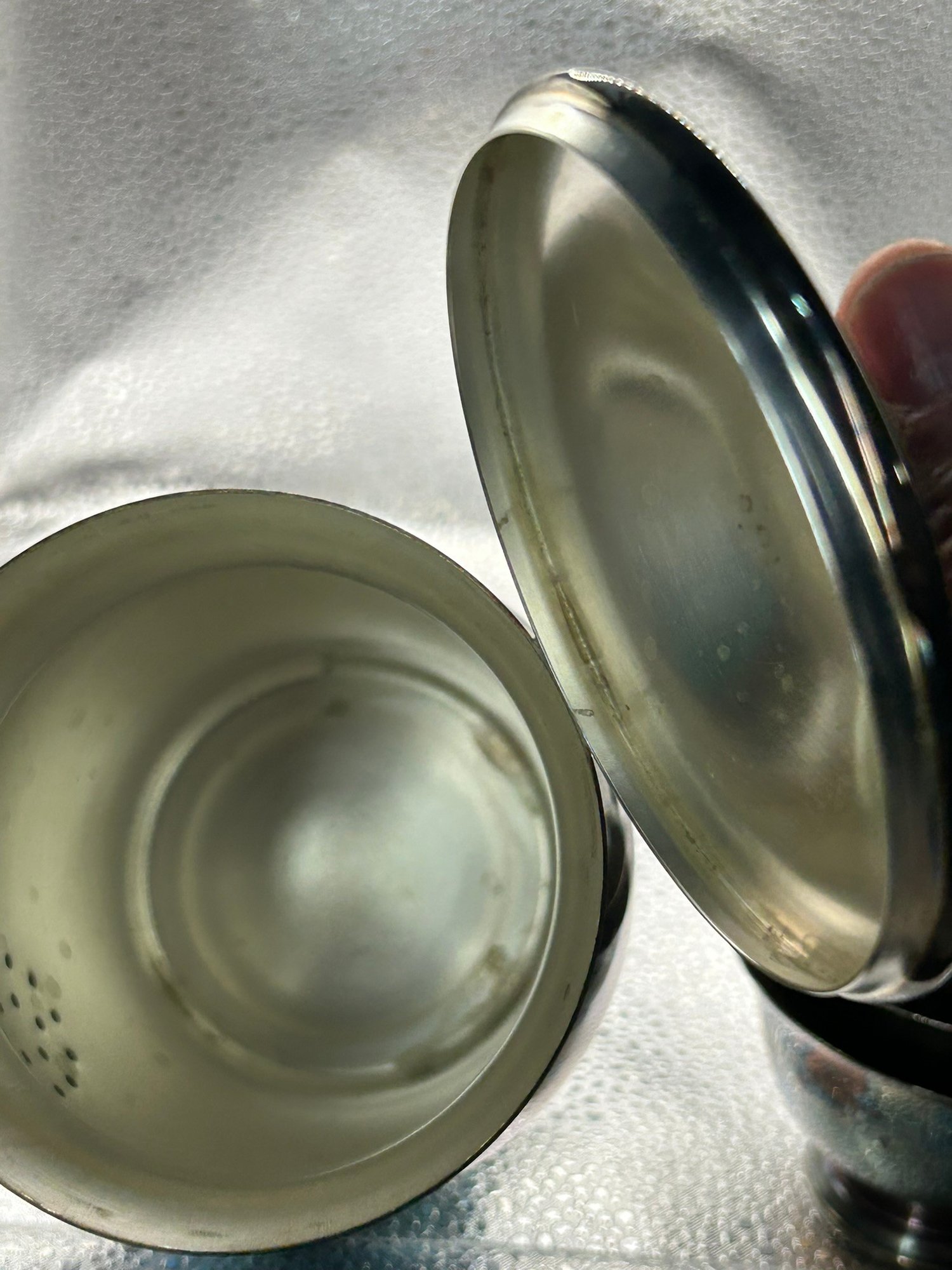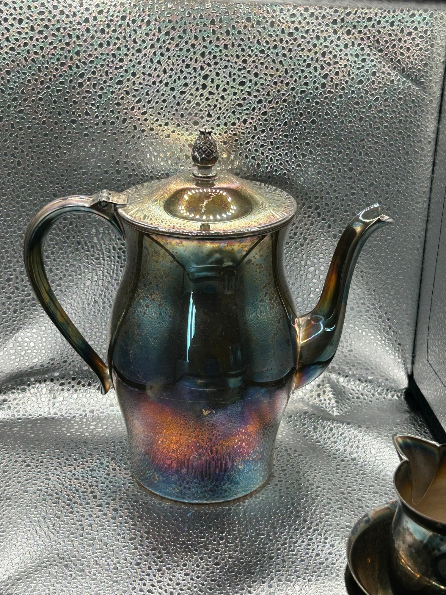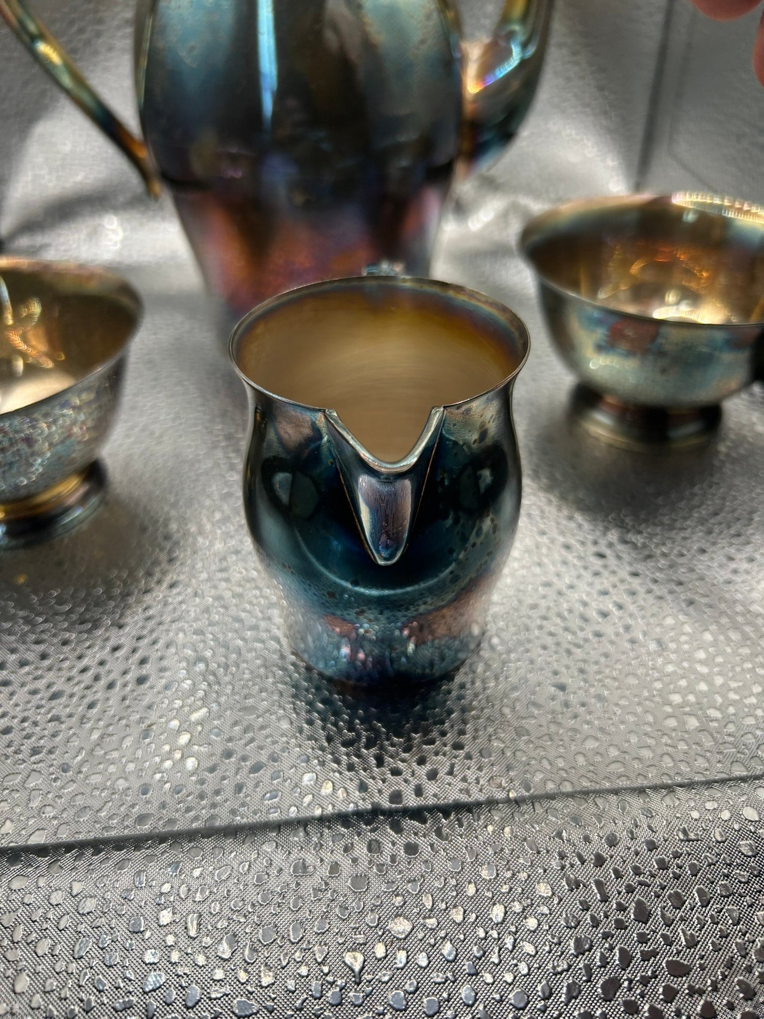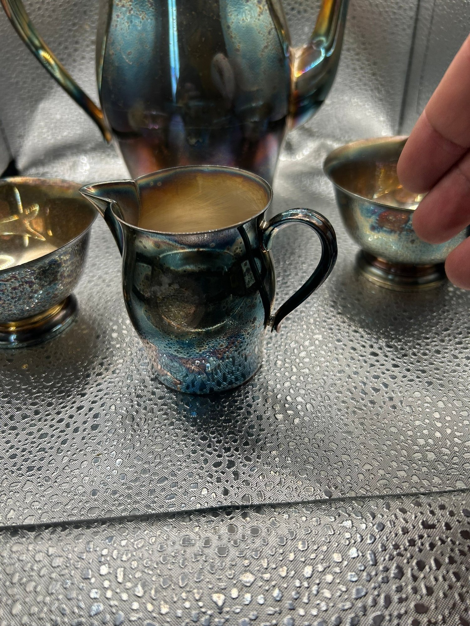 4 Paul Revere reproduction silver plate items. Coffee pot, 2 bowls and creamer. . Condition is good, but multi item lot so condition varies by item. Please see pics to evaluate each item. All items sold as is.