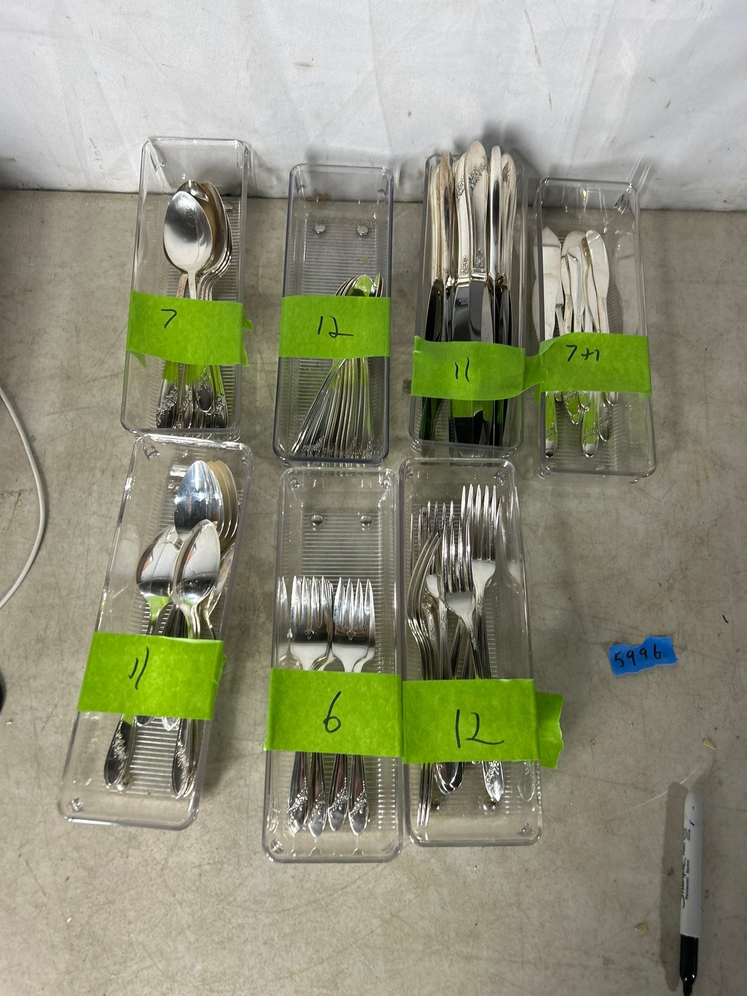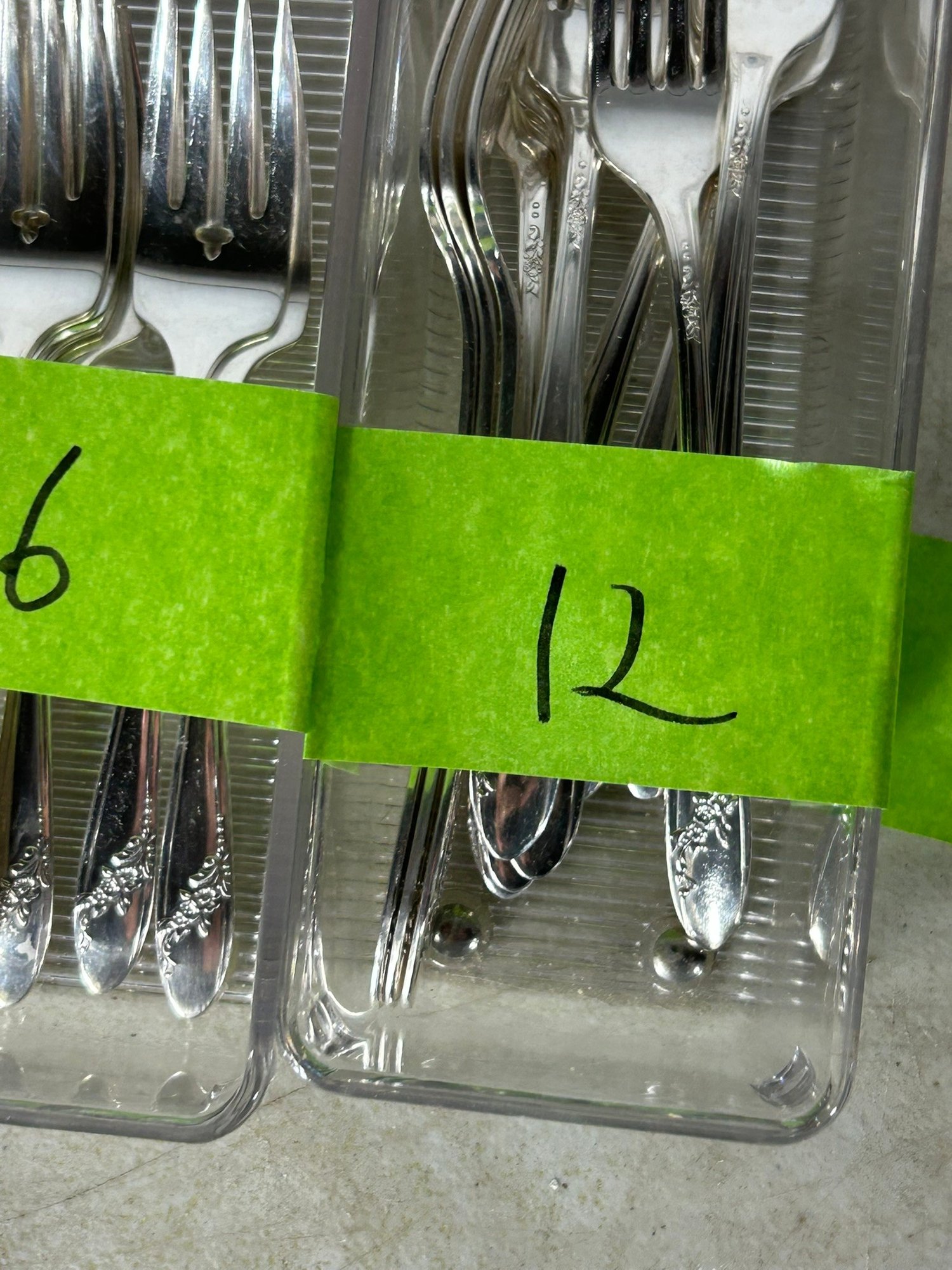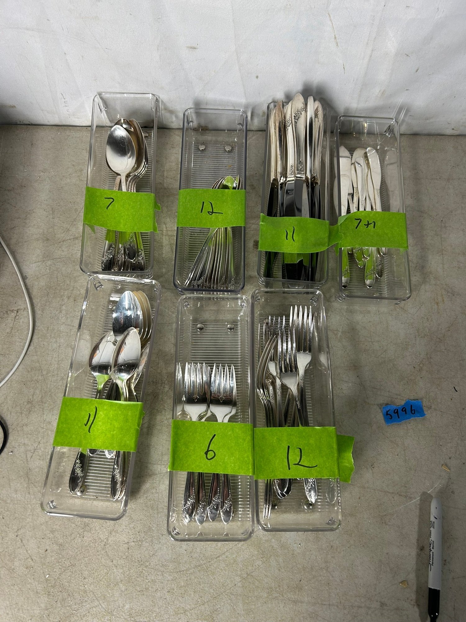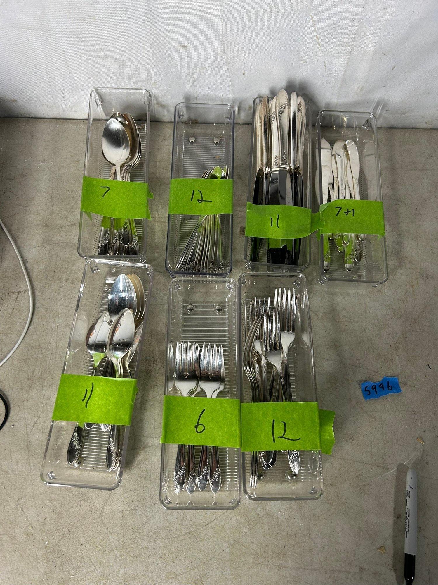 11 knifes, 7+1 butter knifes, 7 spons, 11 spoons, 12 forks, 6 forks, 12 spoons .Condition is good, but multi item lot so condition varies by item. Please see pics to evaluate each item. All items sold as is.