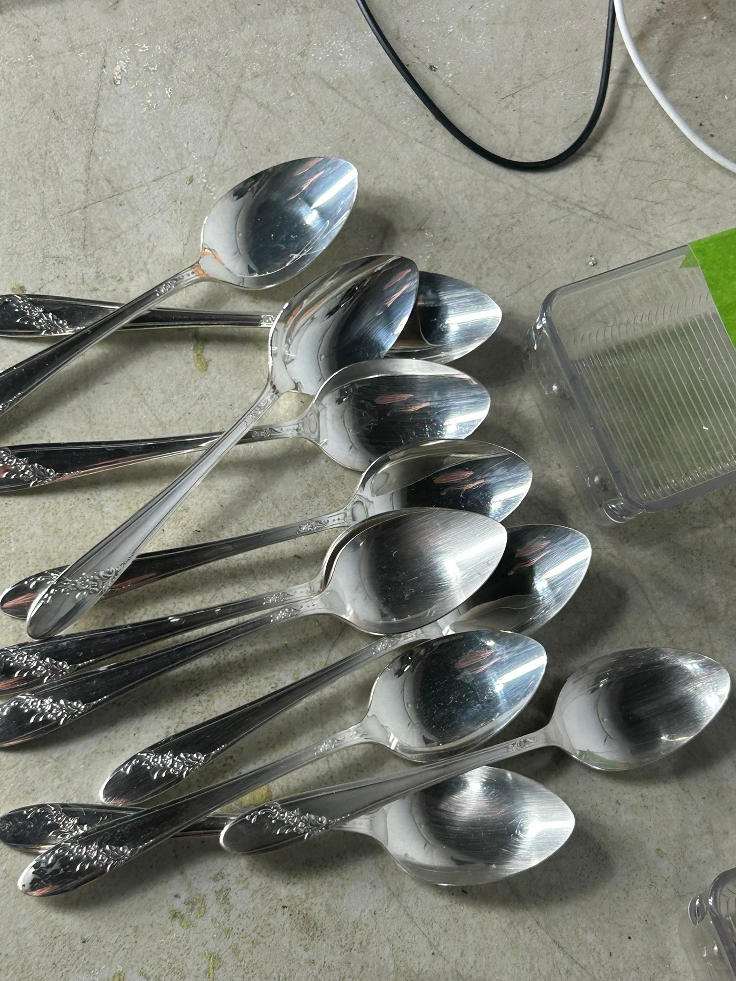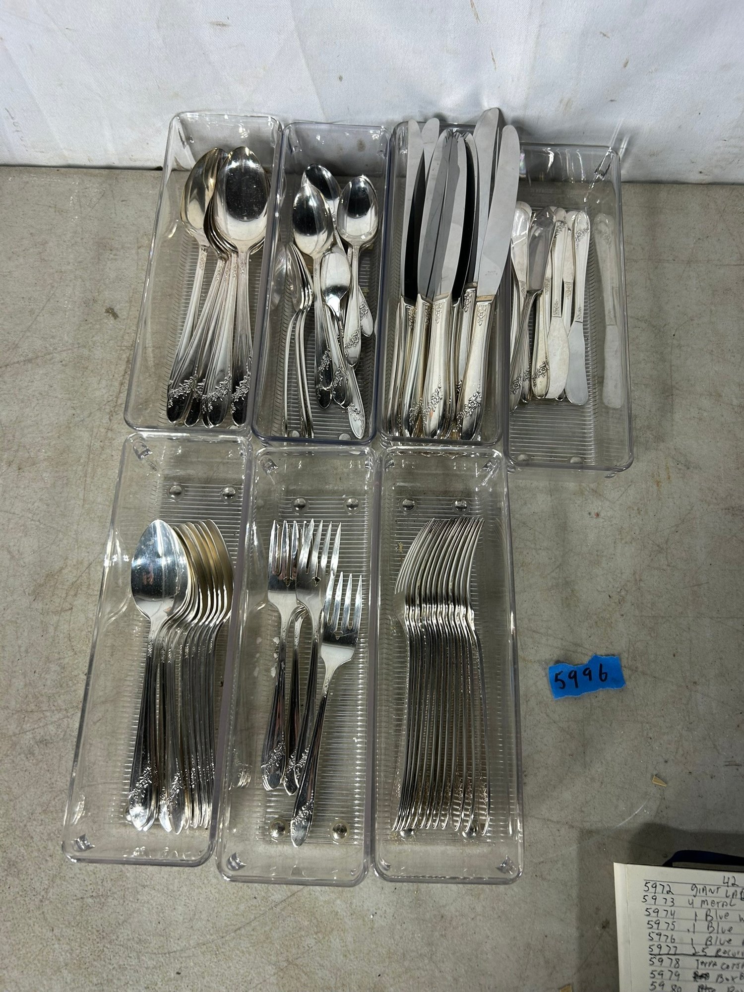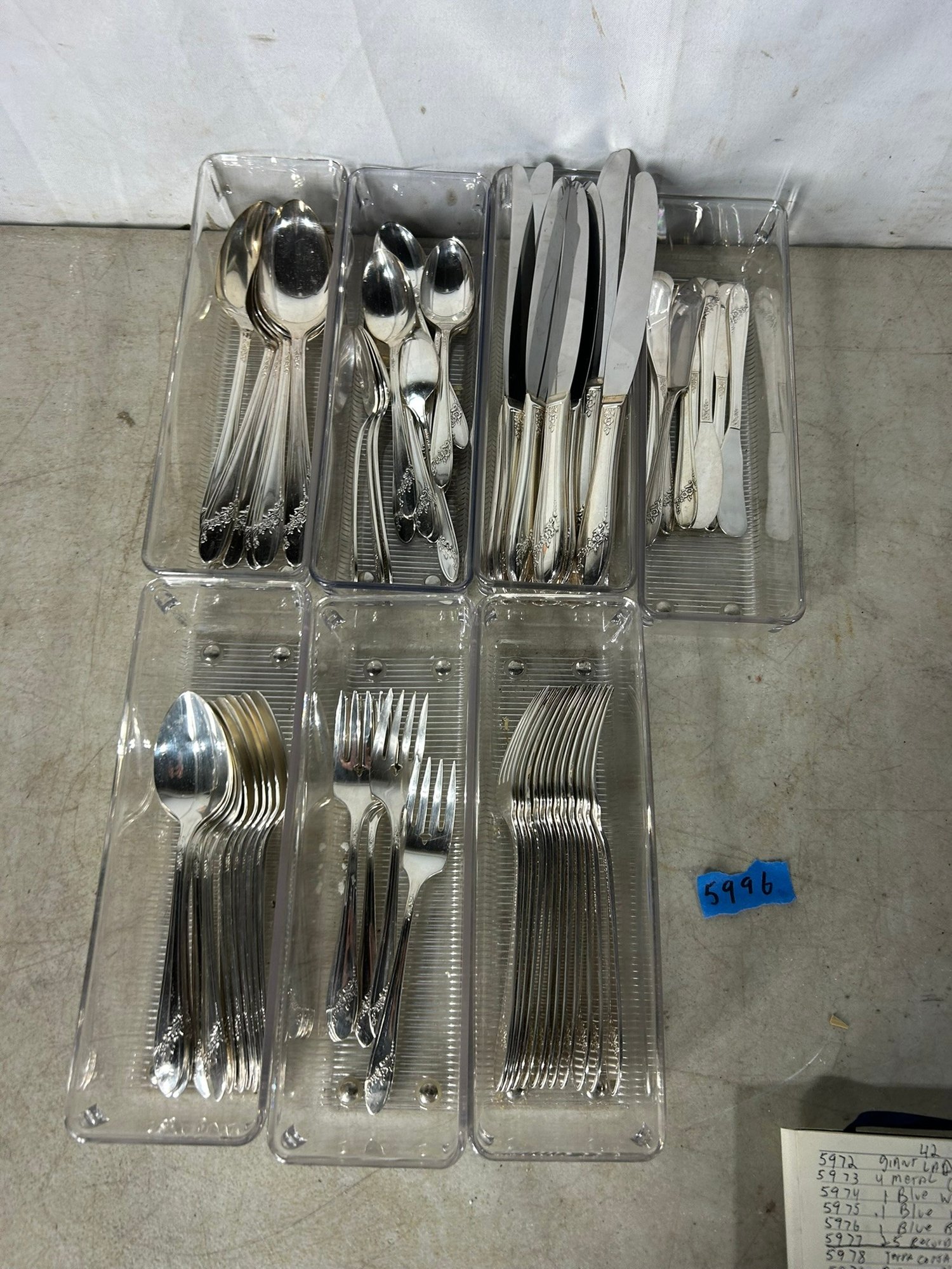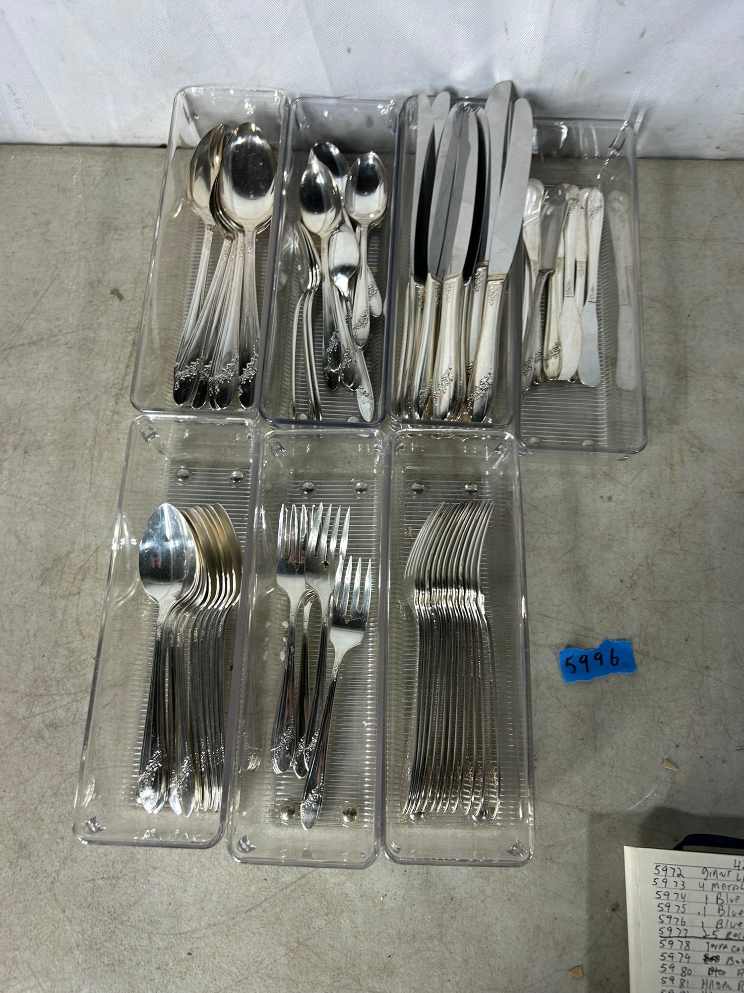 11 knifes, 7+1 butter knifes, 7 spons, 11 spoons, 12 forks, 6 forks, 12 spoons .Condition is good, but multi item lot so condition varies by item. Please see pics to evaluate each item. All items sold as is.