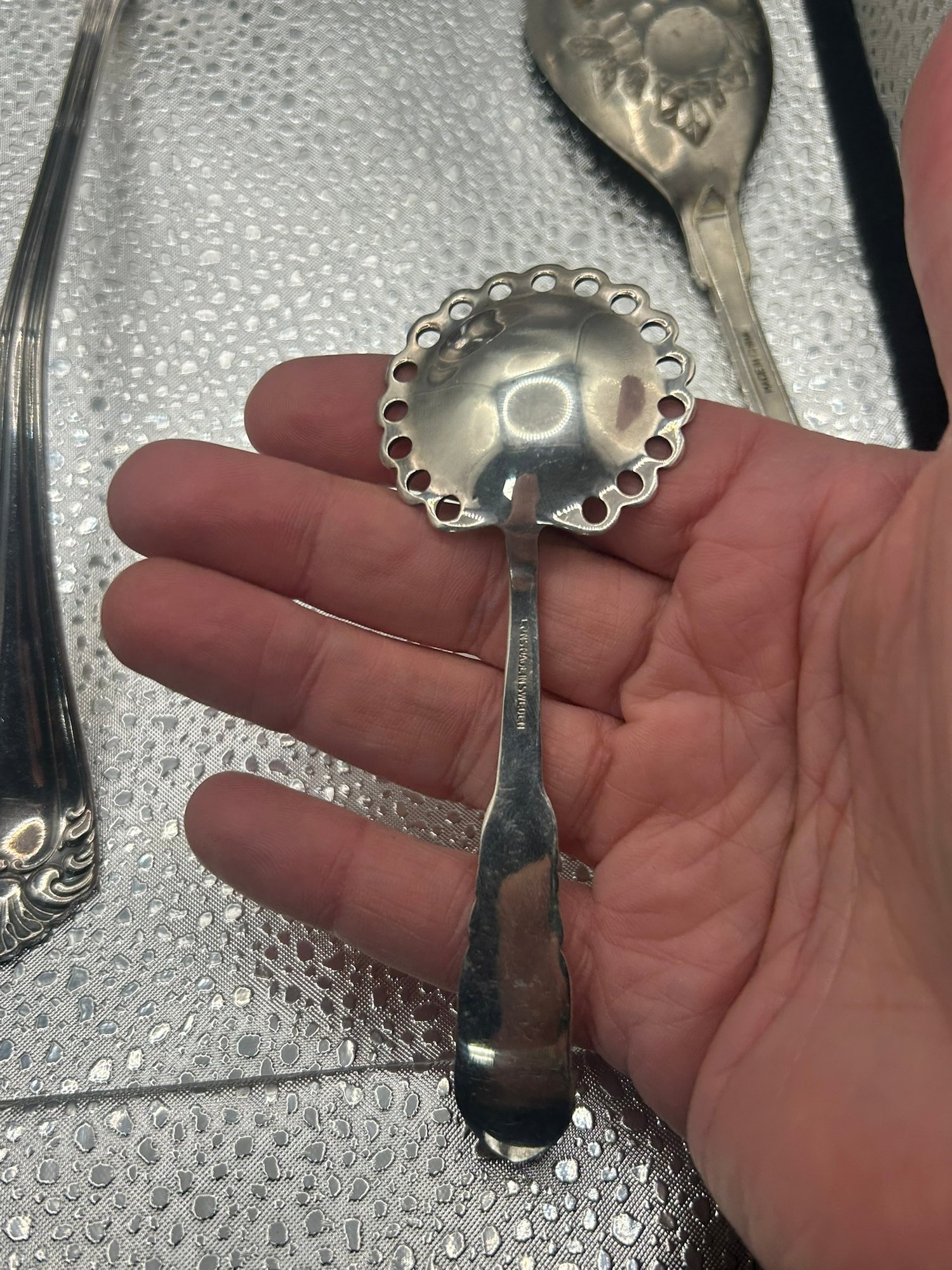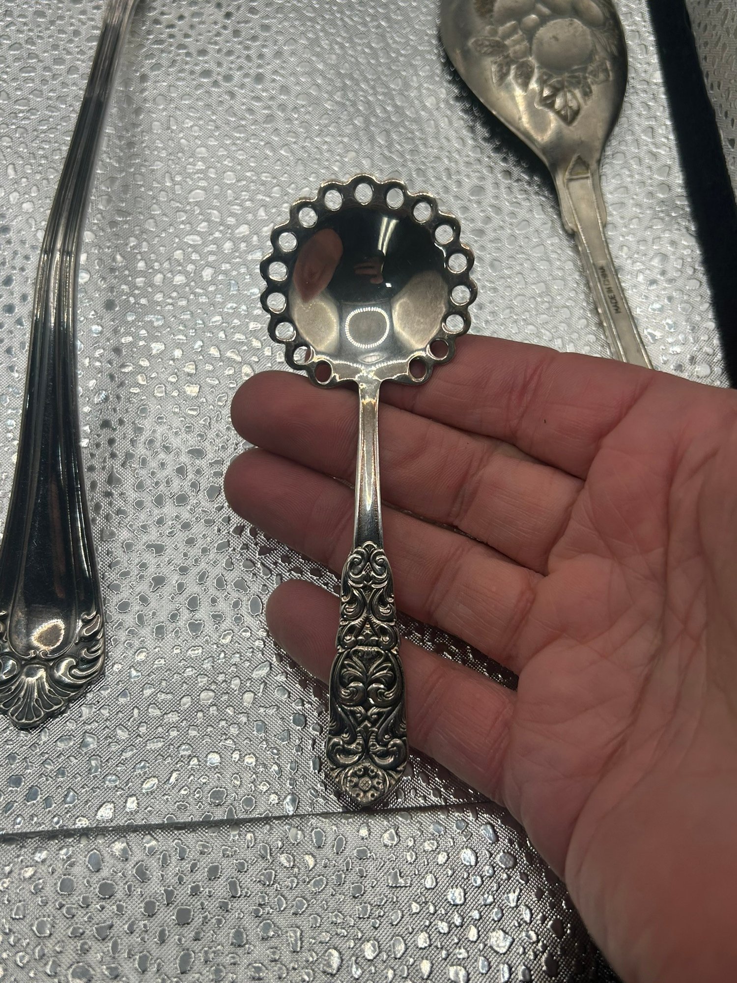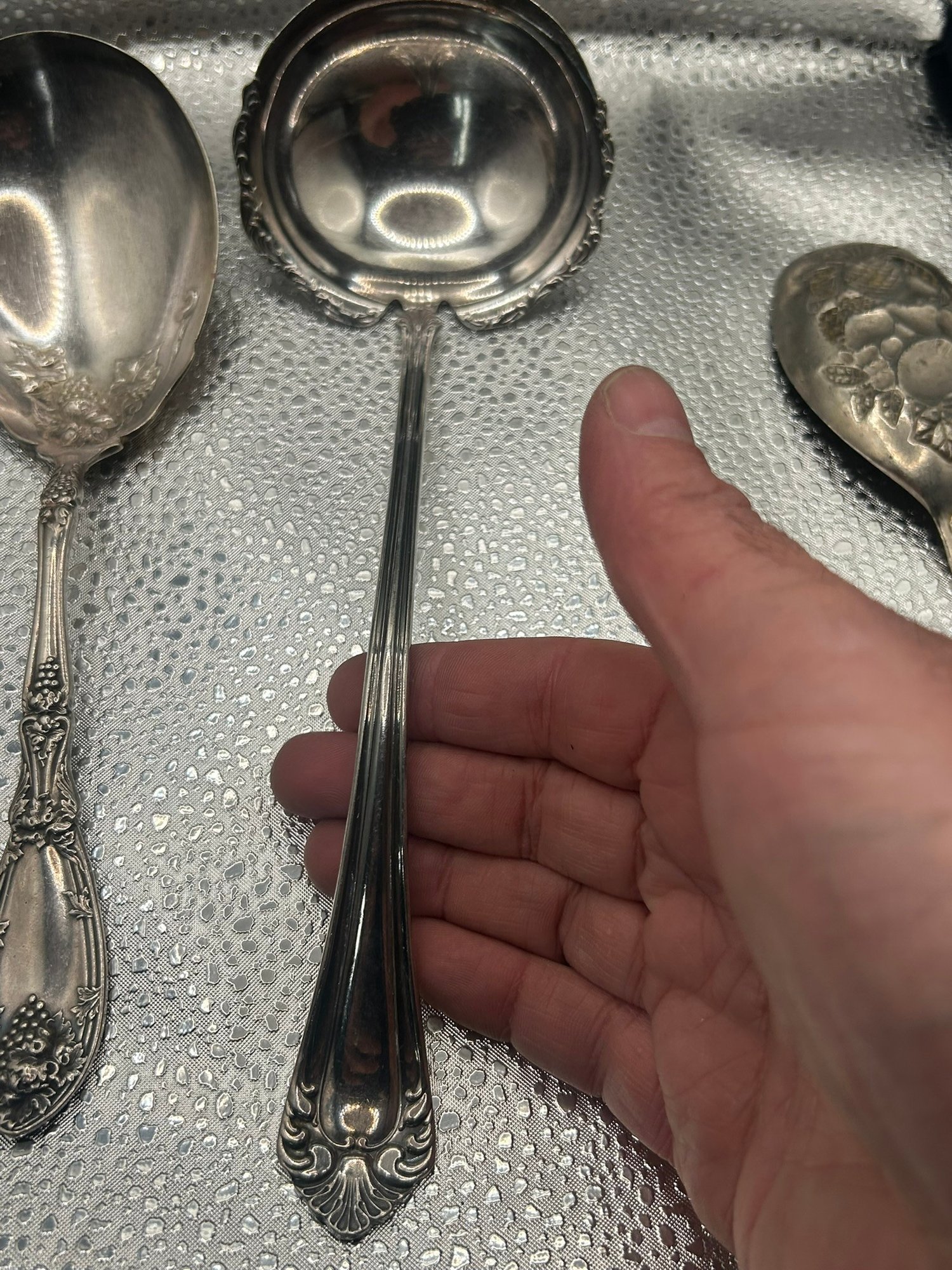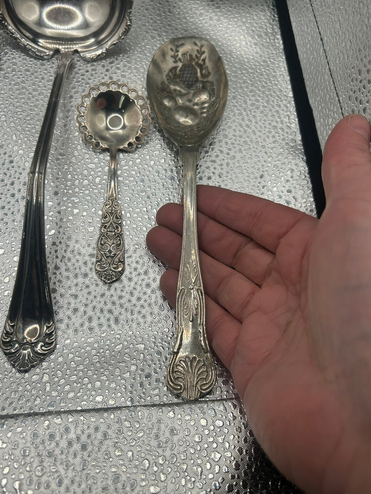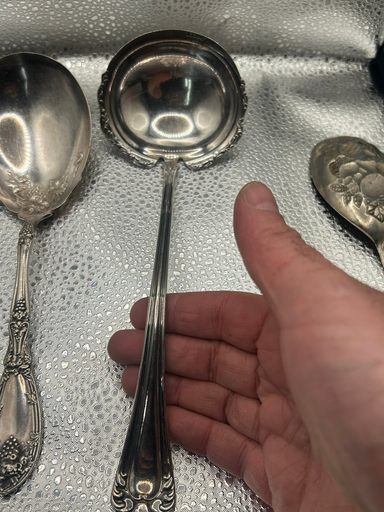 lot of 4 vintage silver-plated serving spoons, patterns lie Reed & Barton's "French Renaissance" or Wallace's "Sir Christopher". . . Condition is good, but multi item lot so condition varies by item. Please see pics to evaluate each item. All items sold as is.