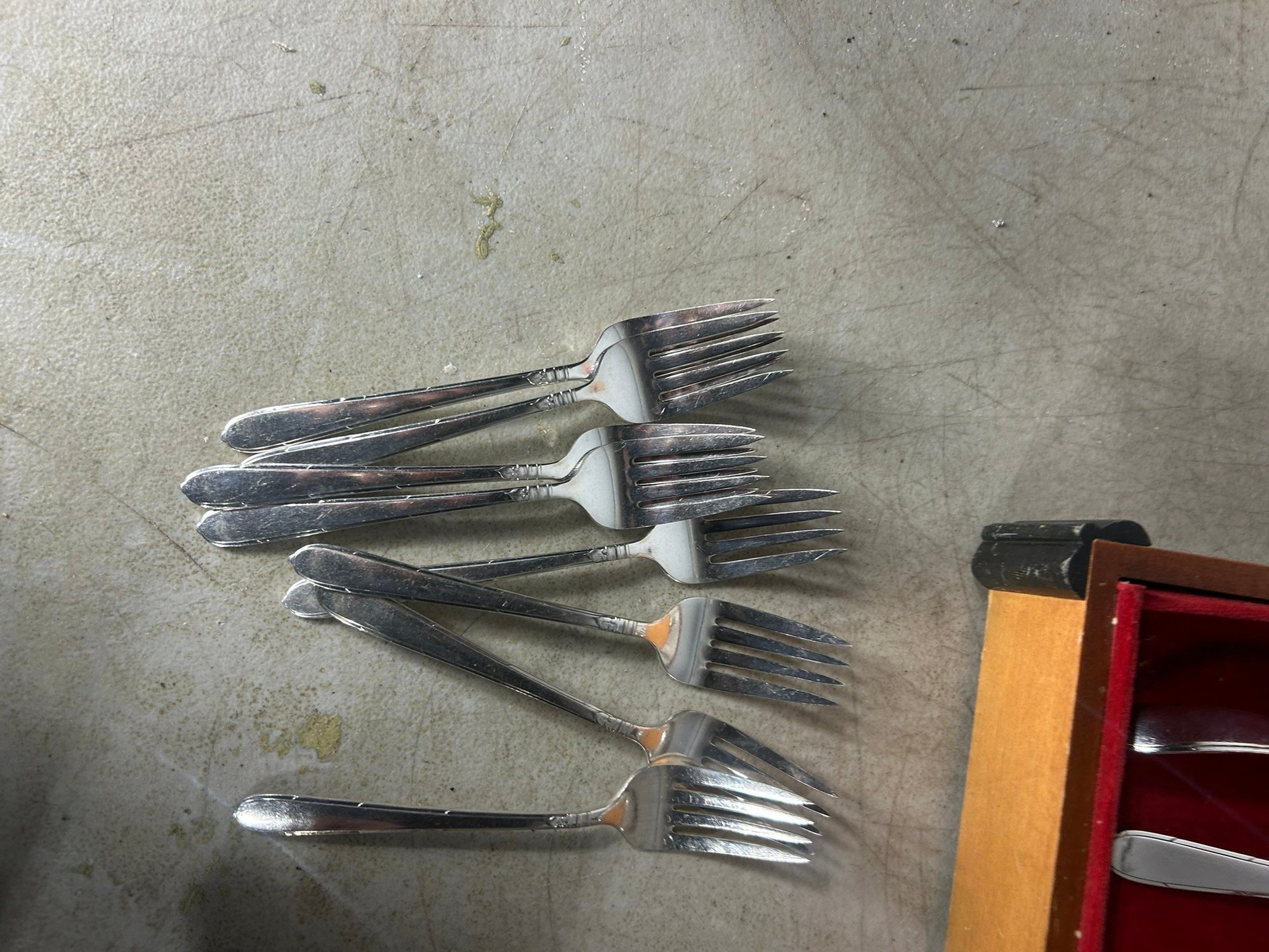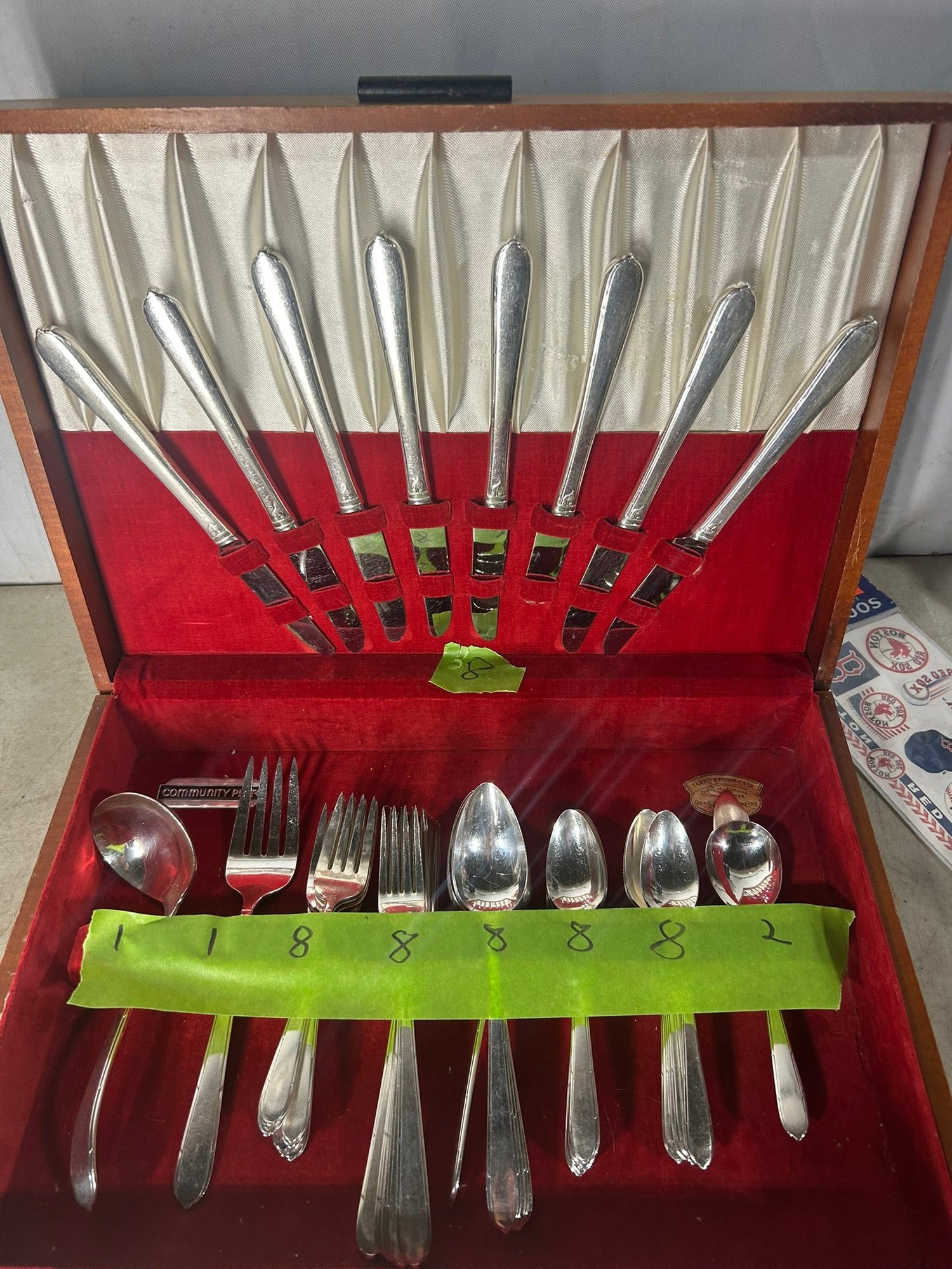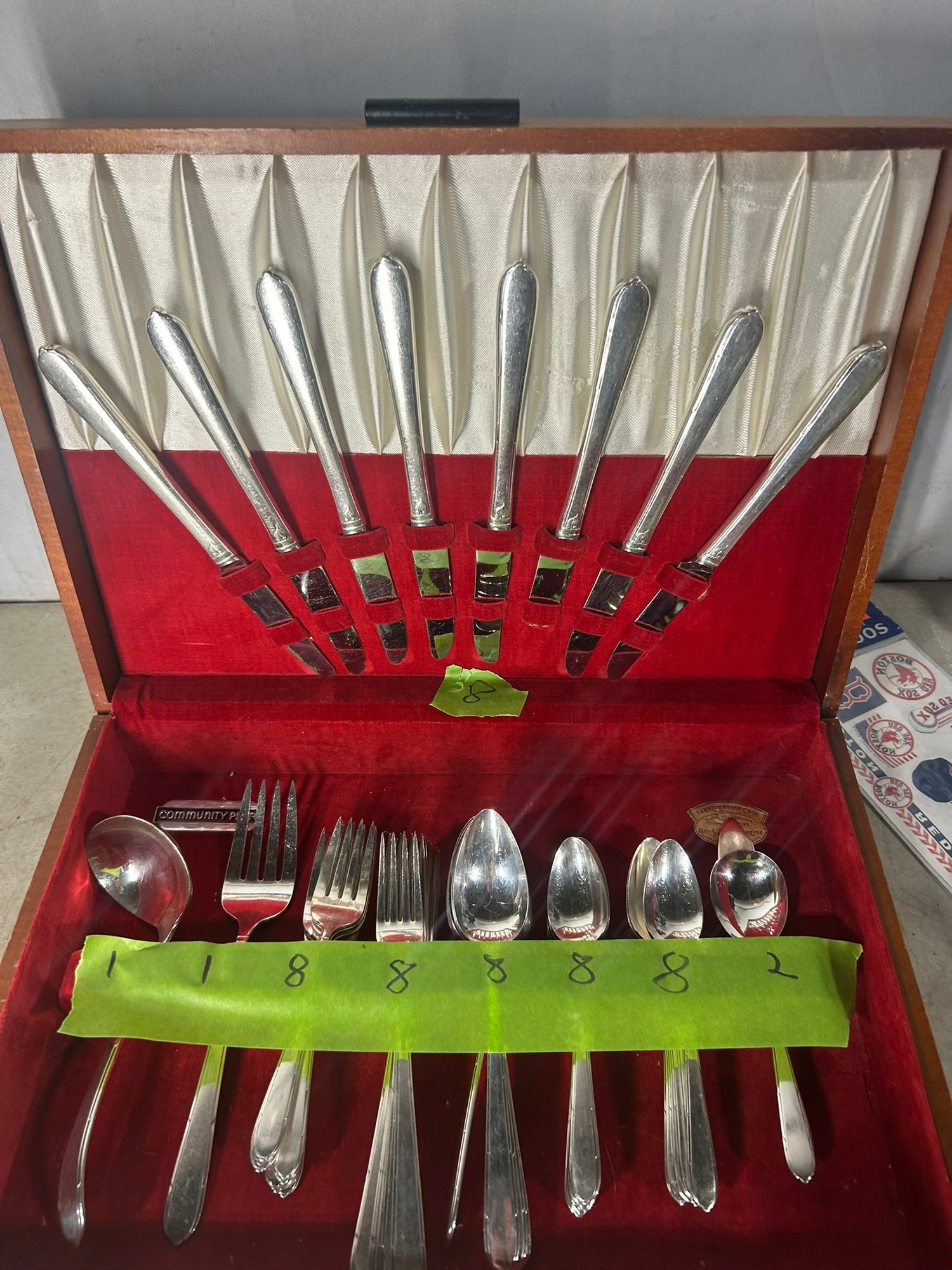 Oneida "Community" silver plated silverware set. Box + 52 pieces. . Condition is good, but multi item lot so condition varies by item. Please see pics to evaluate each item. All items sold as is.