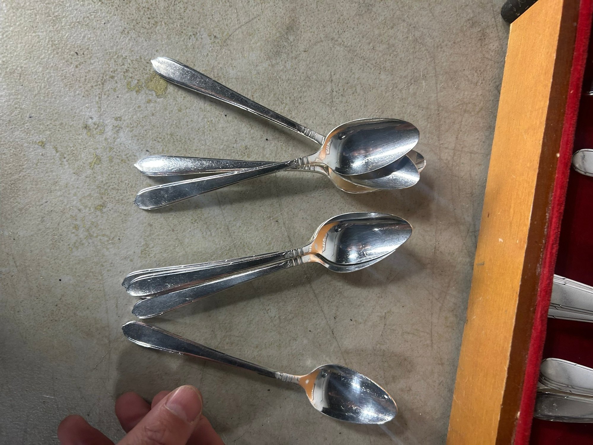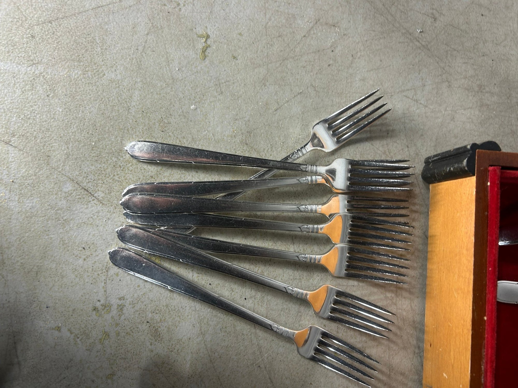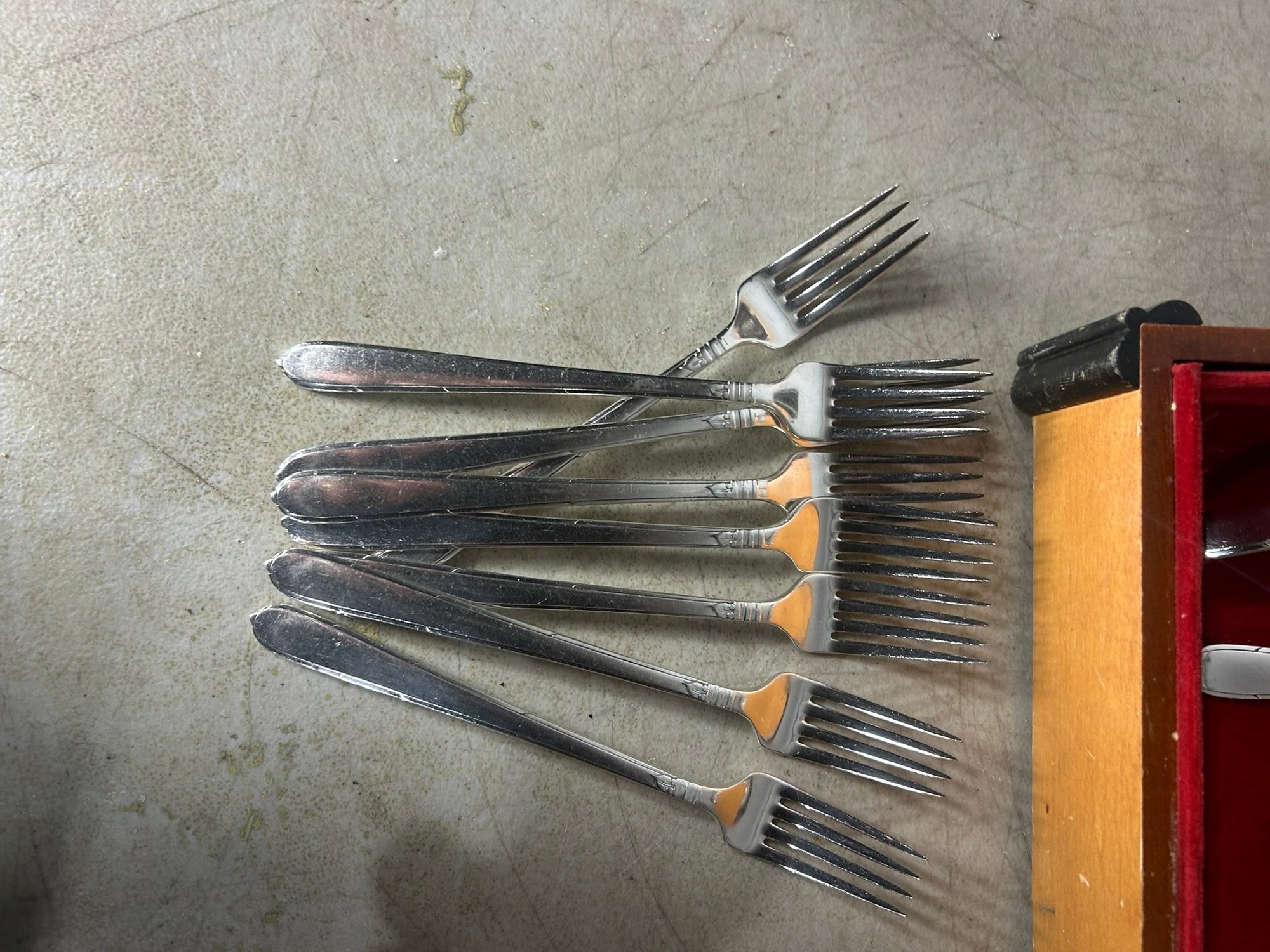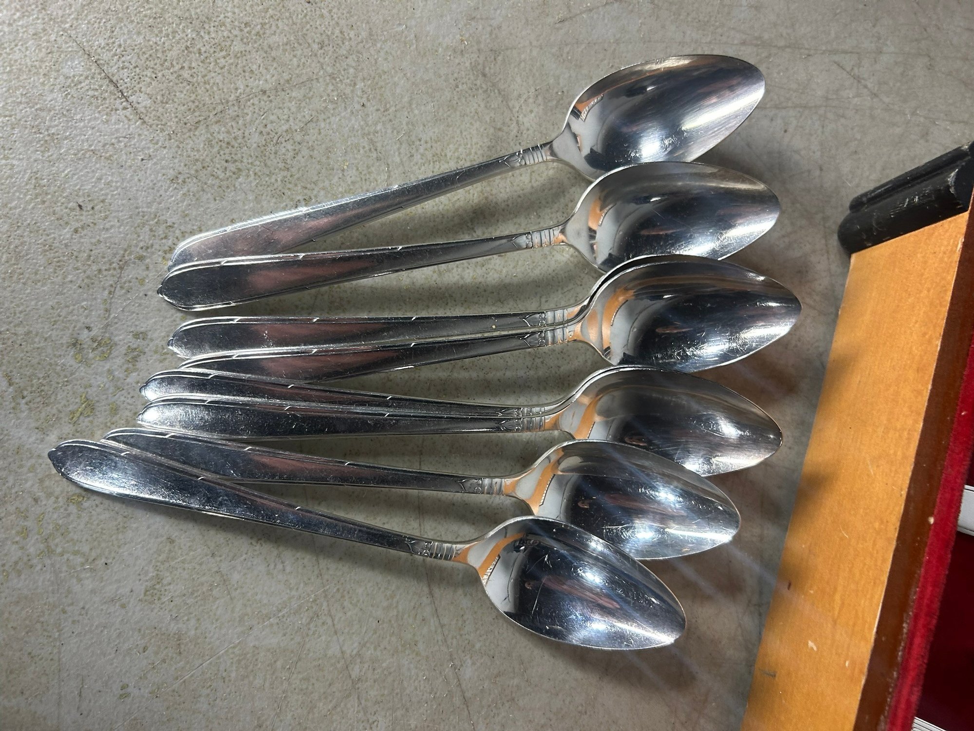 Oneida "Community" silver plated silverware set. Box + 52 pieces. . Condition is good, but multi item lot so condition varies by item. Please see pics to evaluate each item. All items sold as is.