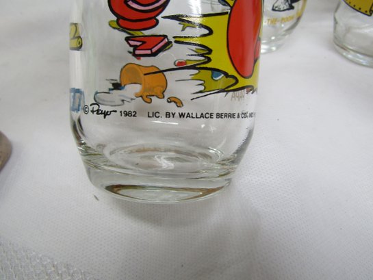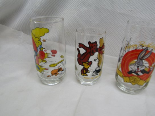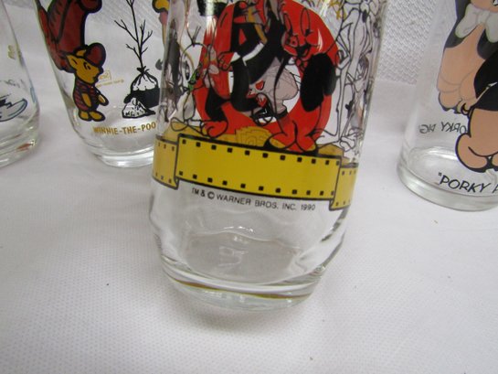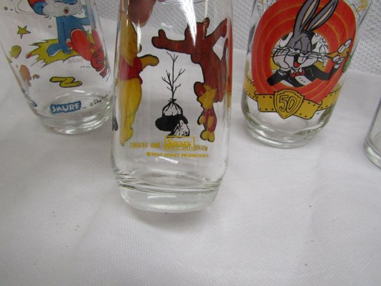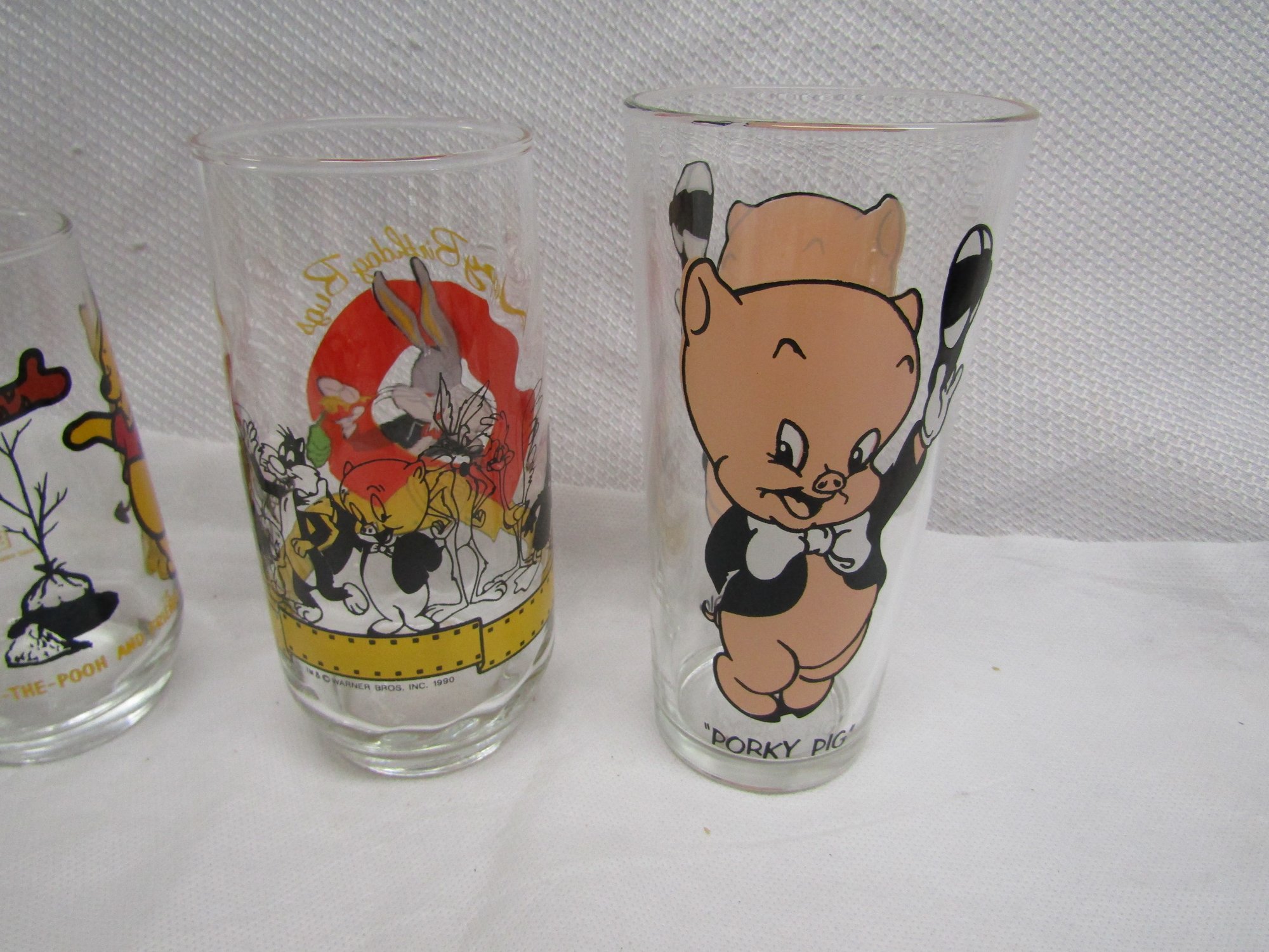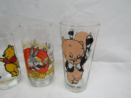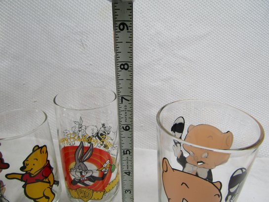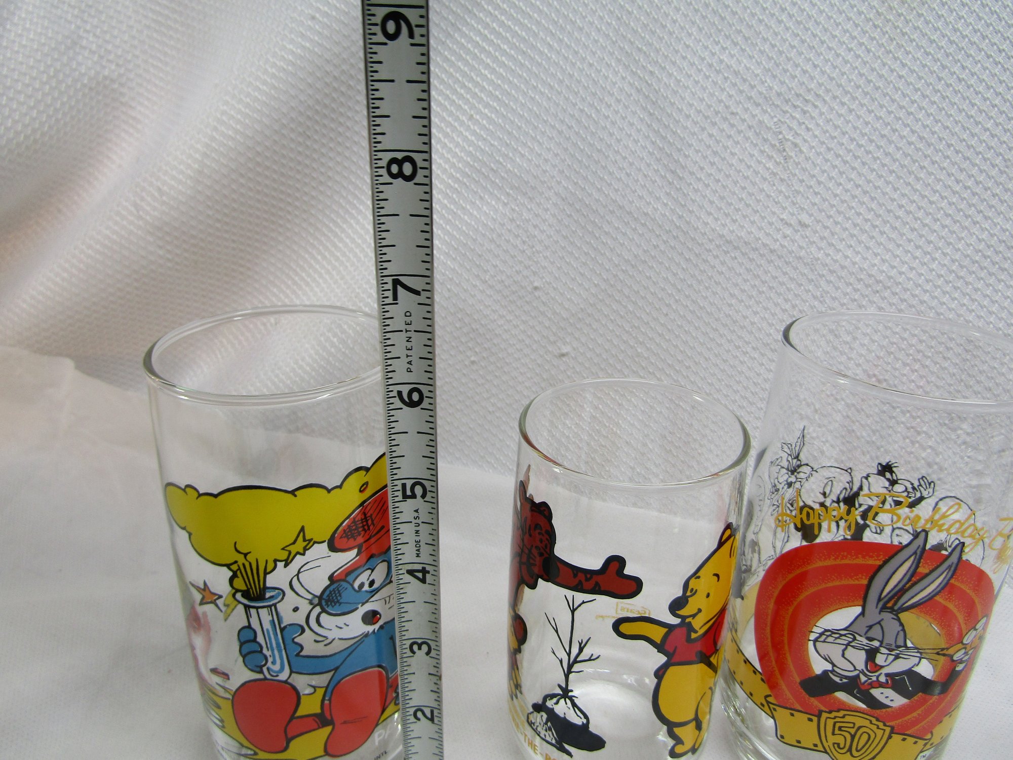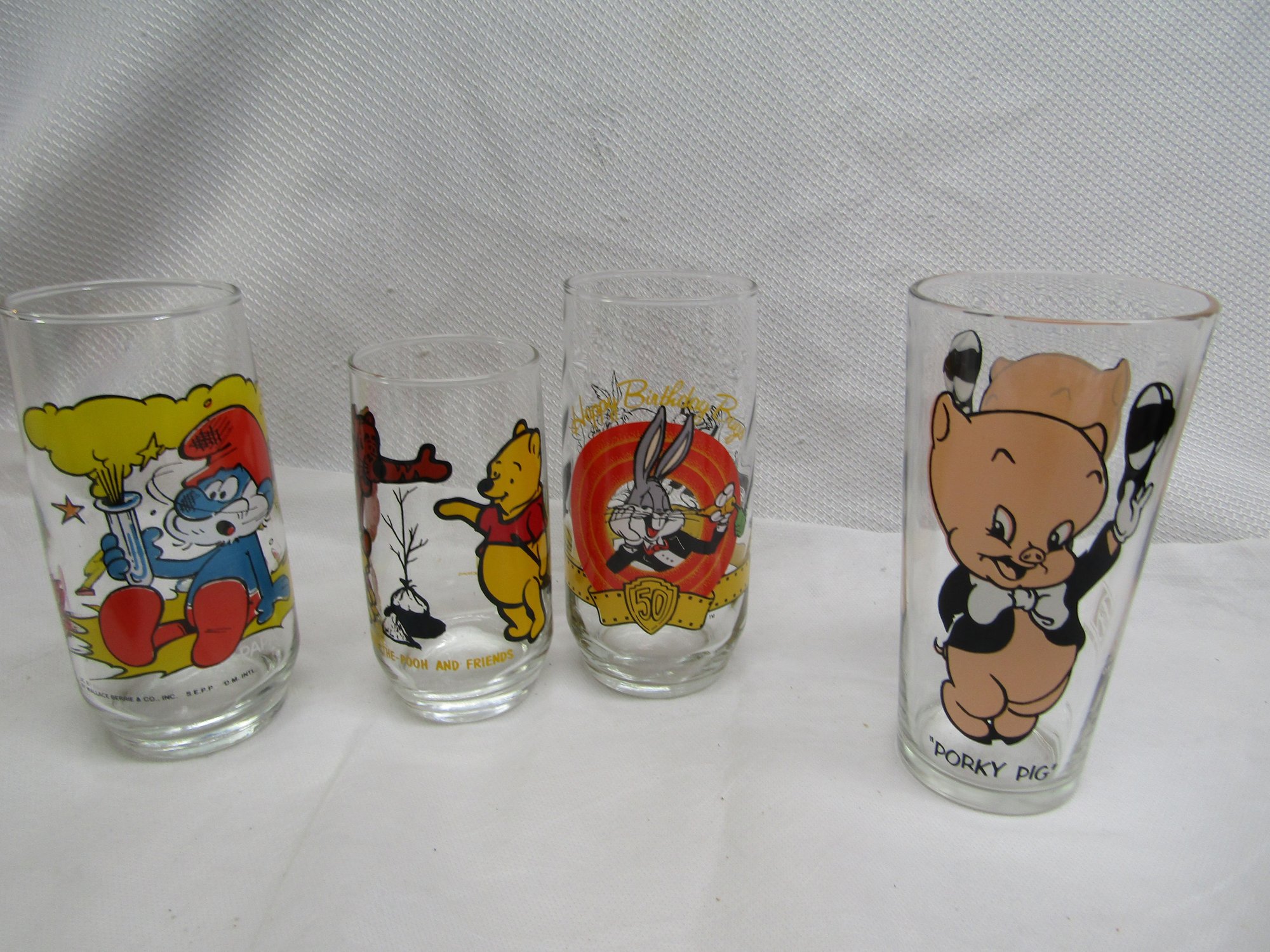 4 Vintage Character Glasses - Smurfs, Pooh, Looney Tunes