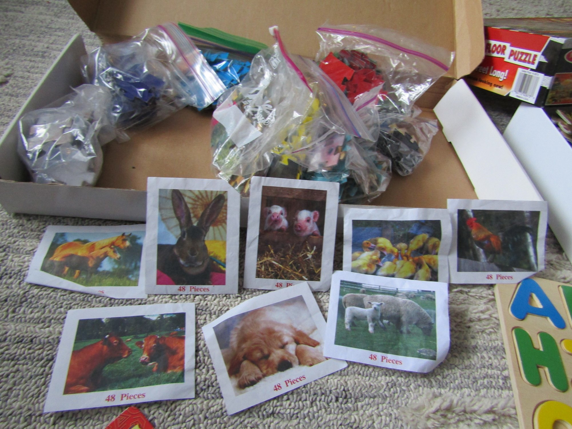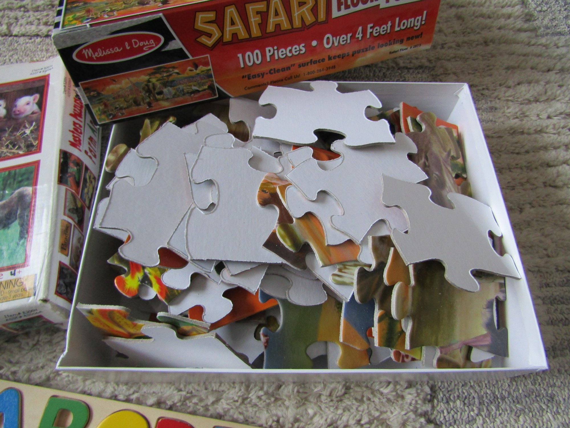 the abc puzzle may not be complete. It is pictured as complete but since the time of photographing the puzzle fell and the pieces fell out of the puzzle