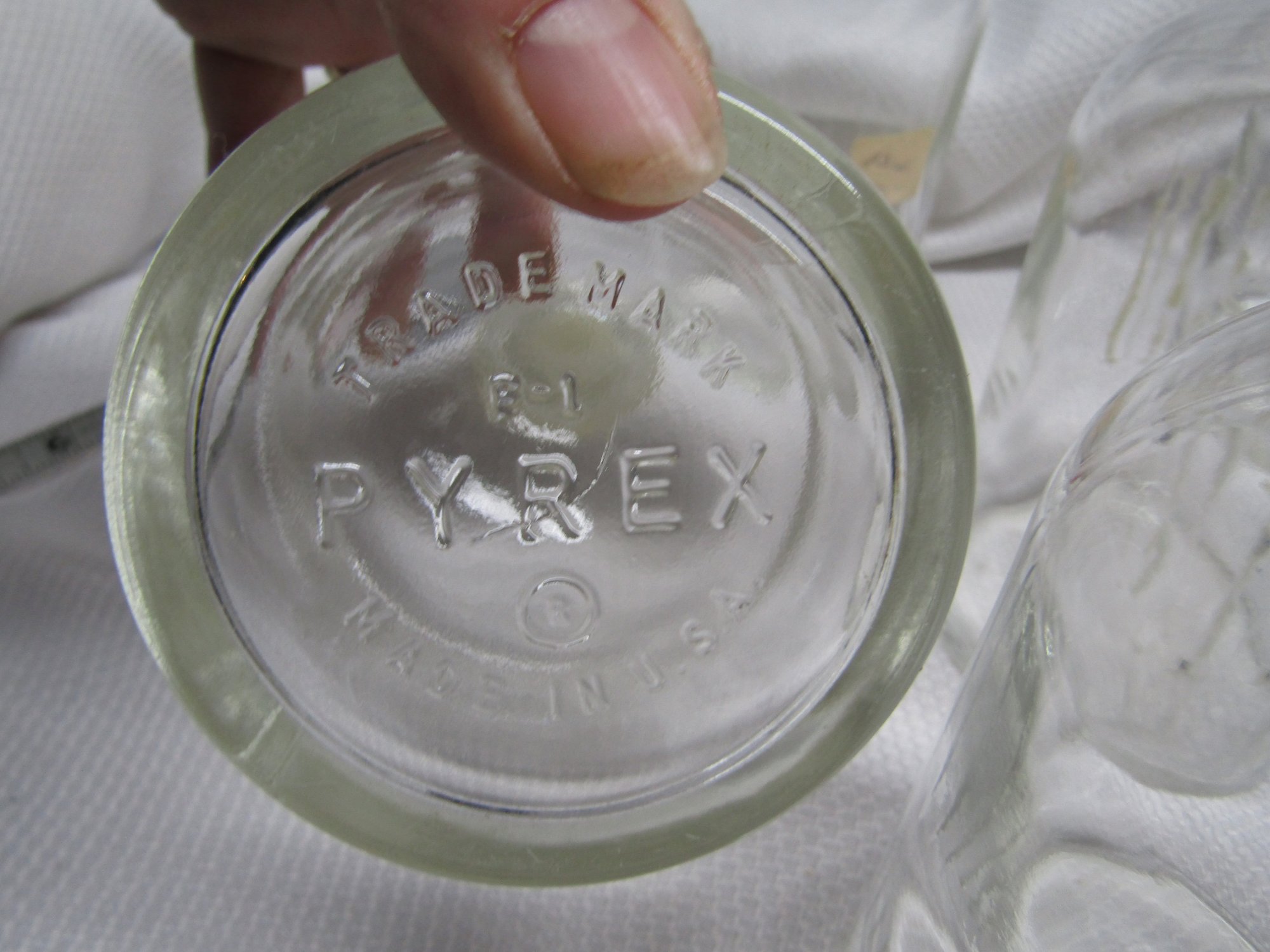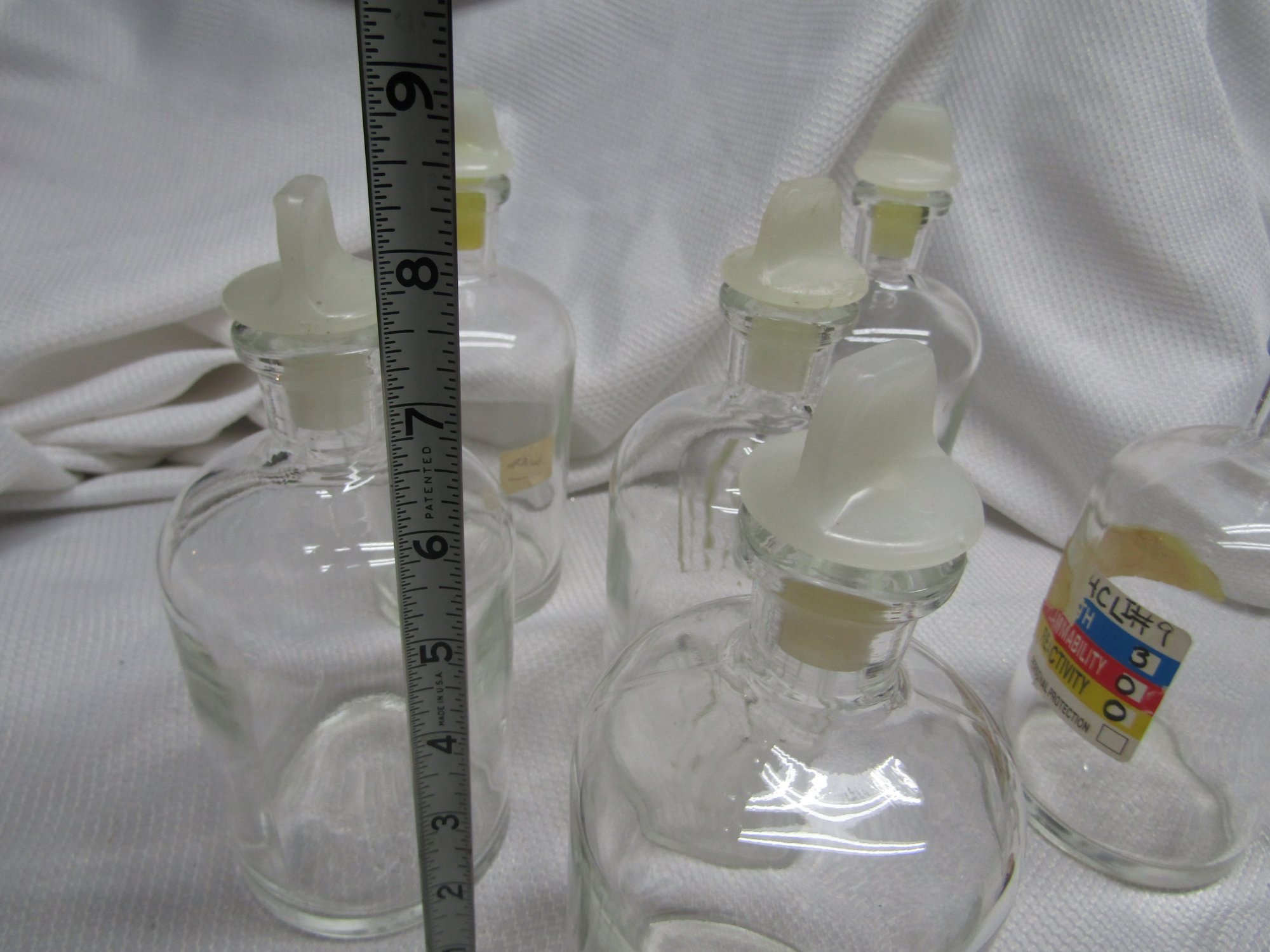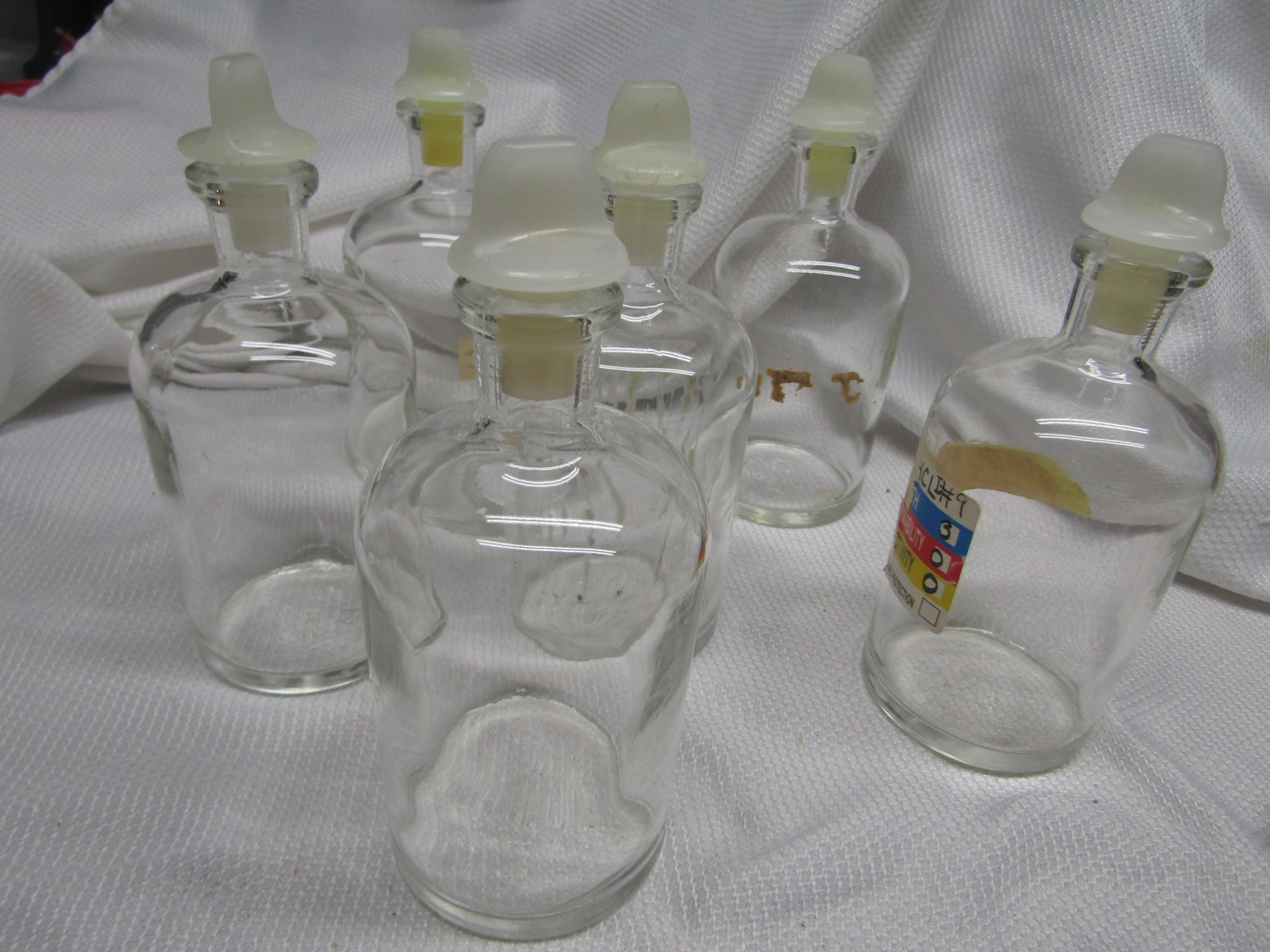 LOT OF LARGE PYREX APOTHECARY PHARMACY BOTTLES WITH LIDS
