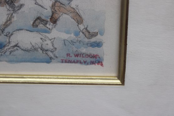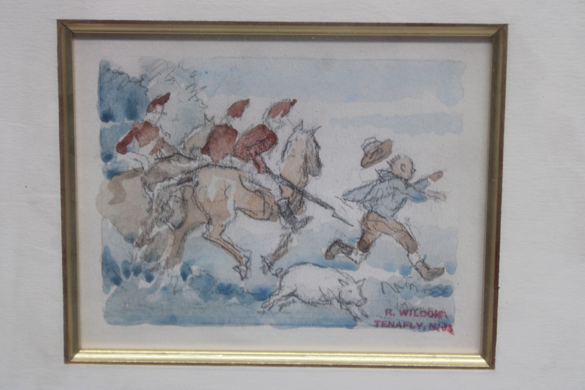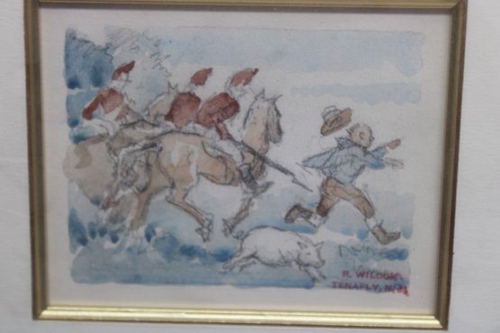 R. WILCOX TENAFLY NJ A BRITISH HORSE GRENADIERS ON FORGING RAID - WATERCOLOR?