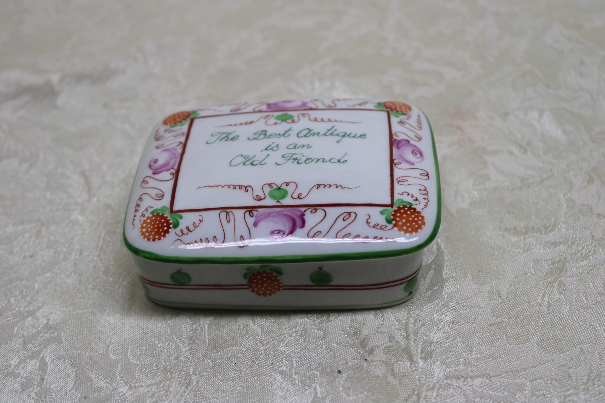 " THE BEST ANTIQUE IS AN OLD FRIEND" TRINKET BOX